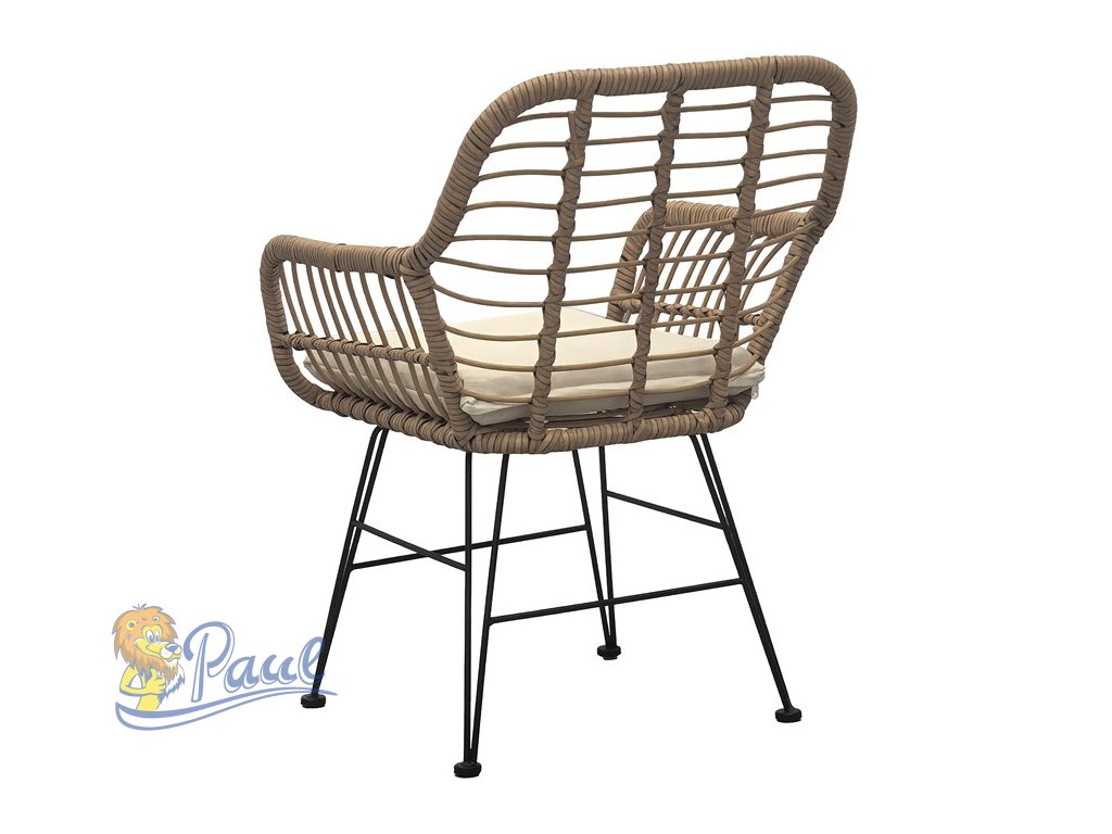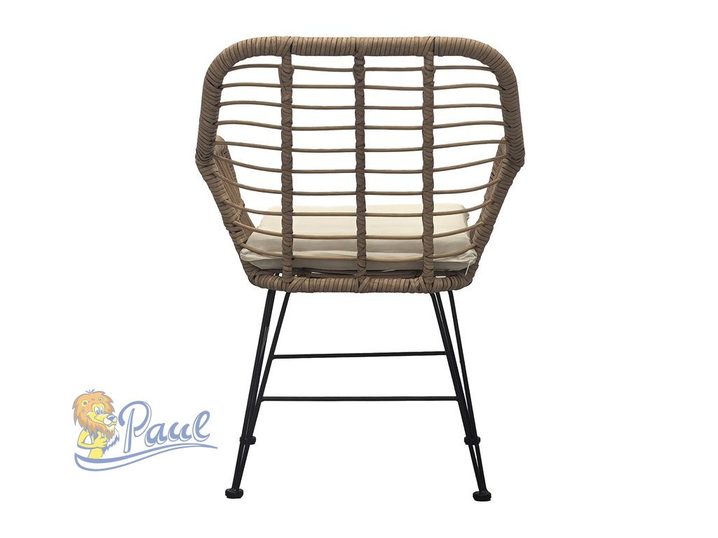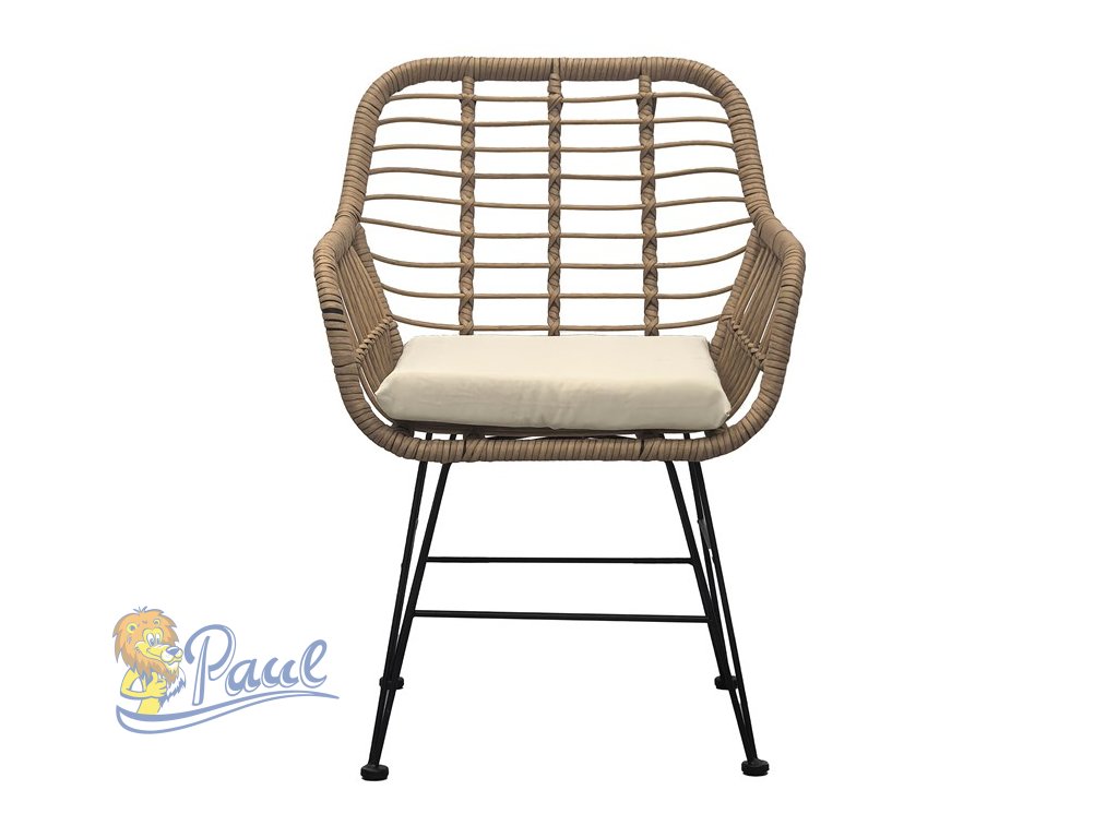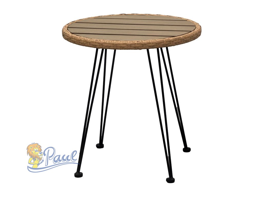Relaxační set stůl + 2 židle, kov, umělý ratan, látka béžová, deska stolku polywood