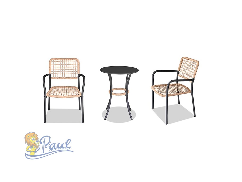 Zahradní set 1+2 značky Autronic je skvělou volbou pro pohodlné posezení na vaší terase nebo balkónu. Skládá se ze dvou židlí a kulatého stolku, což poskytuje ideální prostor pro relaxaci u kávy či čaje. Židle jsou vyrobeny z pevného polyratanu v přírodním odstínu a mají stabilní kovovou konstrukci s práškovou povrchovou úpravou v antracitové barvě, která zajišťuje odolnost vůči venkovním vlivům. Deska i nohy stolku jsou vyrobeny z kovu, což zaručuje dlouhou životnost. Moderní design tohoto setu se skvěle hodí do každého venkovního prostoru a je snadno udržovatelný. Perfektní řešení pro malý i větší venkovní prostor.Doplňkové parametry