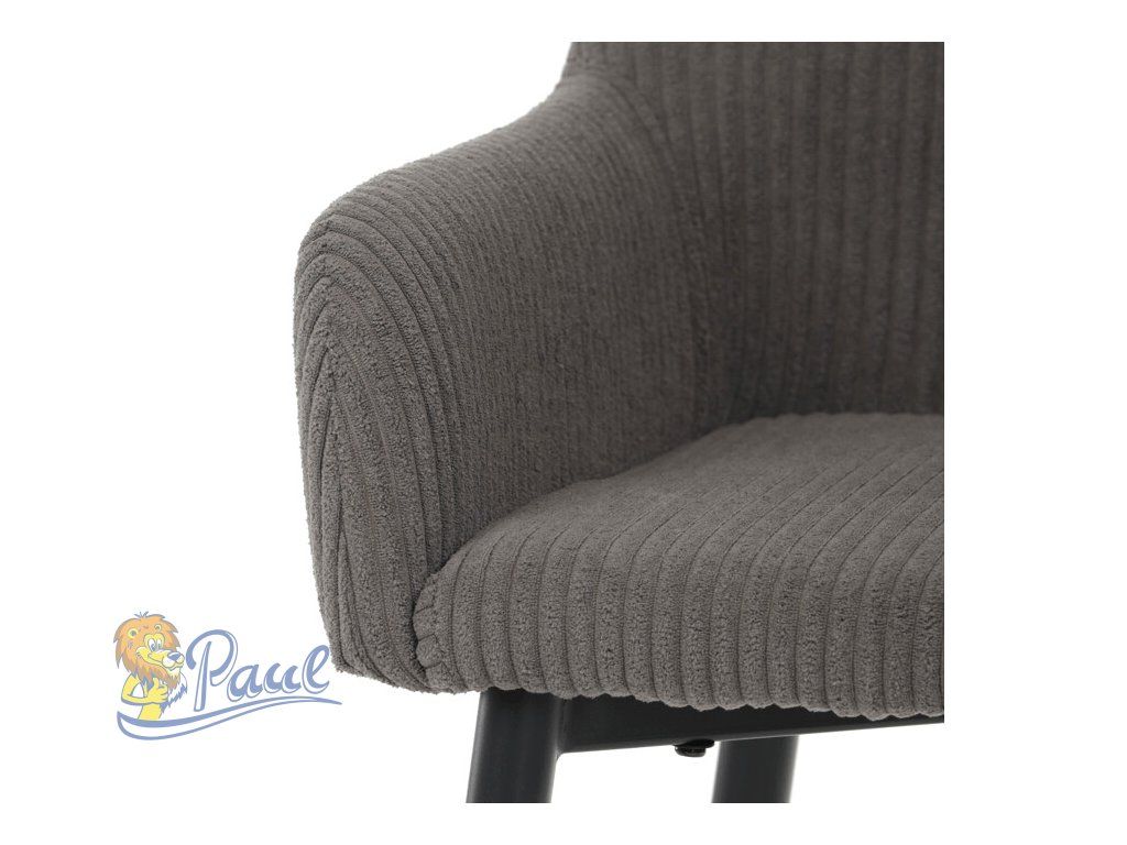 Barová židle s područkami v šedé manšestrové látce nabízí pohodlné posezení s příjemnou texturou materiálu, která je navržena pro dlouhou životnost a snadnou údržbu. Pevná kovová podnož v černém provedení zajišťuje stabilitu a bezpečnost při sezení, přičemž čtvercový rám mezi nohami slouží zároveň jako opěrka nohou pro zvýšení komfortu. Ergonomicky tvarované opěradlo a integrované područky podporují správnou polohu těla a přispívají k pohodlí během delšího sezení. Židle není otočná, což podtrhuje její jednoduchý a stabilní design vhodný do barových prostor i kuchyňských koutů. Celková kombinace manšestrové látky a kovu vytváří moderní a zároveň nadčasový vzhled.Doplňkové parametry