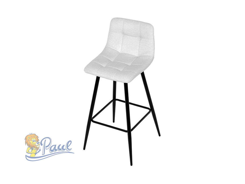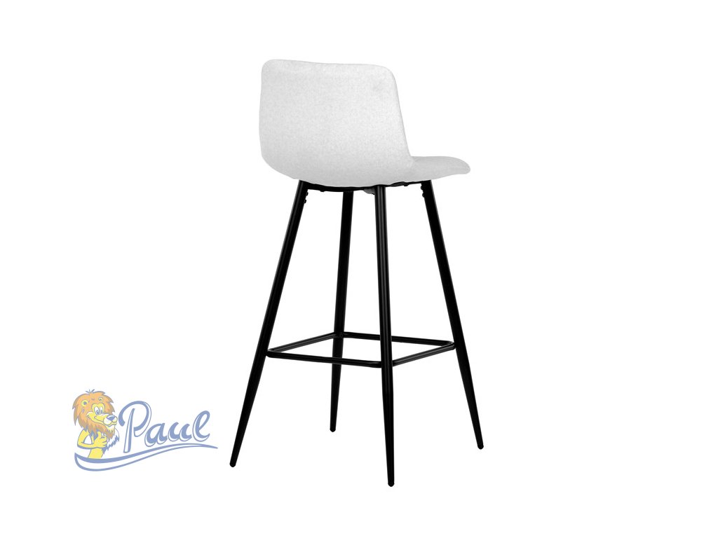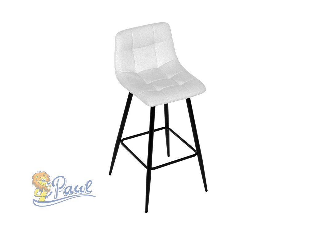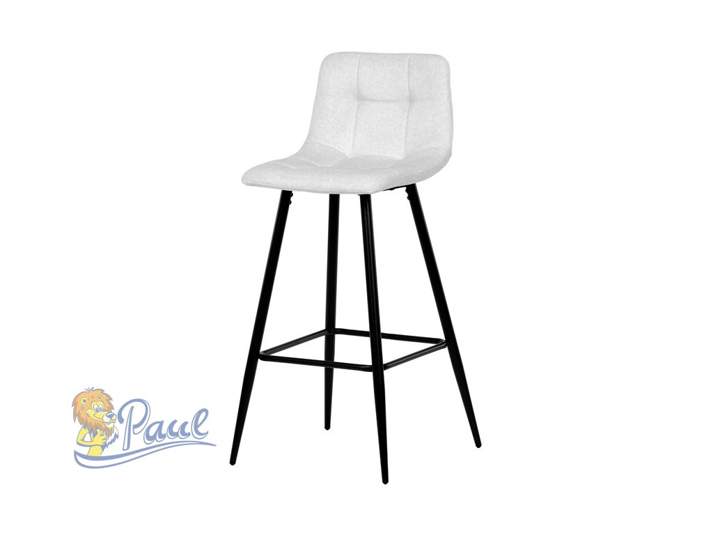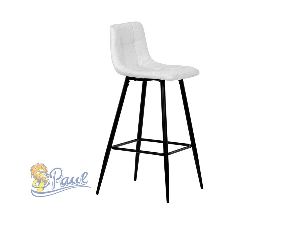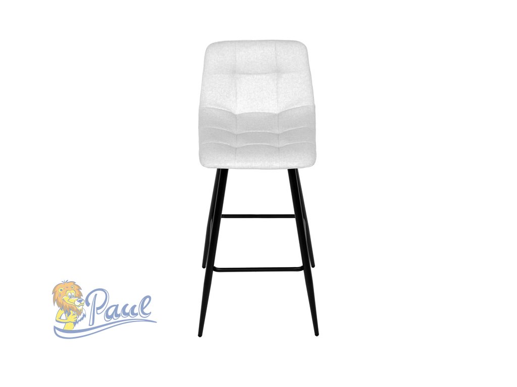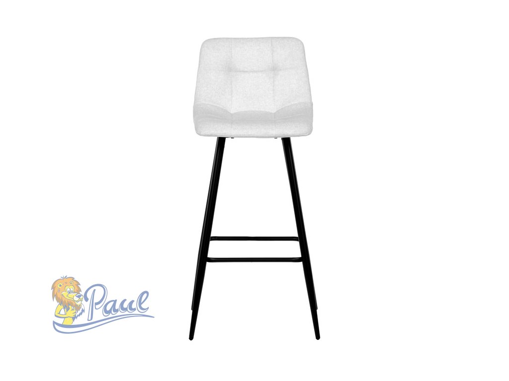 Židle barová, bílá látka, čtyřnohá kovová podnož, černý mat