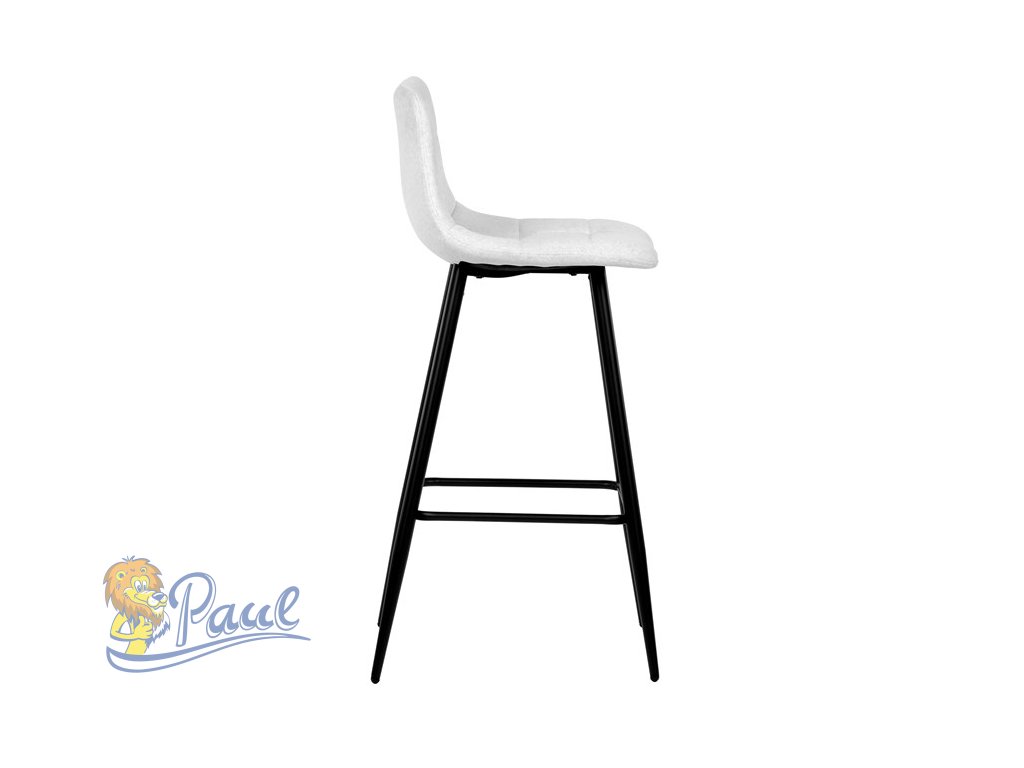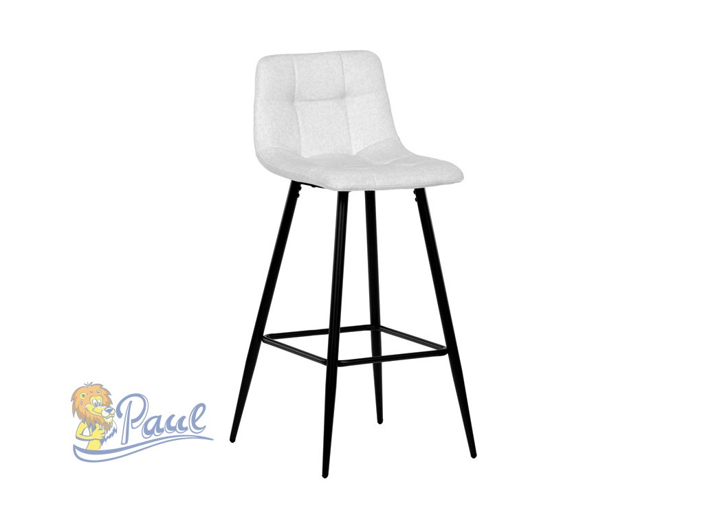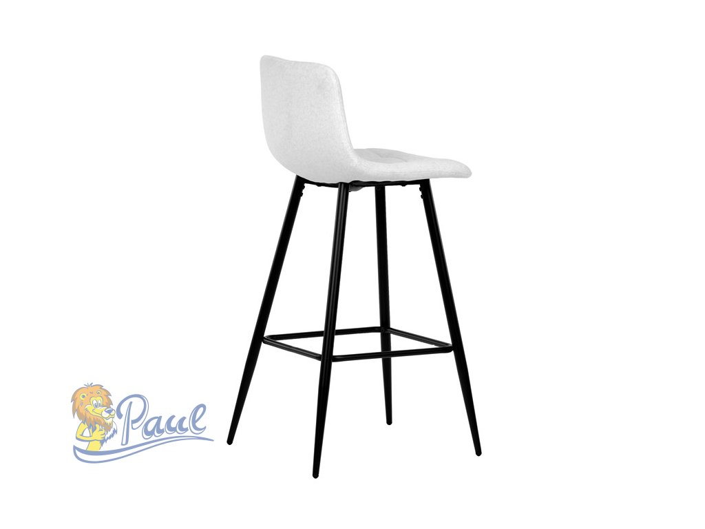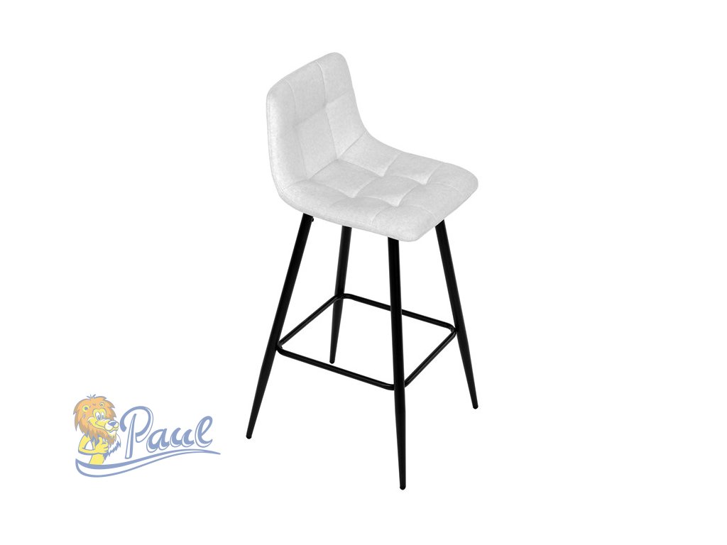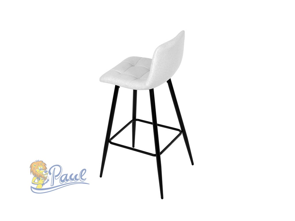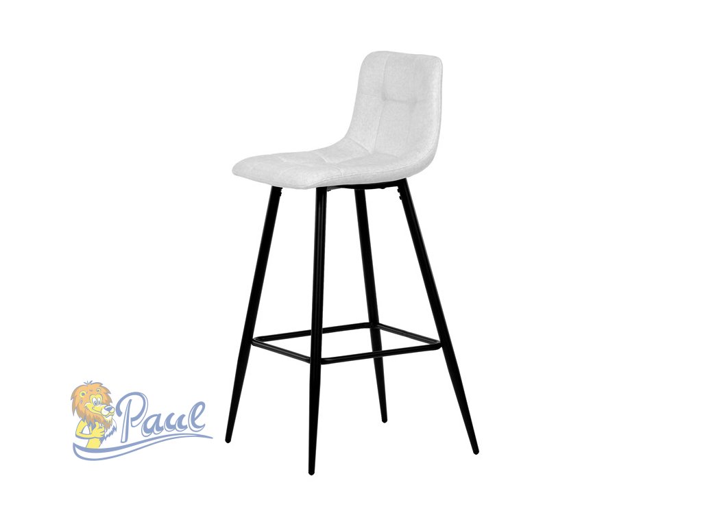 Židle barová, bílá látka, čtyřnohá kovová podnož, černý mat