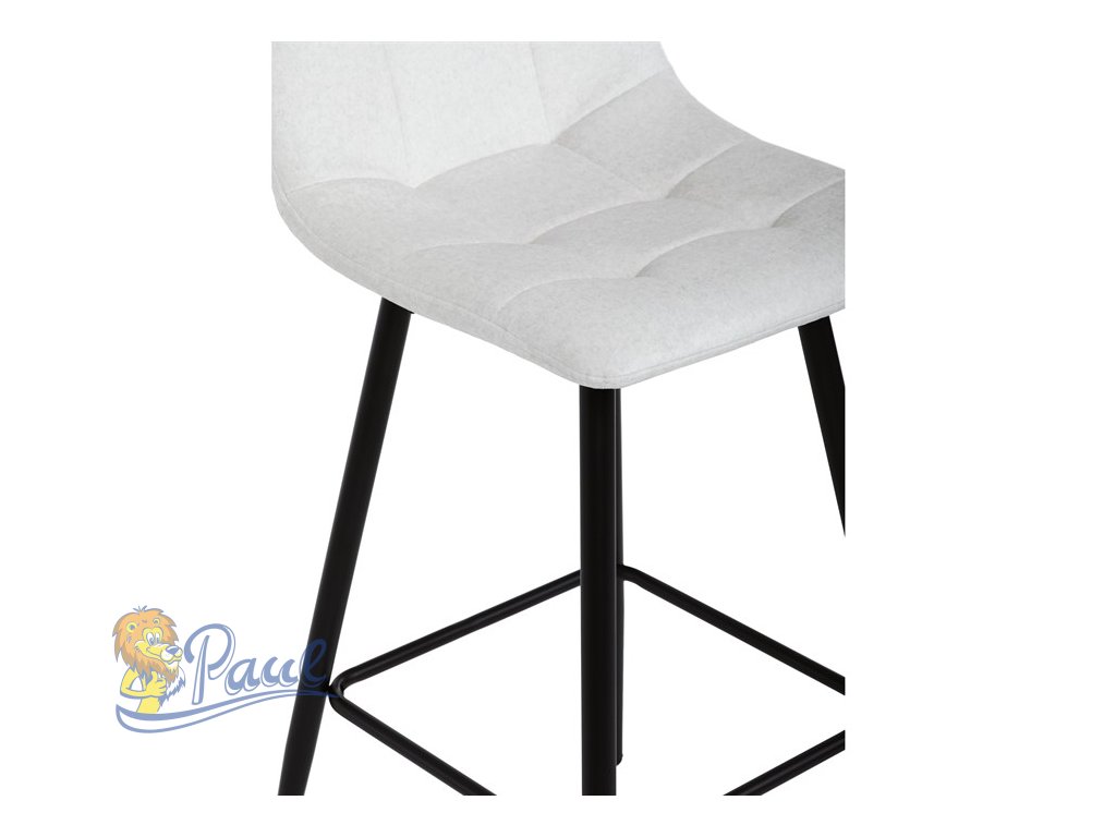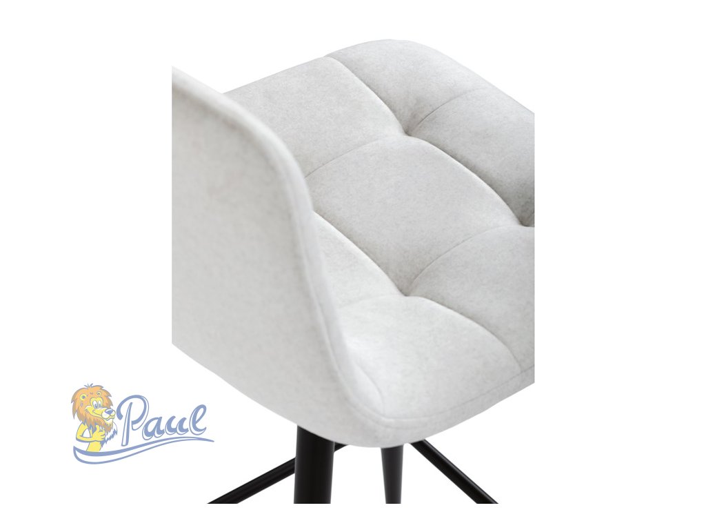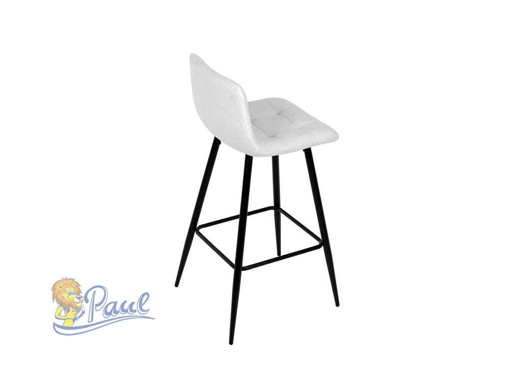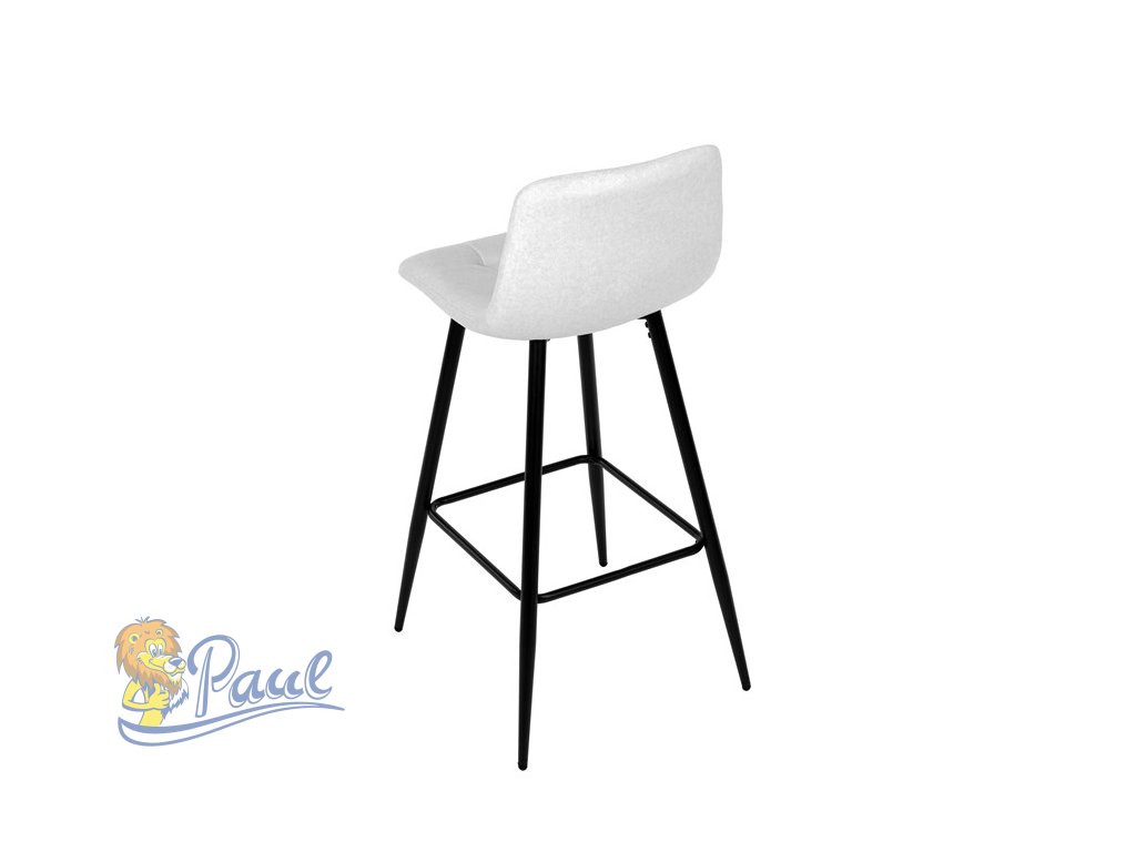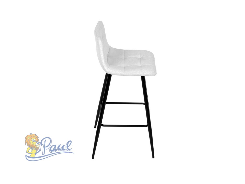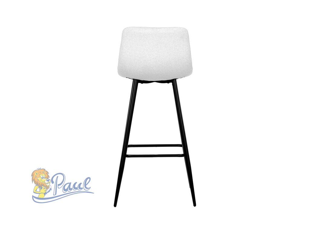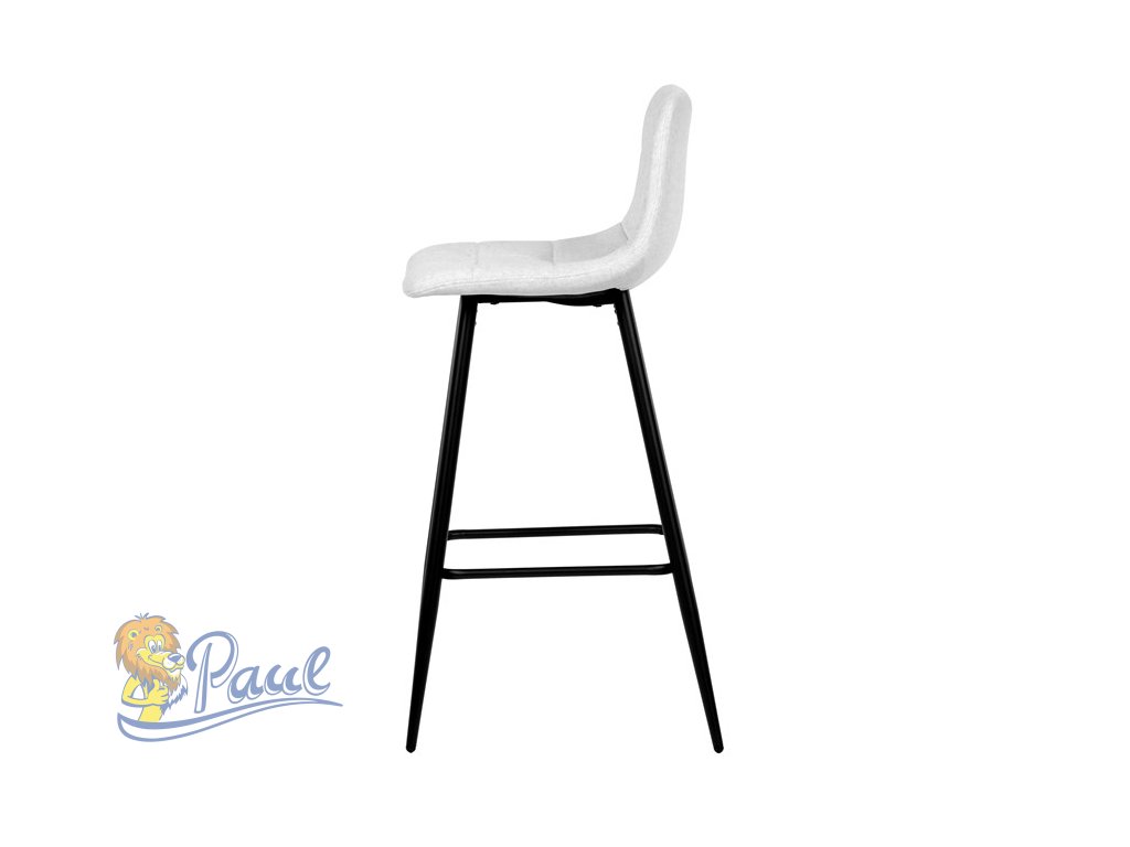 Židle barová, bílá látka, čtyřnohá kovová podnož, černý mat