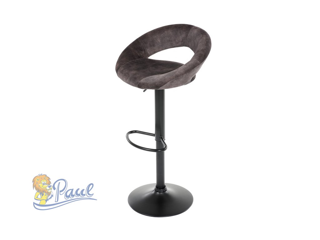 Židle barová, hnědá sametová látka, černá podnož