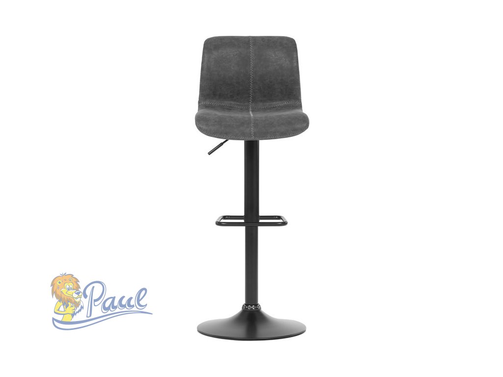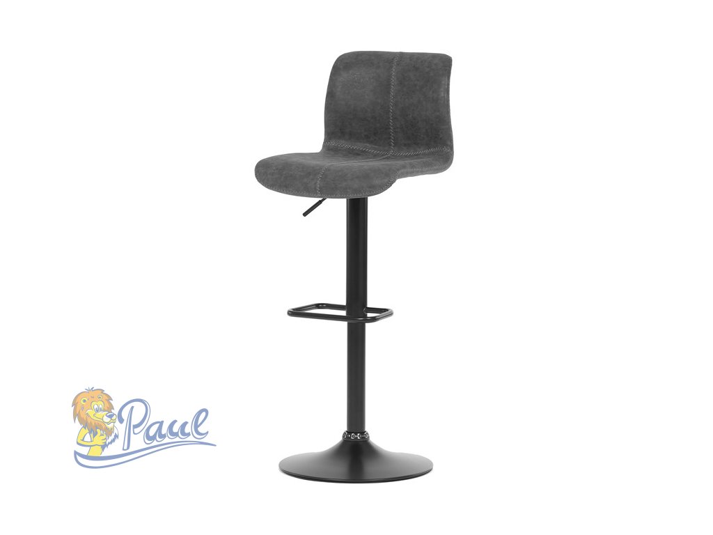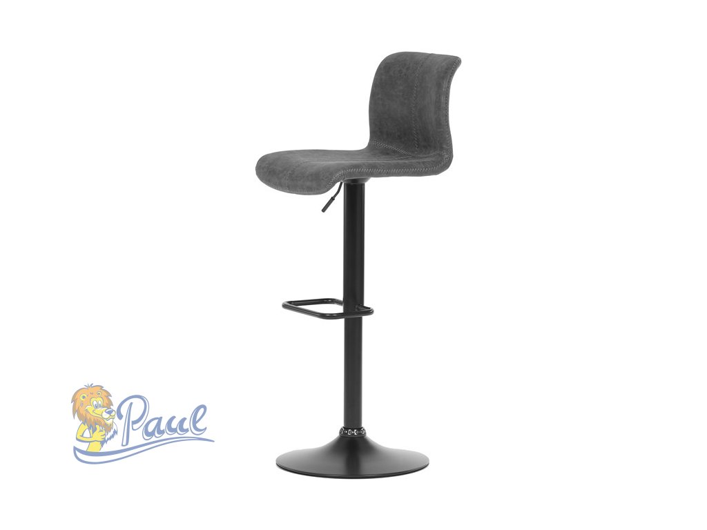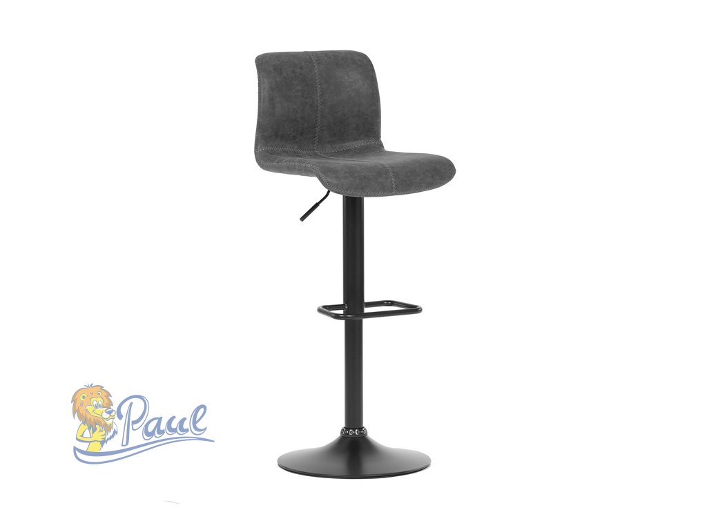 Židle barová, šedá látka v imitaci broušené kůže, černá podnož, výškově stavitelná