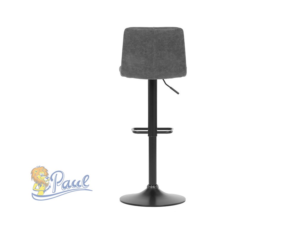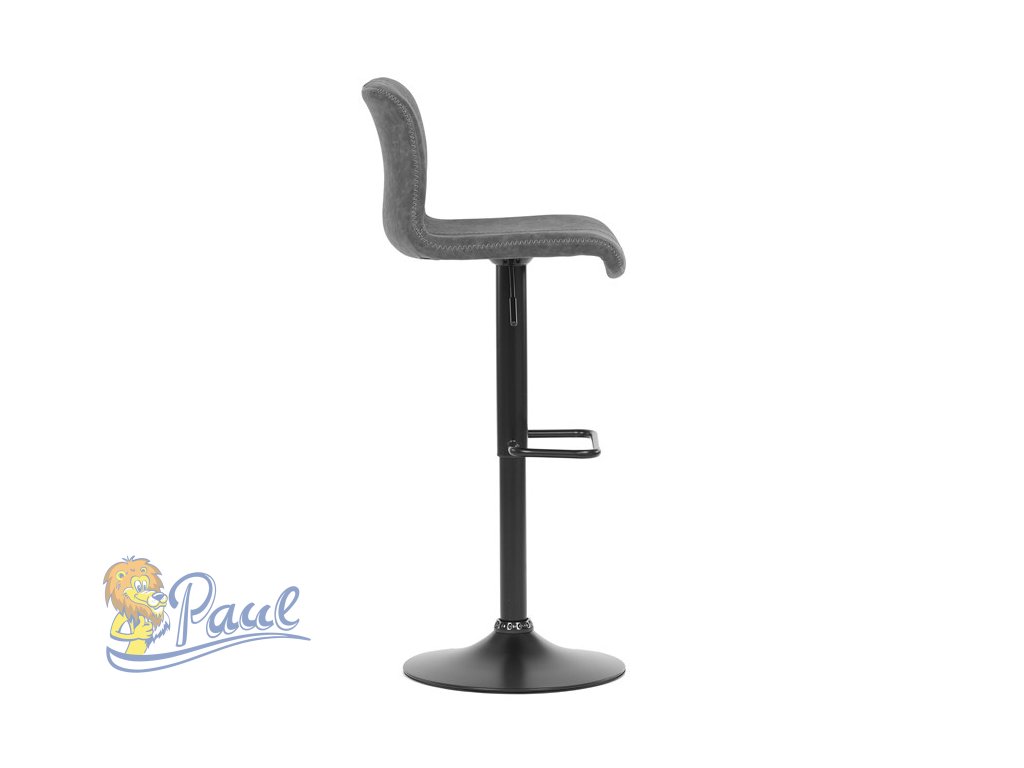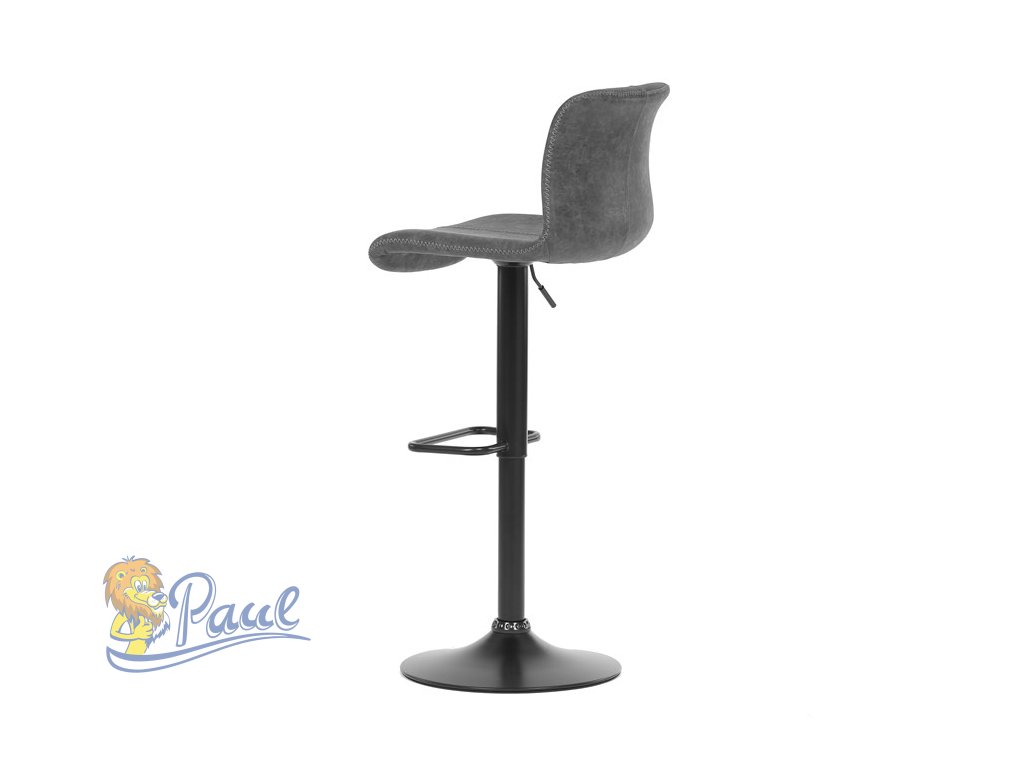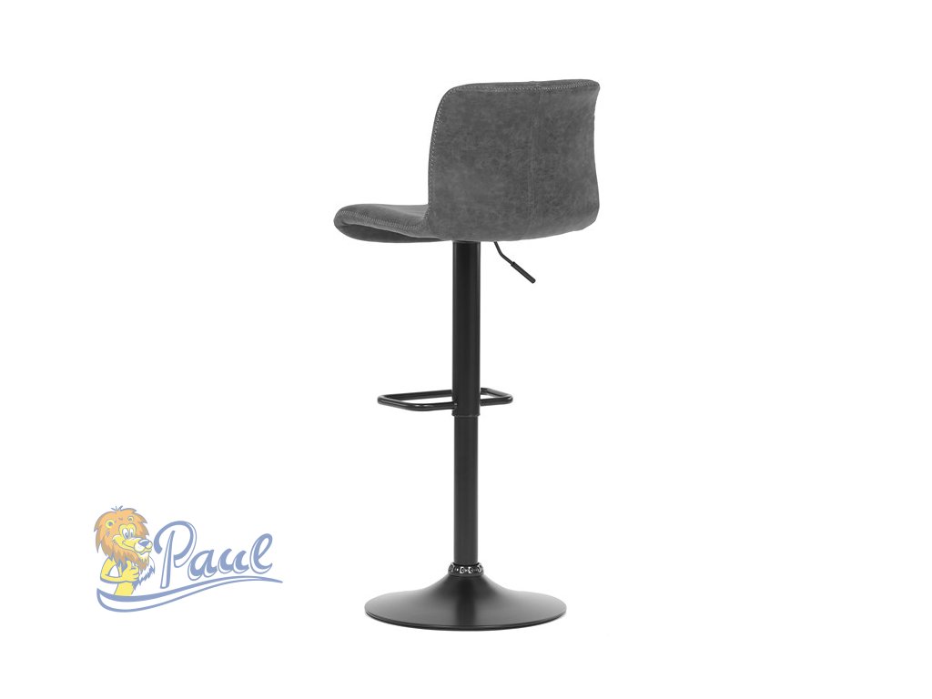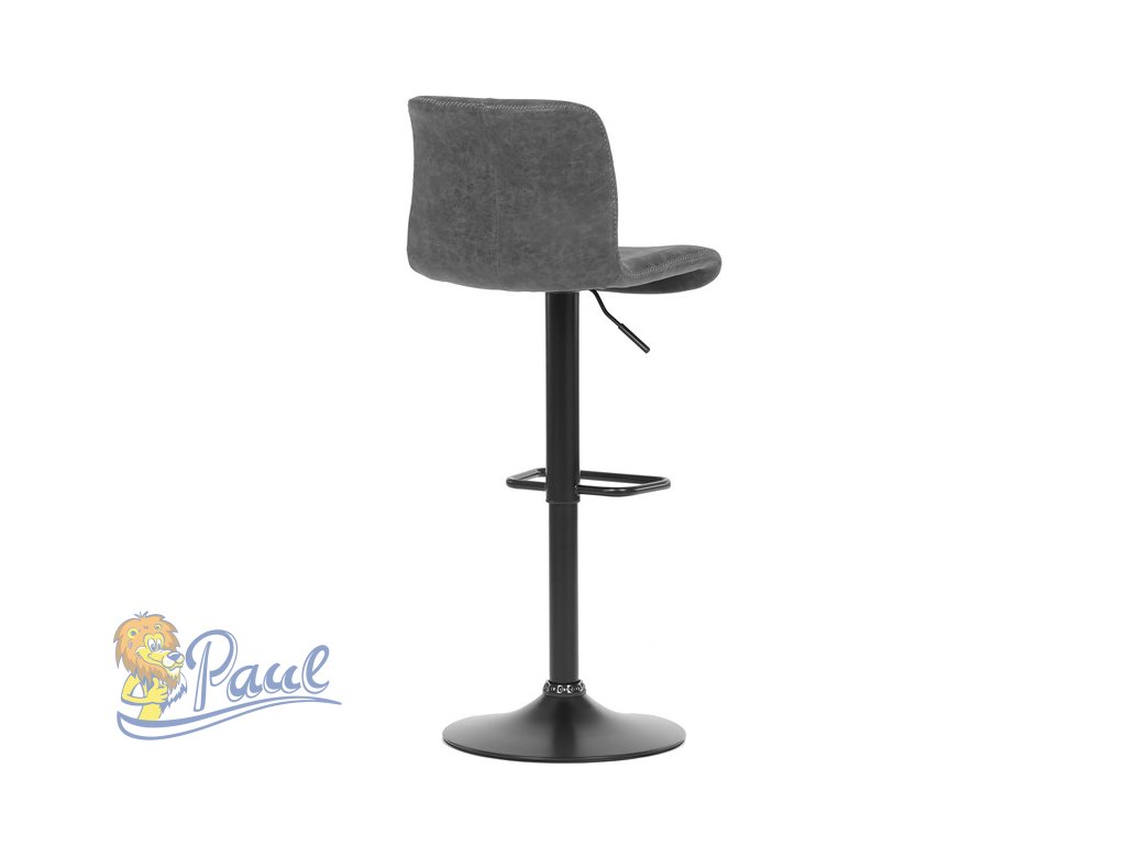 Židle barová, šedá látka v imitaci broušené kůže, černá podnož, výškově stavitelná