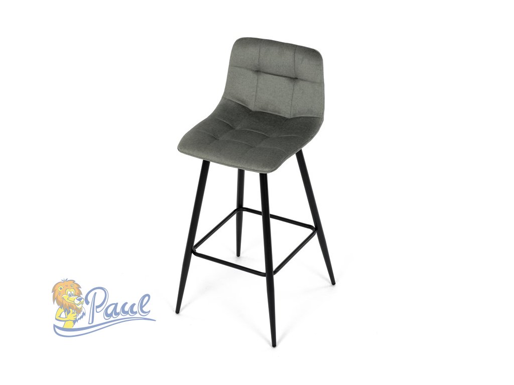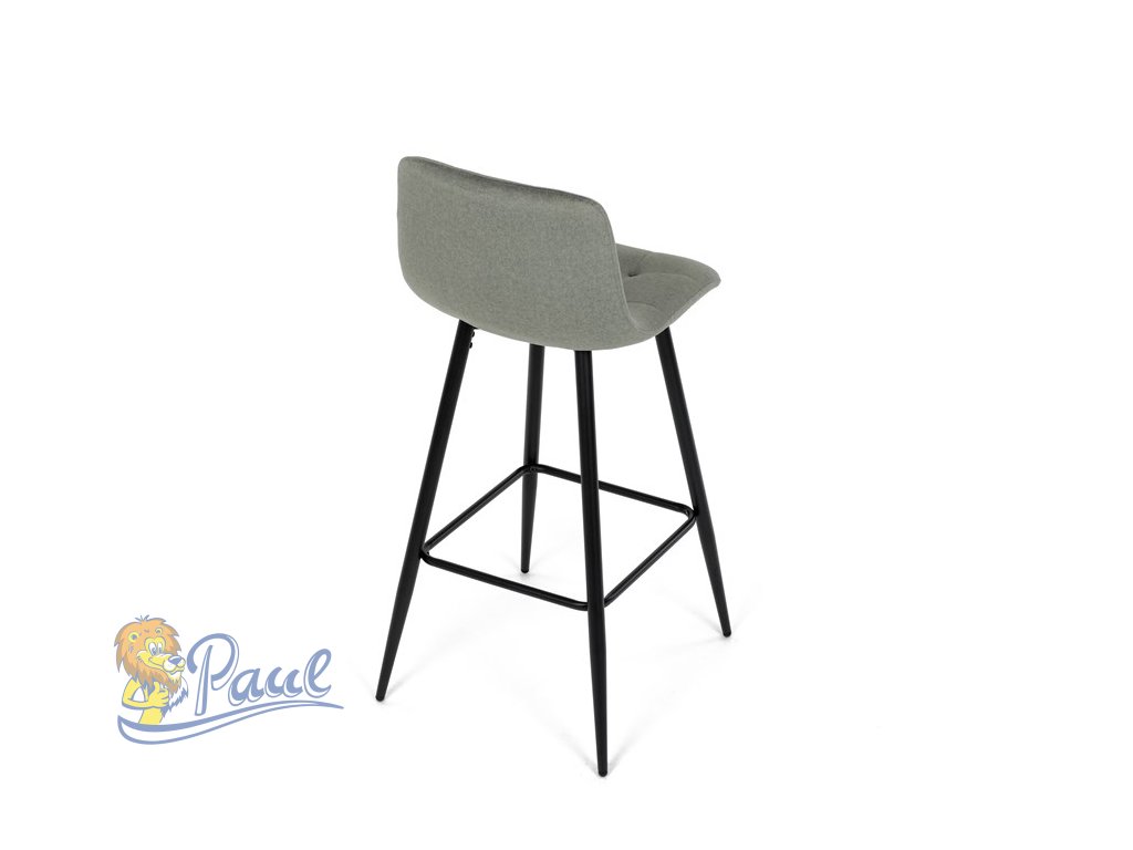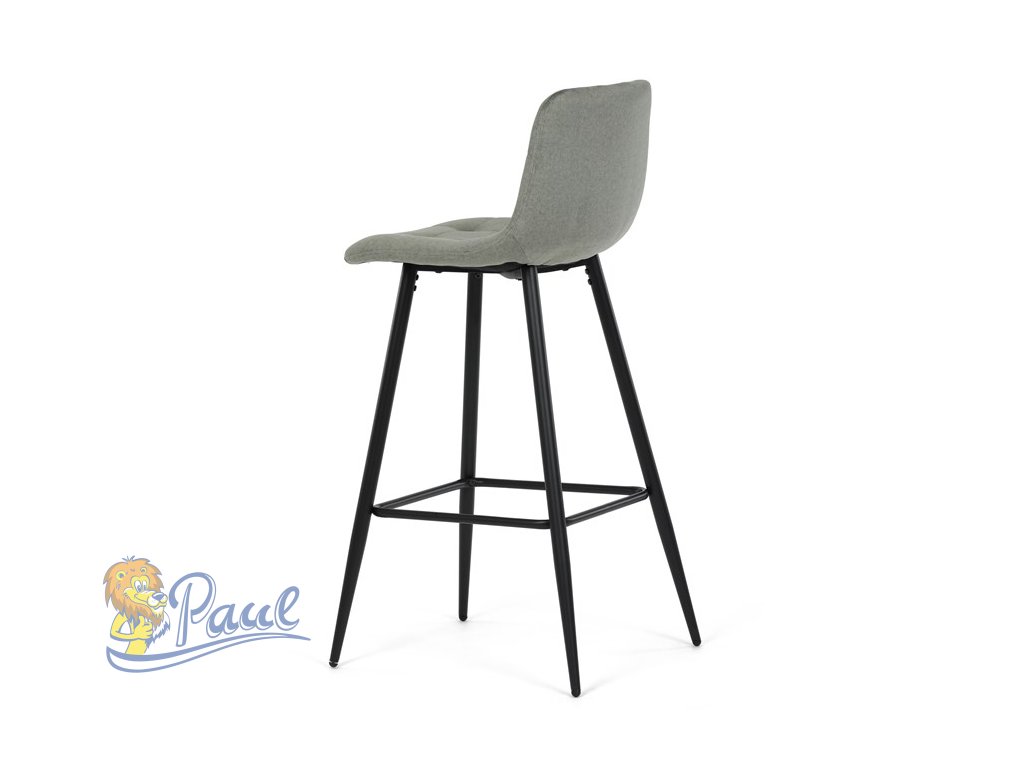 Židle barová, zelená látka, čtyřnohá kovová podnož, černý mat