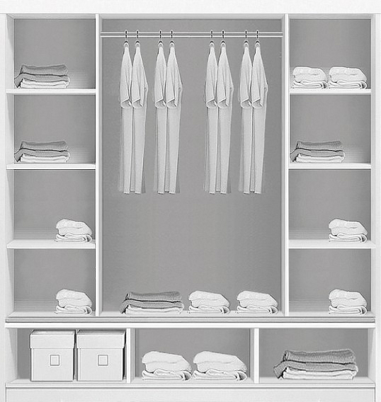 Vnitřní uspořádání skříně by mělo odpovídat vašemu šatníku. Pro košile a šaty využijte šatní tyče, pro složené oblečení se hodí police.