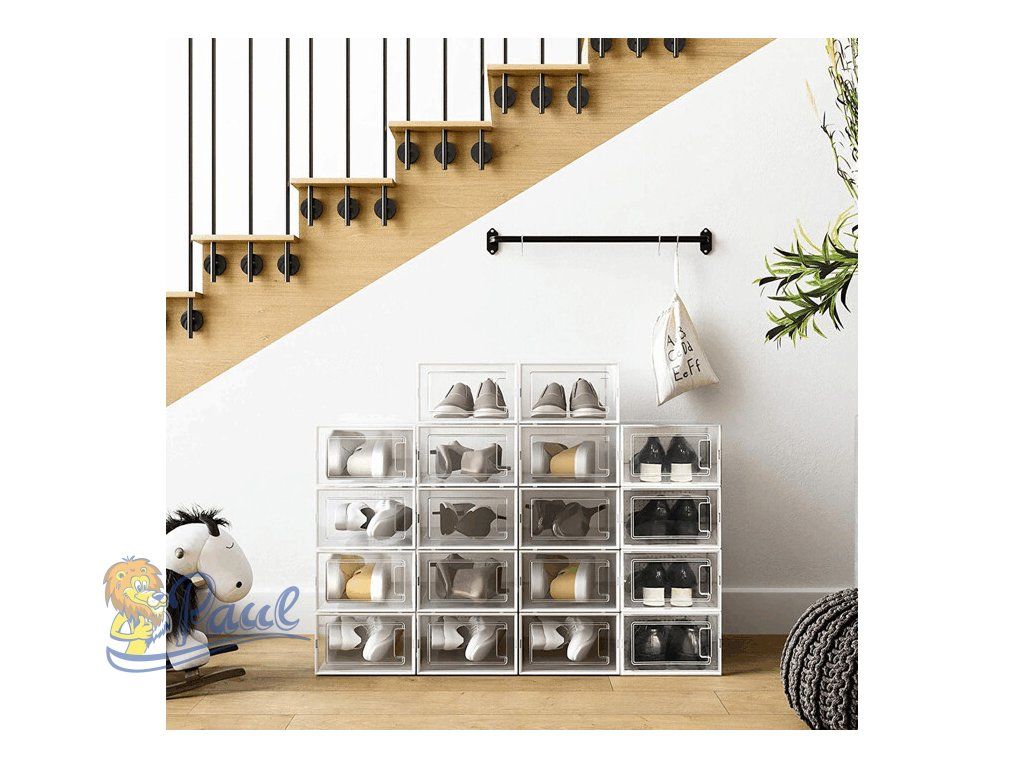 Plastový botník s osmi přihrádkami a průhlednými dvířky nabízí praktické řešení pro organizaci obuvi v domácnosti. Bílé provedení a jednoduchý design umožňují snadné začlenění do různých interiérů. Každá přihrádka je vybavena otevíracími dvířky s úchyty pro pohodlný přístup a zároveň chrání obuv před prachem. Botník je vyroben z pevného plastu, který se snadno udržuje a je navržen pro dlouhou životnost. Kompaktní rozměry umožňují umístění na podlahu i do menších prostor.Doplňkové parametry