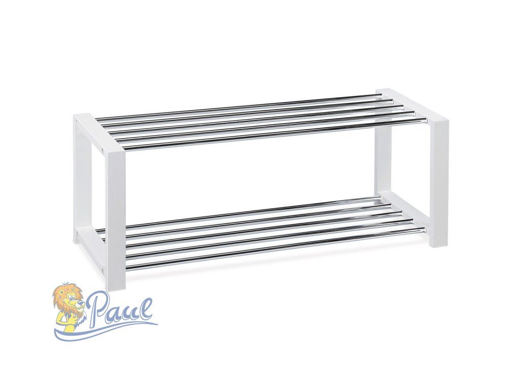 Botník, 2 kovové chromované police, masiv kaučukovník, bílý matný lak