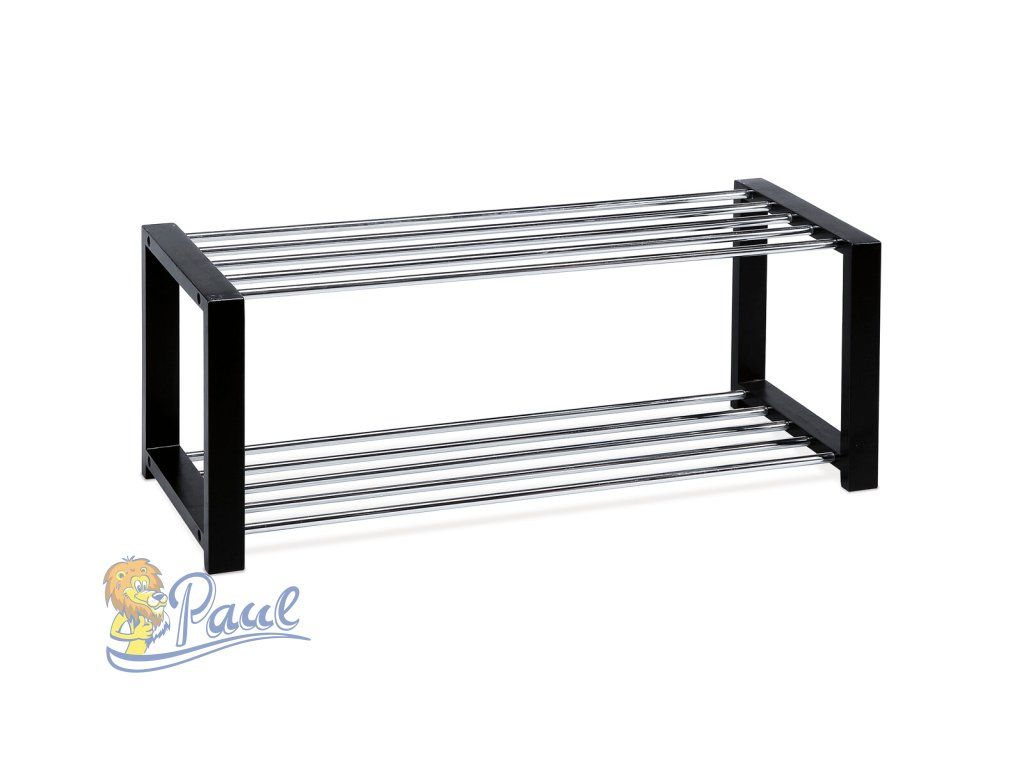 Botník, 2 kovové chromované police, masiv kaučukovník, černý matný lak