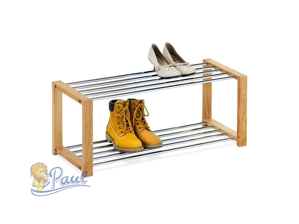 Botník, 2 kovové chromované police, masiv kaučukovník, přírodní odstín