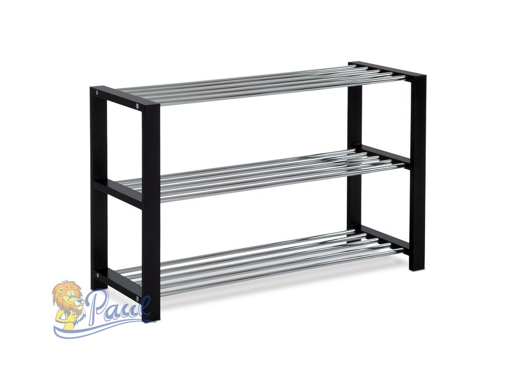Botník, 3 kovové chromované police, masiv kaučukovník, černý matný lak