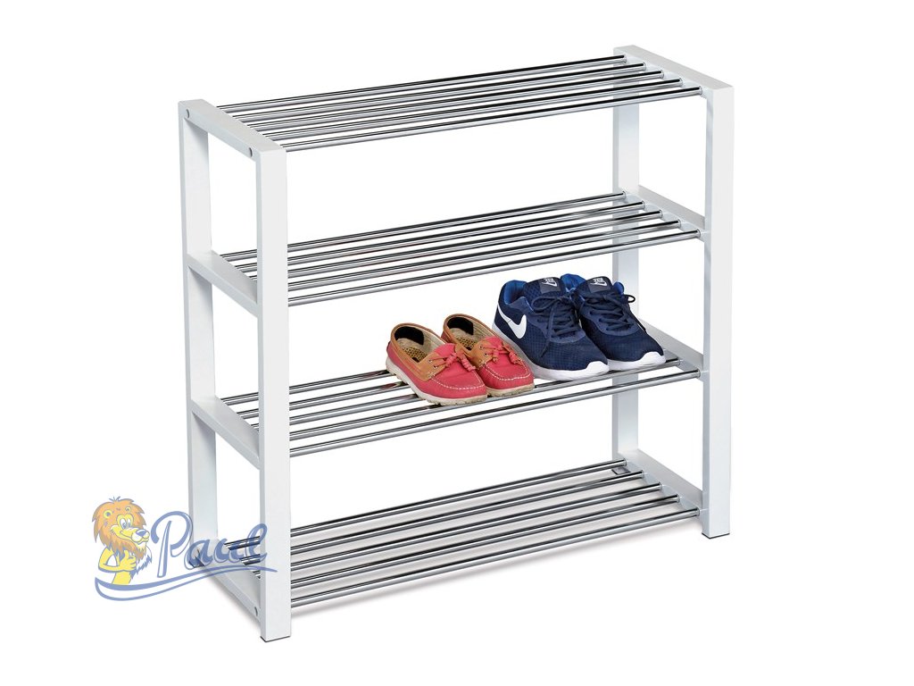 Botník, 4 kovové chromované police, masiv kaučukovník, bílý matný lak