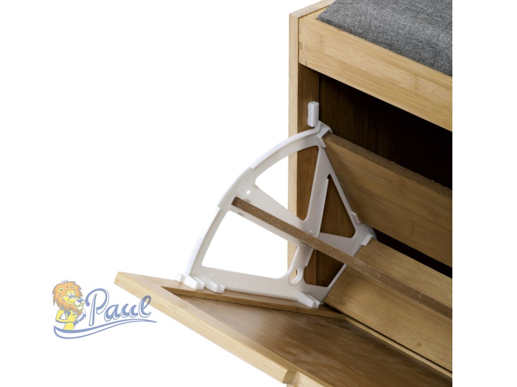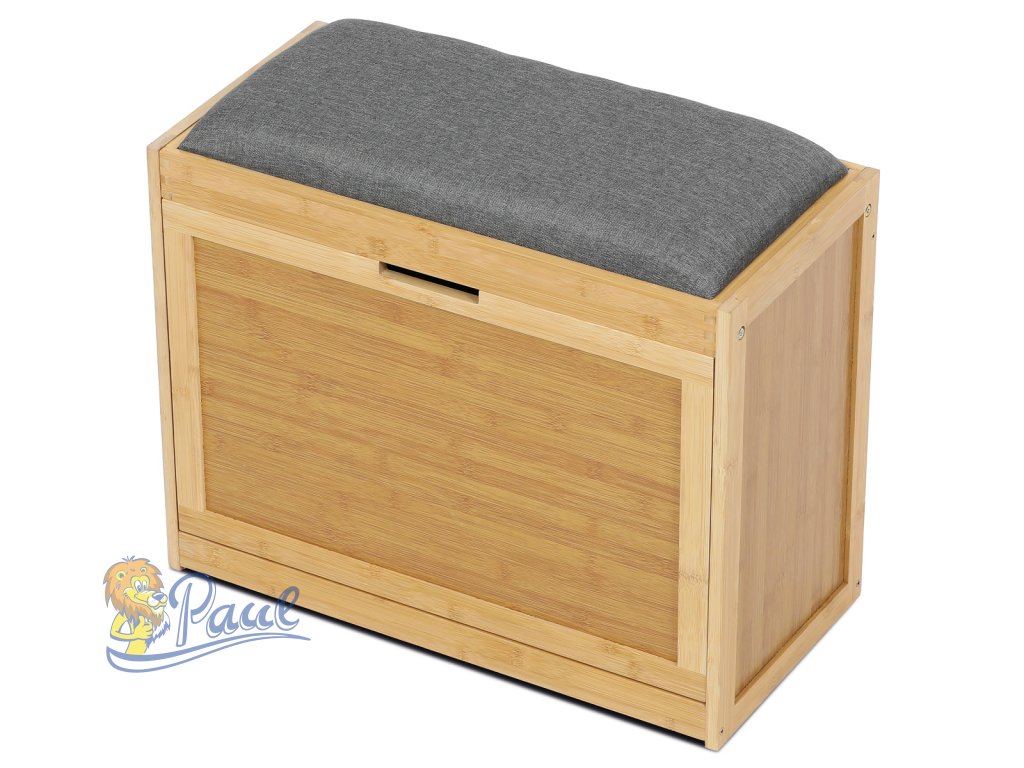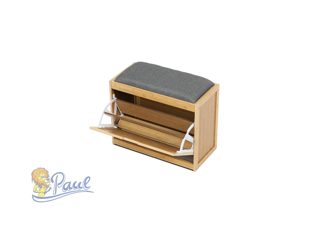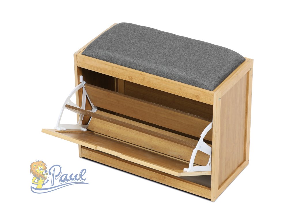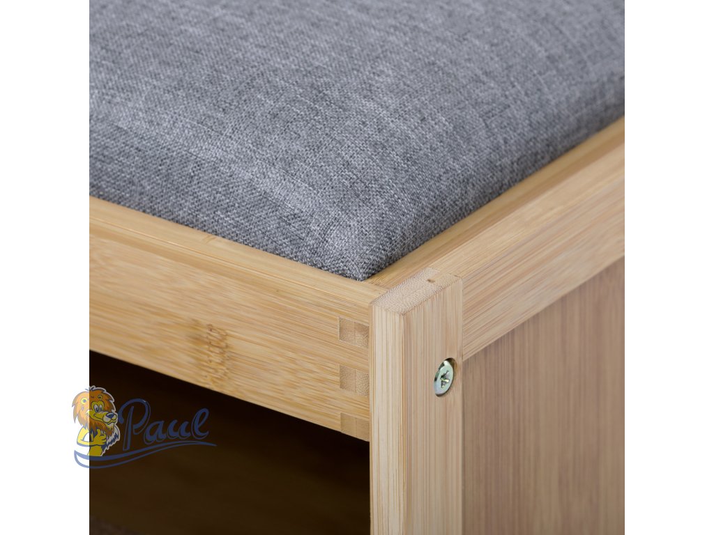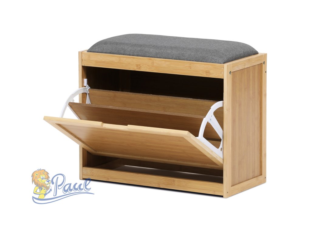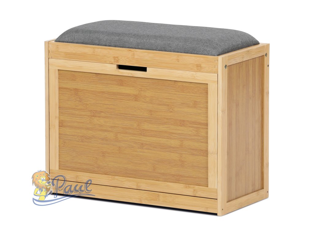 Botník, masiv bambus, přírodní odstín, šedá látka