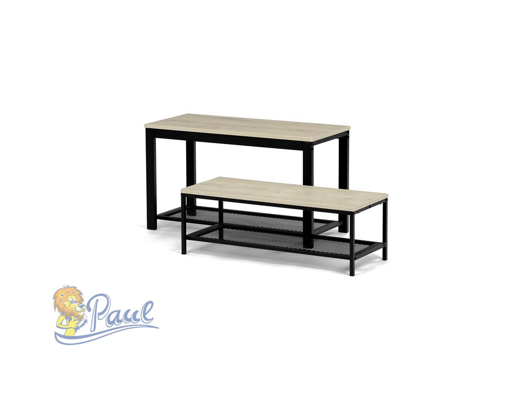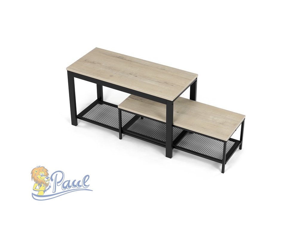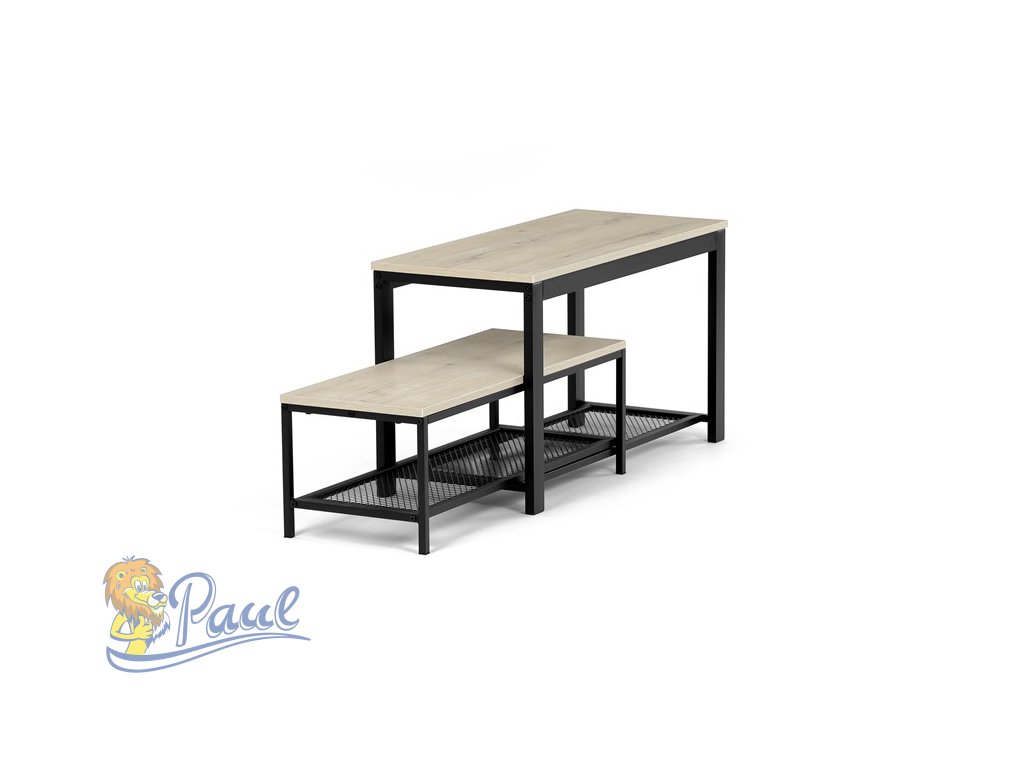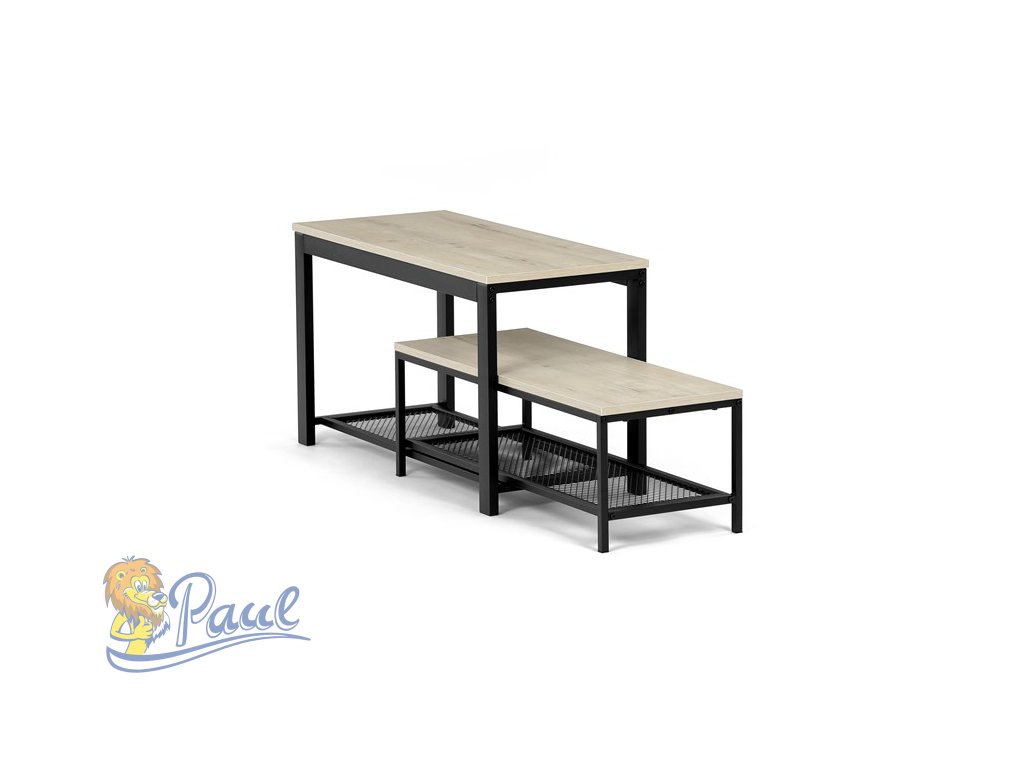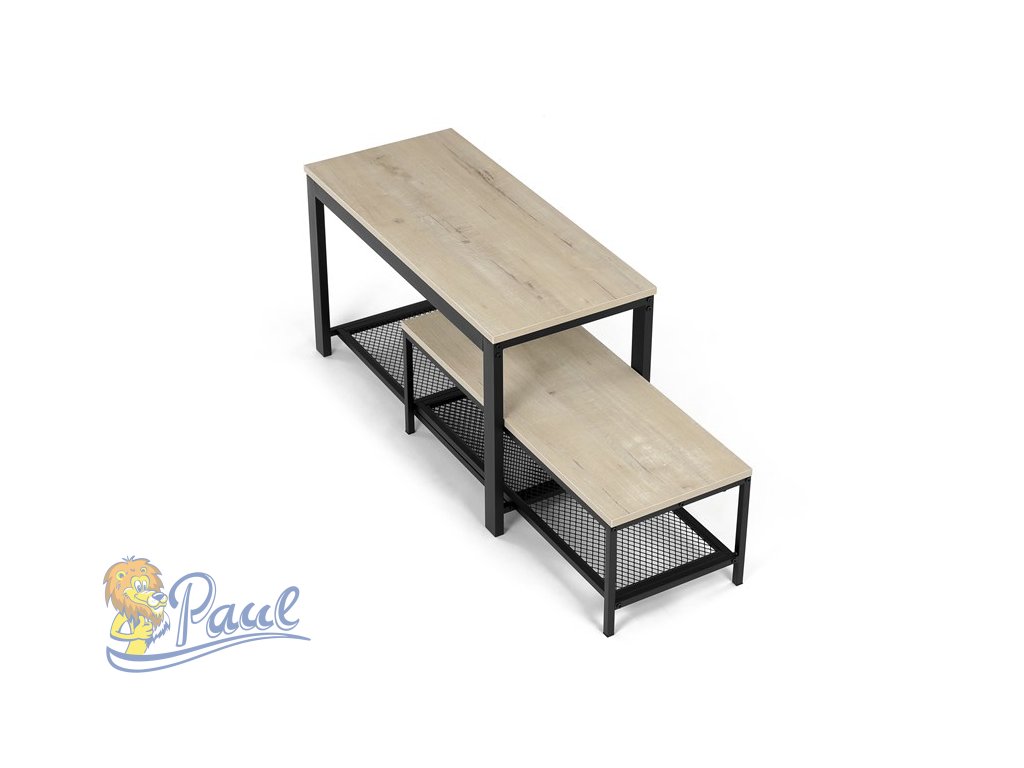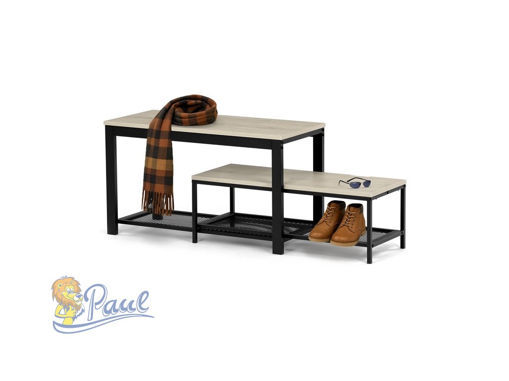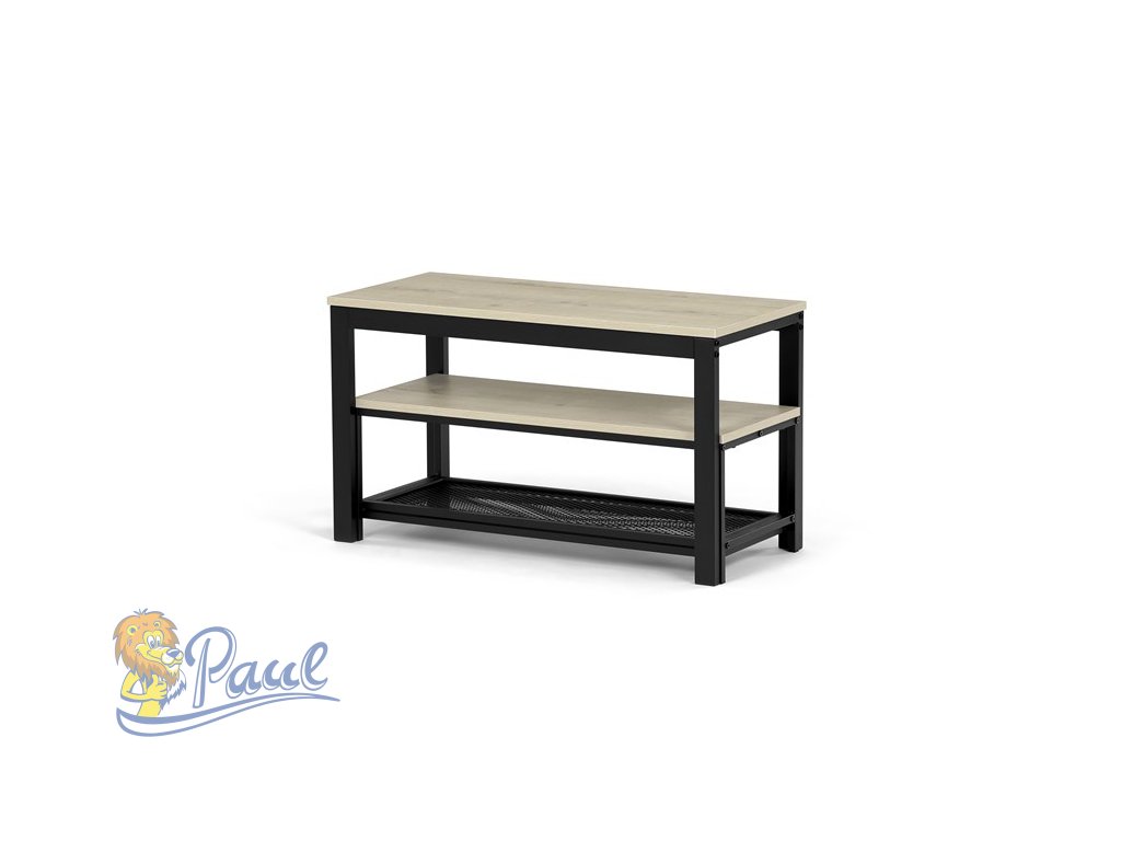 Botník 2 police, MDF dekor dub sonoma, kov - černý matný lak