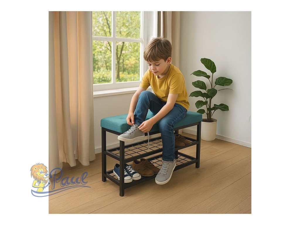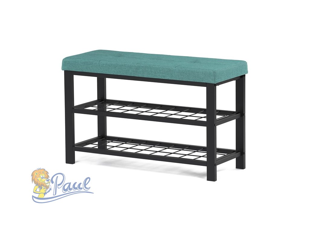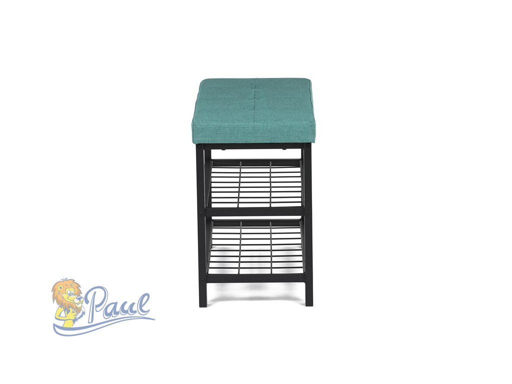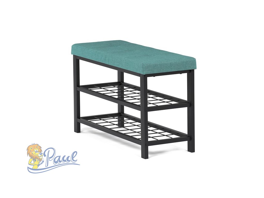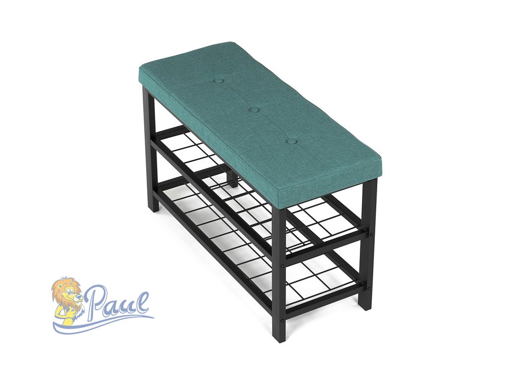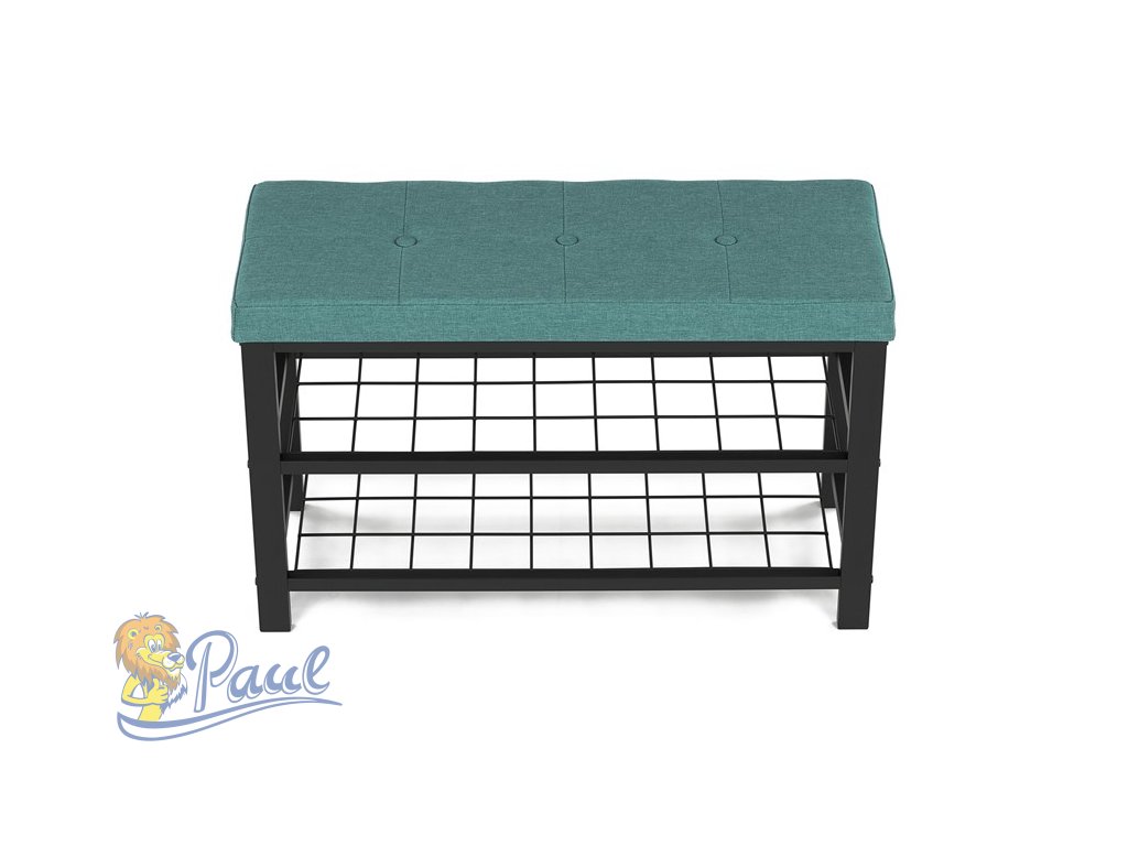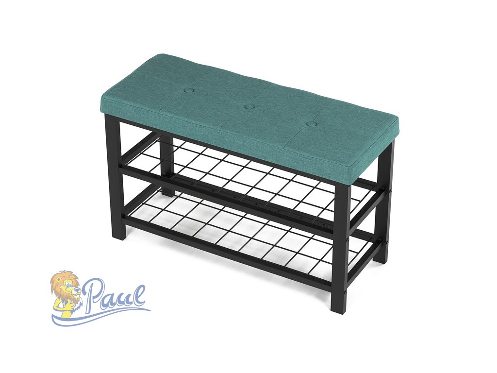 Botník 2 police, potah zelená látka, kov - černý matný lak