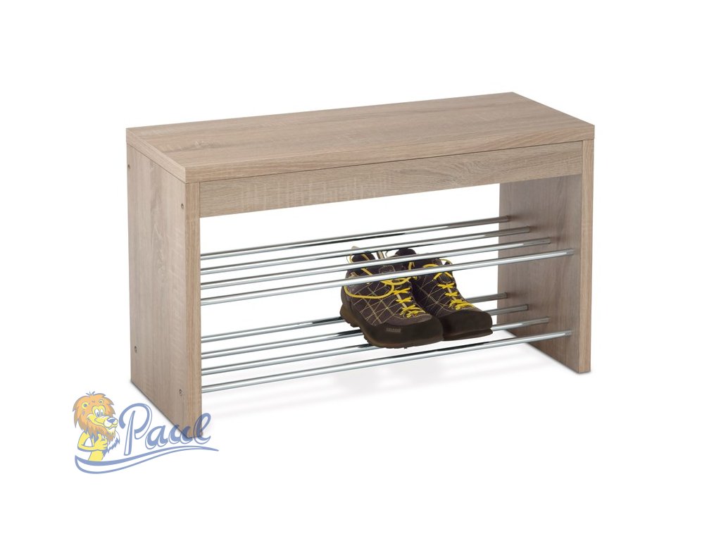 Botník, 2 kovové chromované police, MDF, 3D dekor dub sonoma