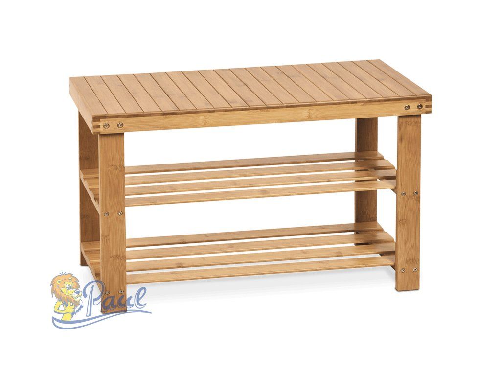 Botník / taburet, 2 police, masiv bambus, přírodní odstín