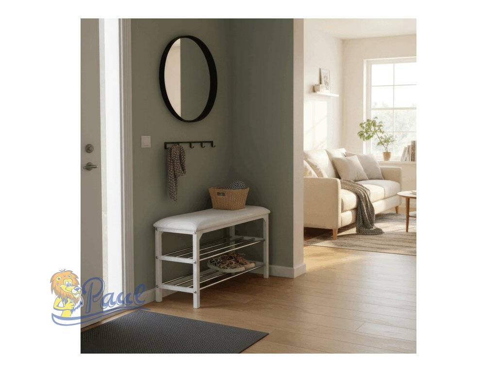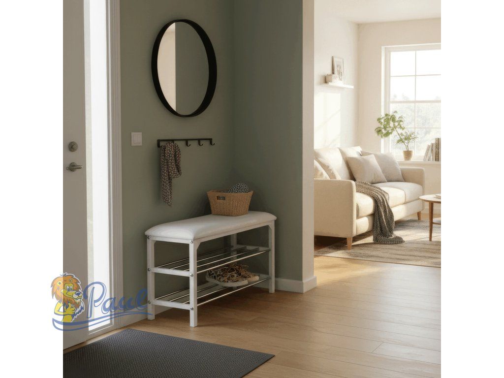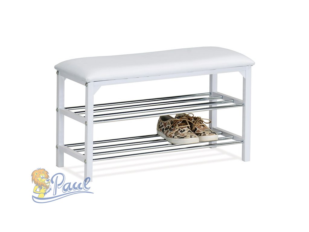 Botník / taburet, 2 police, potah černá ekokůže, kov - bílý matný lak a chrom