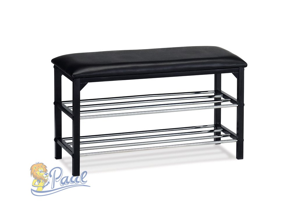 Botník / taburet, 2 police, potah černá ekokůže, kov - černý matný lak a chrom