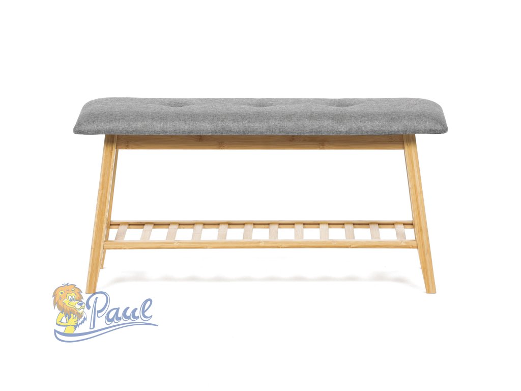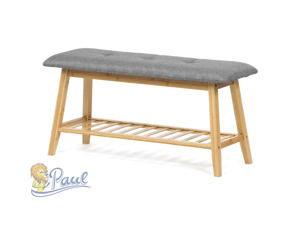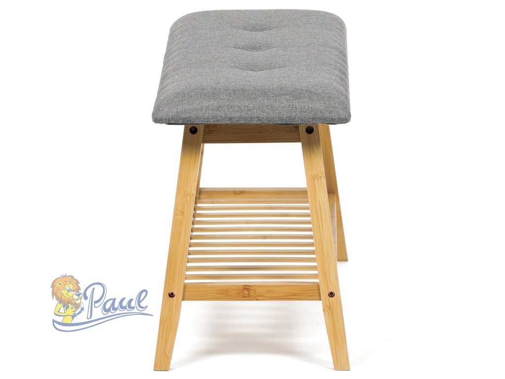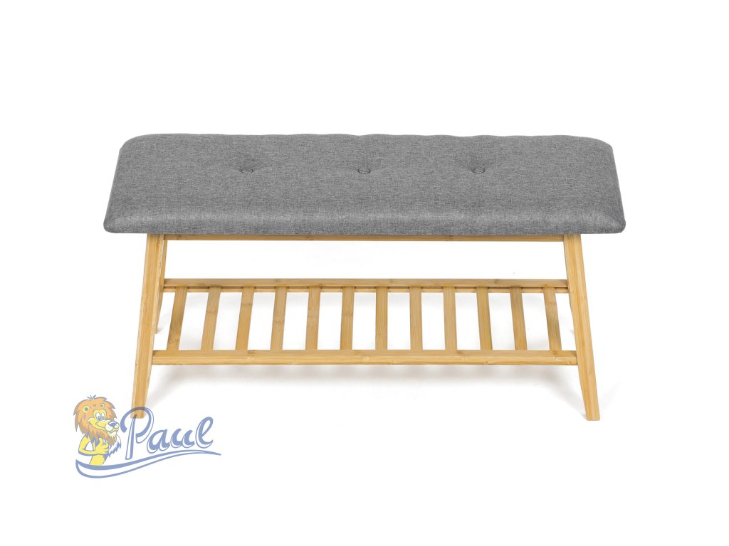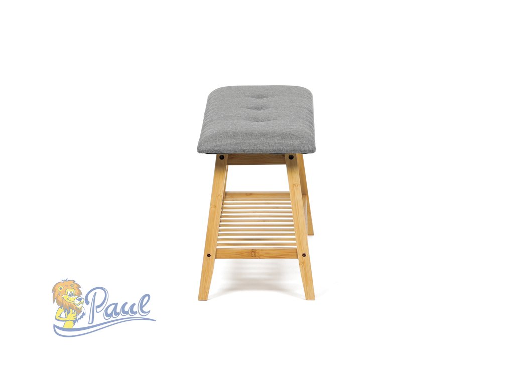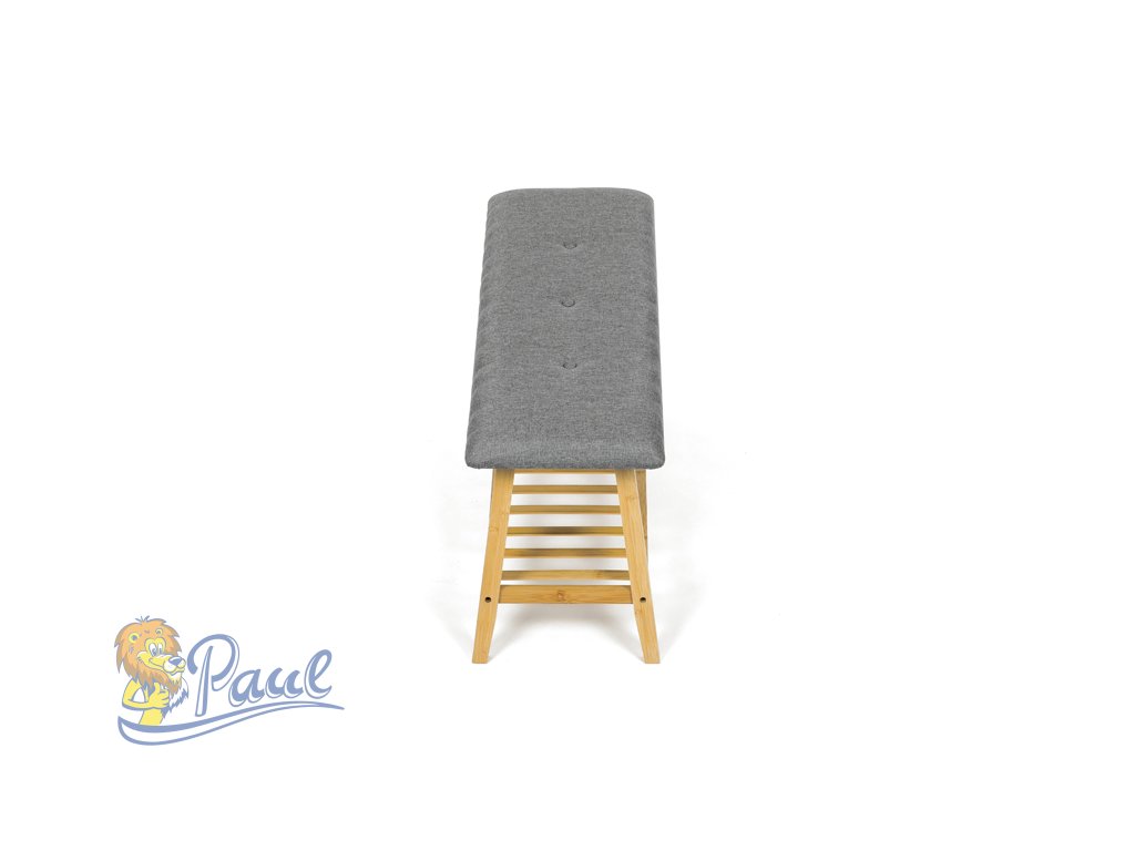 Botník / taburet, police, masiv bambus, přírodní odstín, šedá látka
