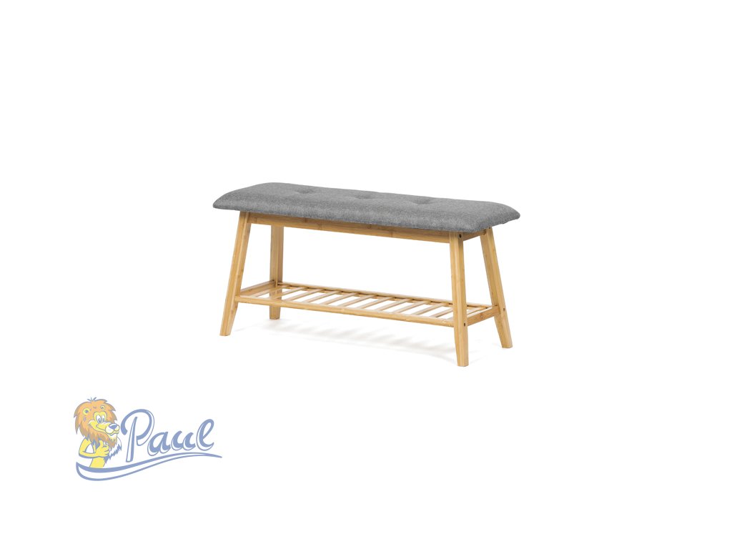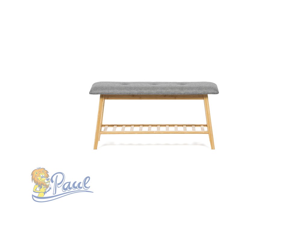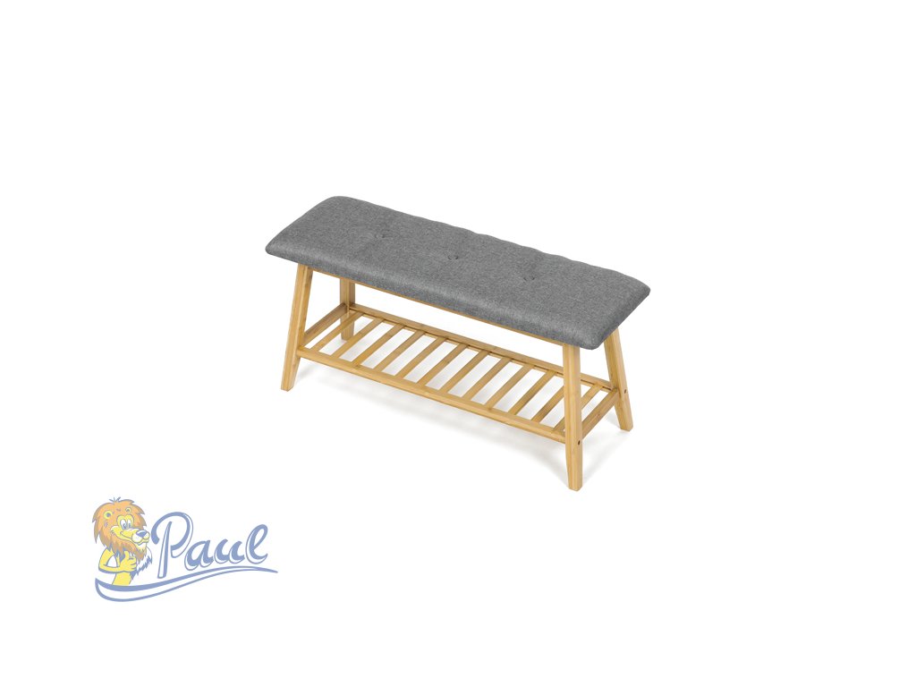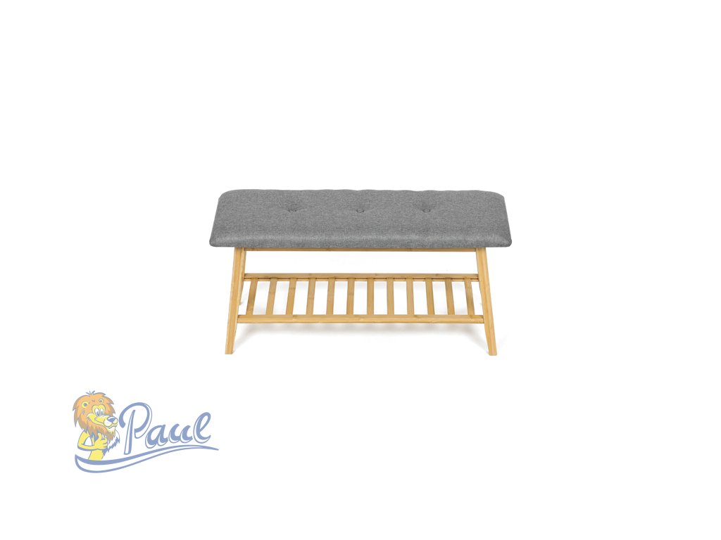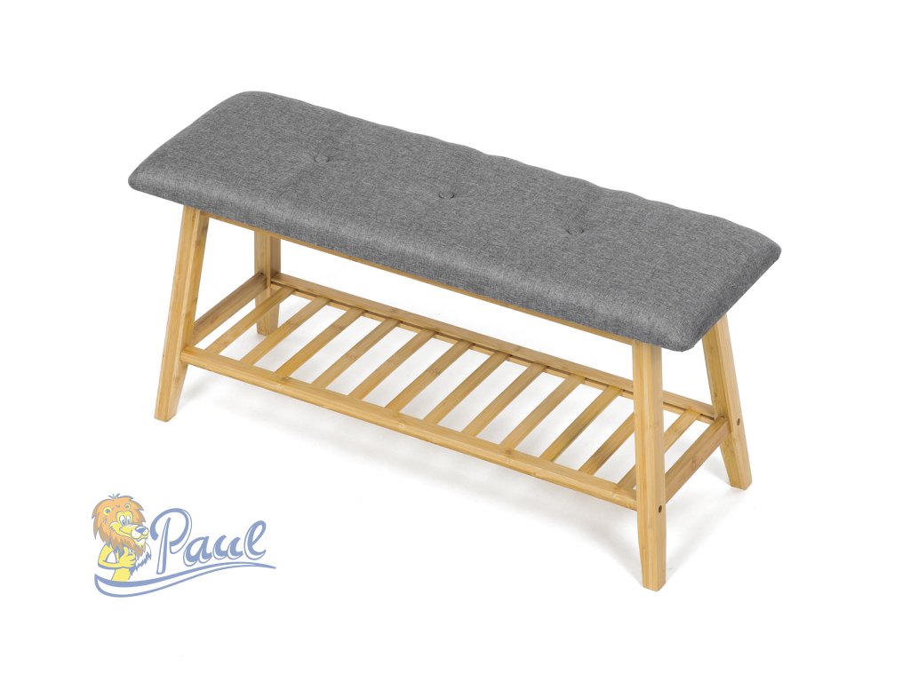 Botník / taburet, police, masiv bambus, přírodní odstín, šedá látka