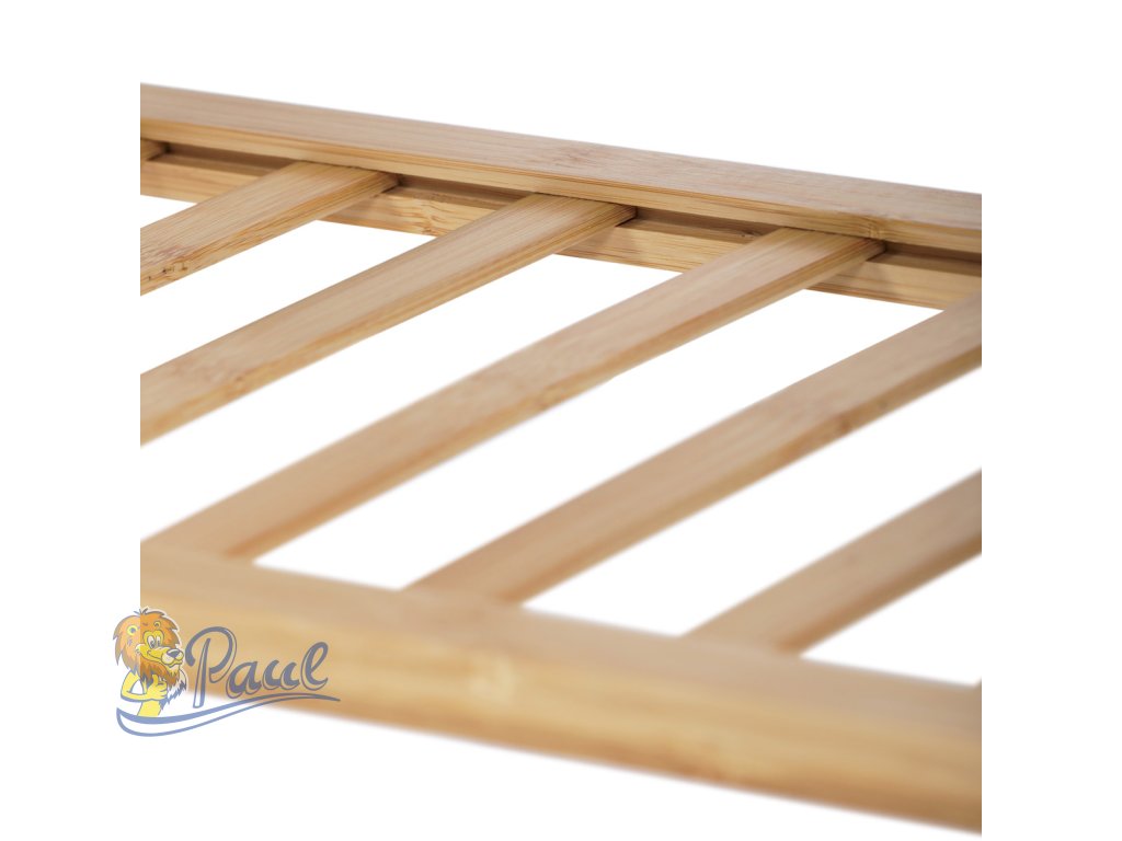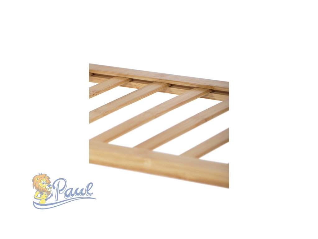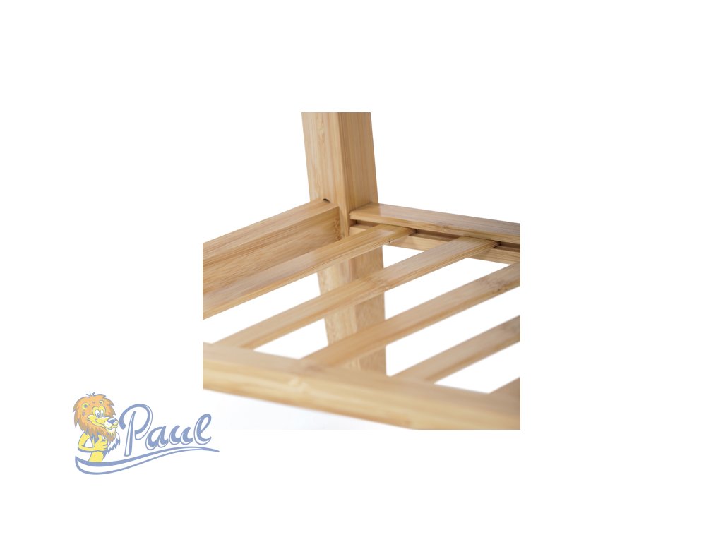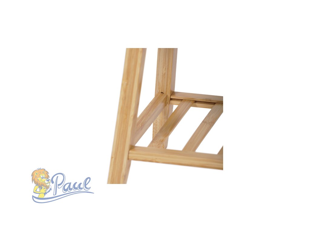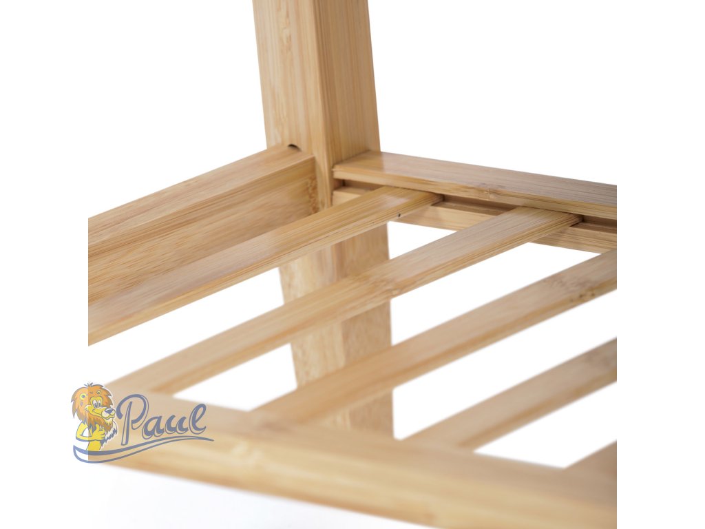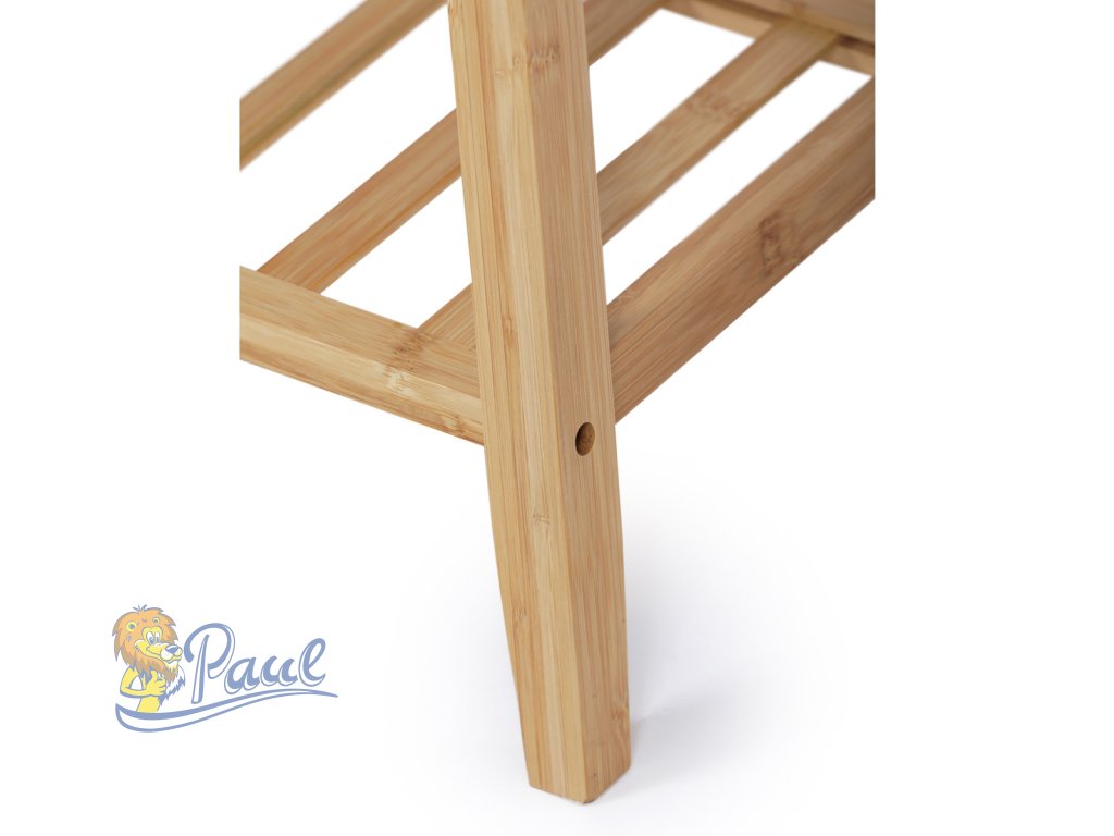Botník / taburet, police, masiv bambus, přírodní odstín, šedá látka