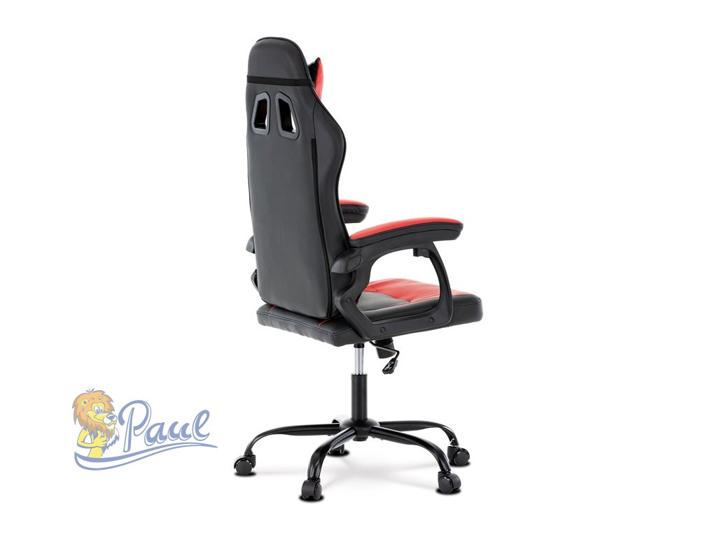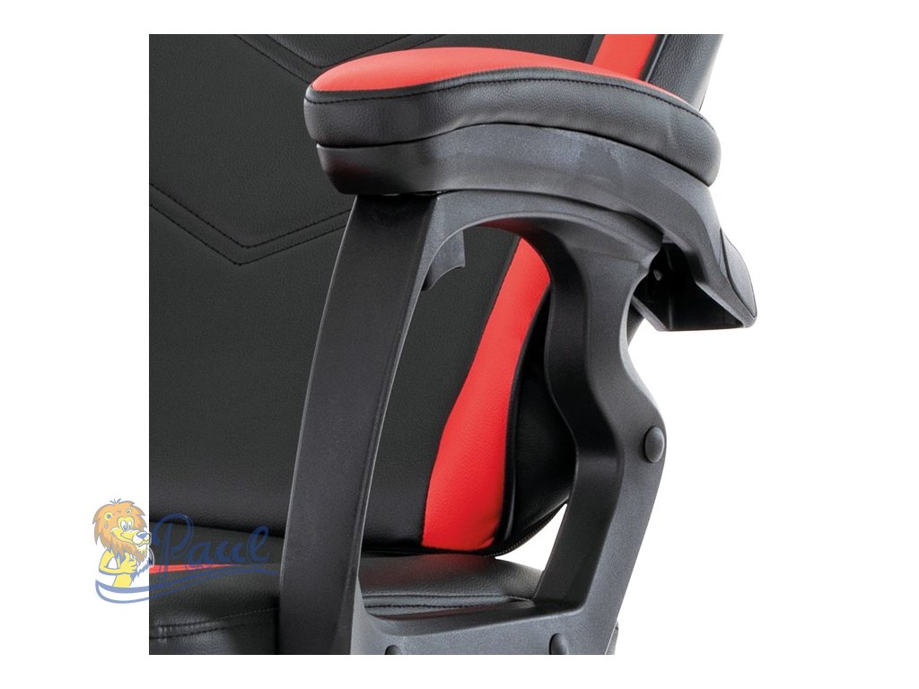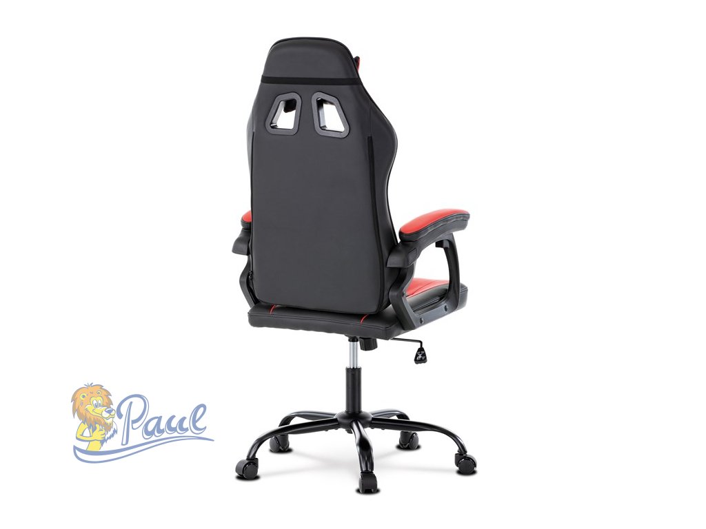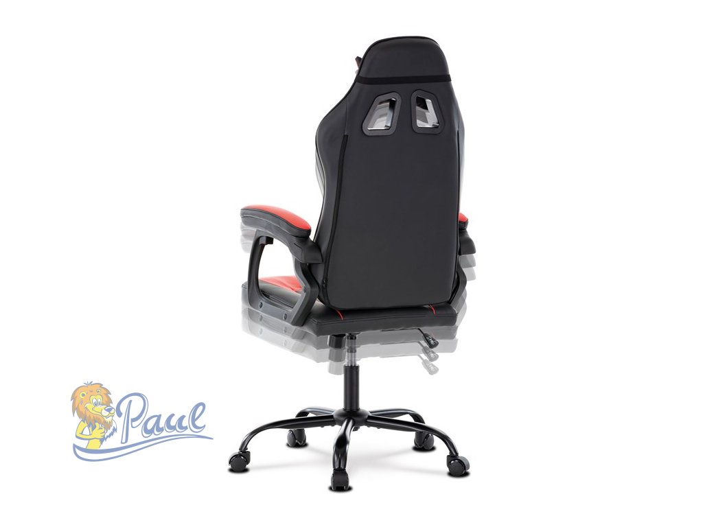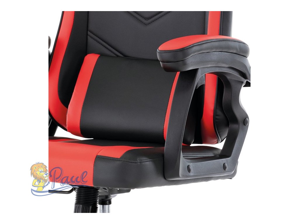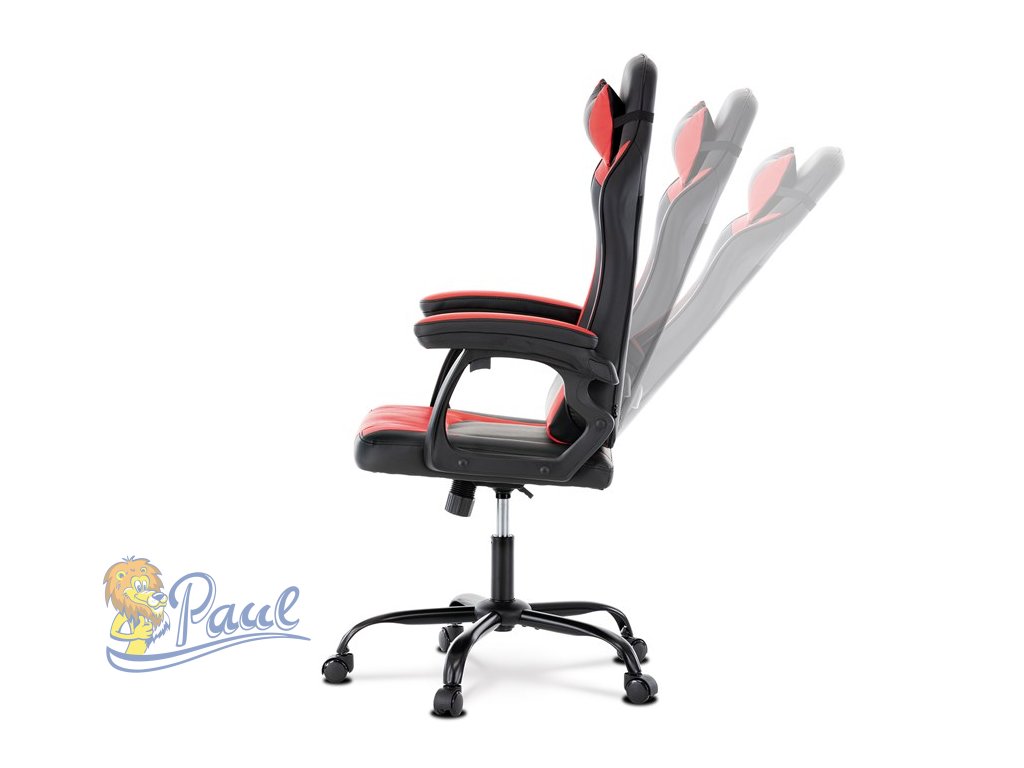 Herní křeslo, červená a černá ekokůže, houpací mechanika, opěrák 135°