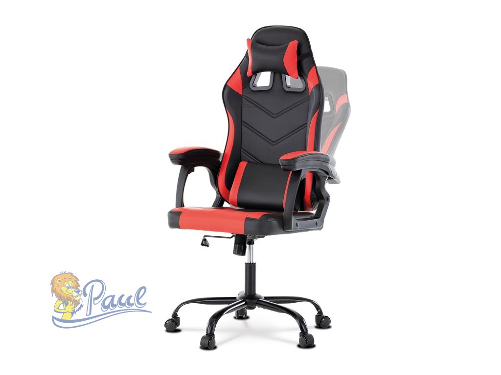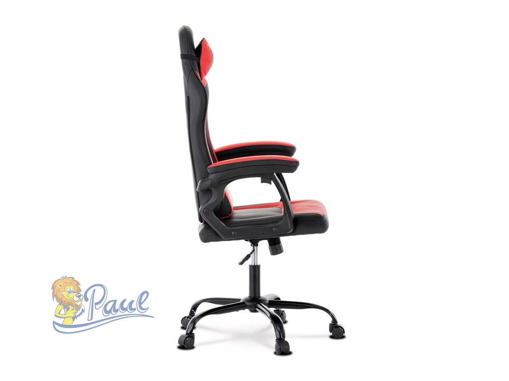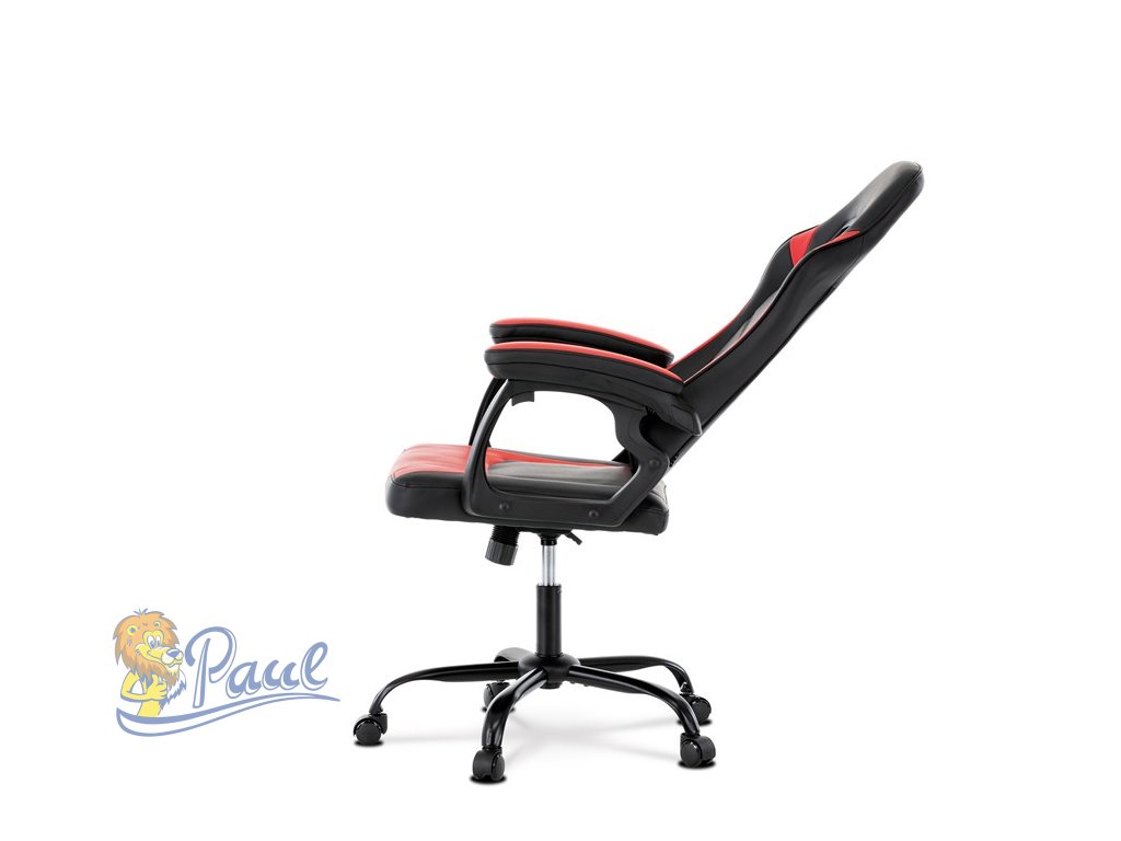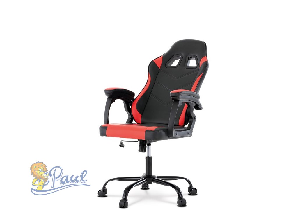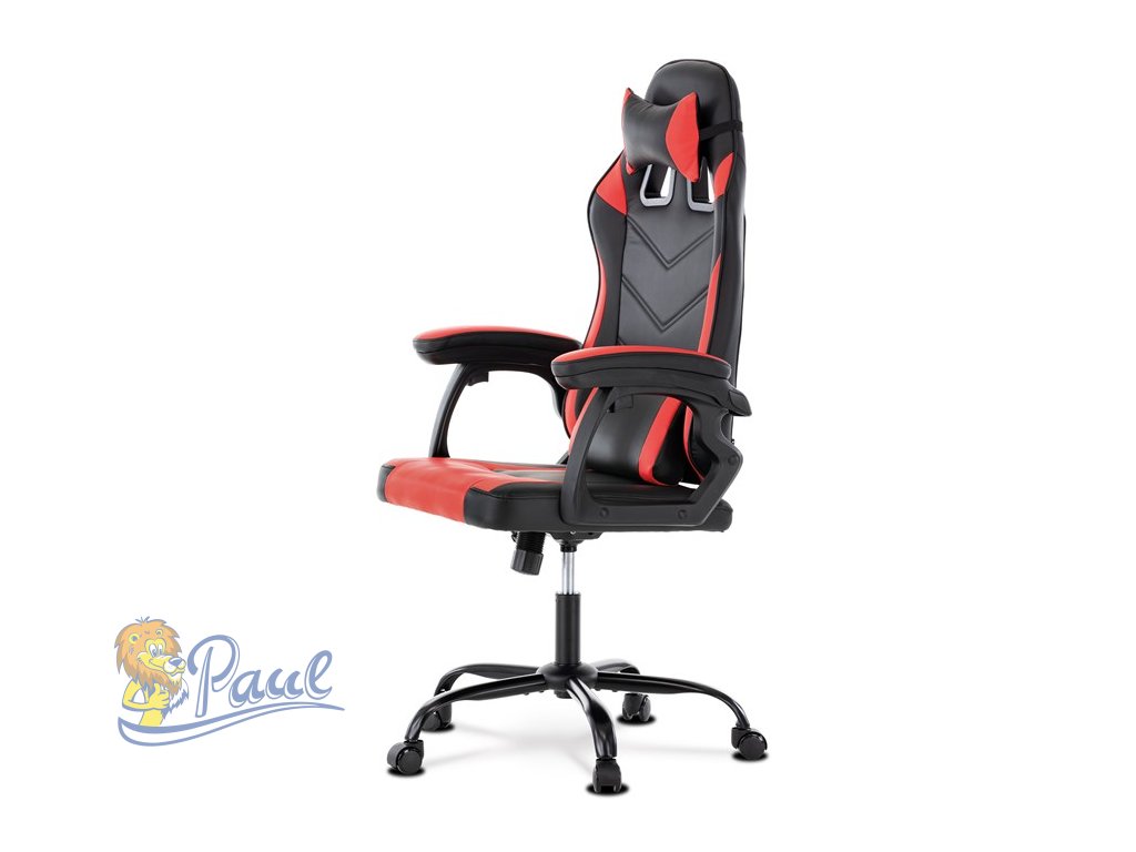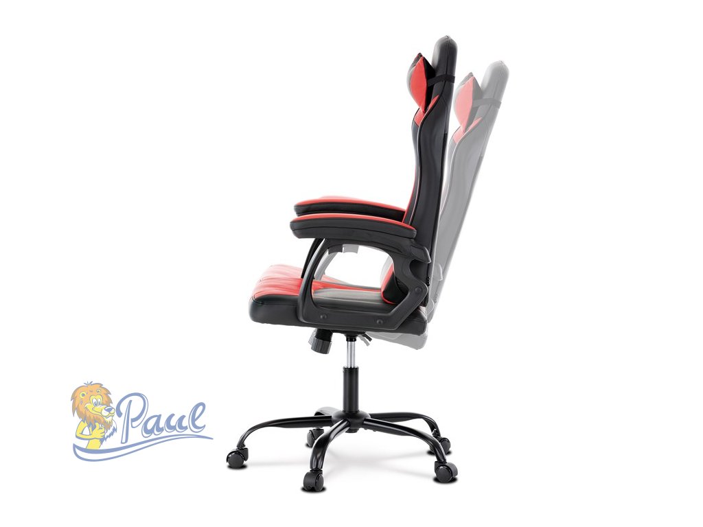 Herní křeslo, červená a černá ekokůže, houpací mechanika, opěrák 135°