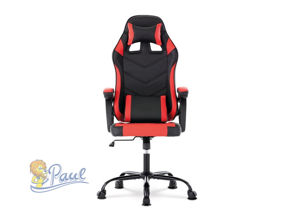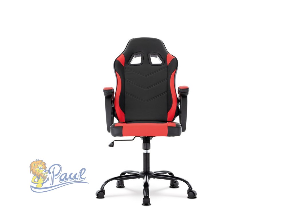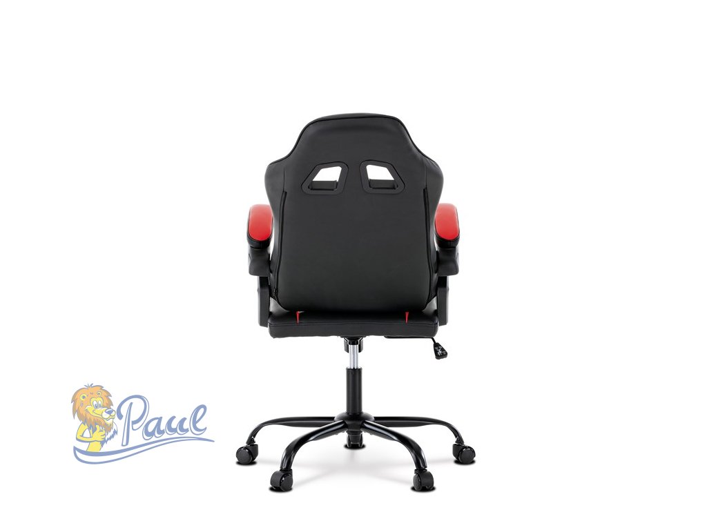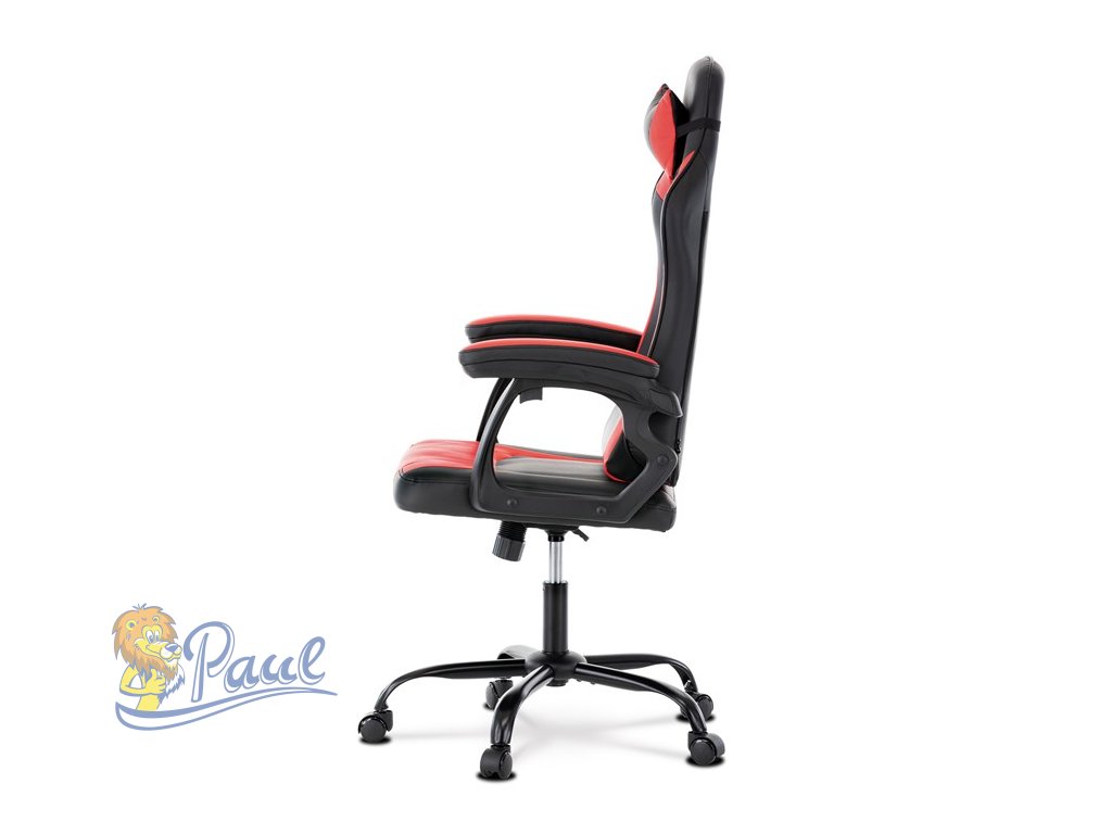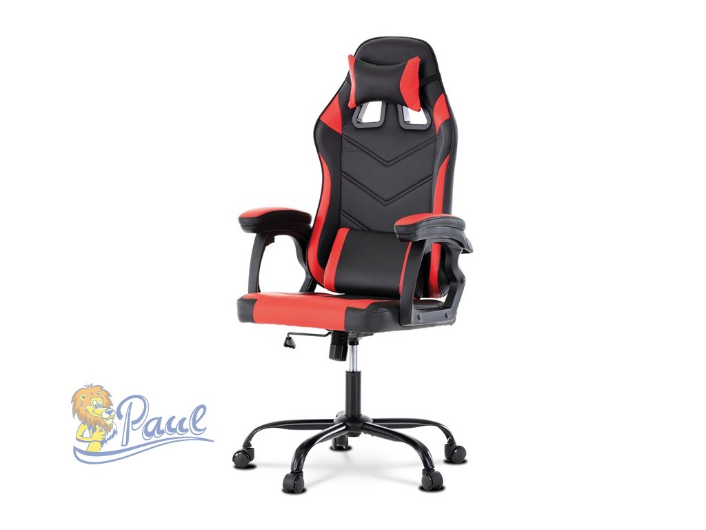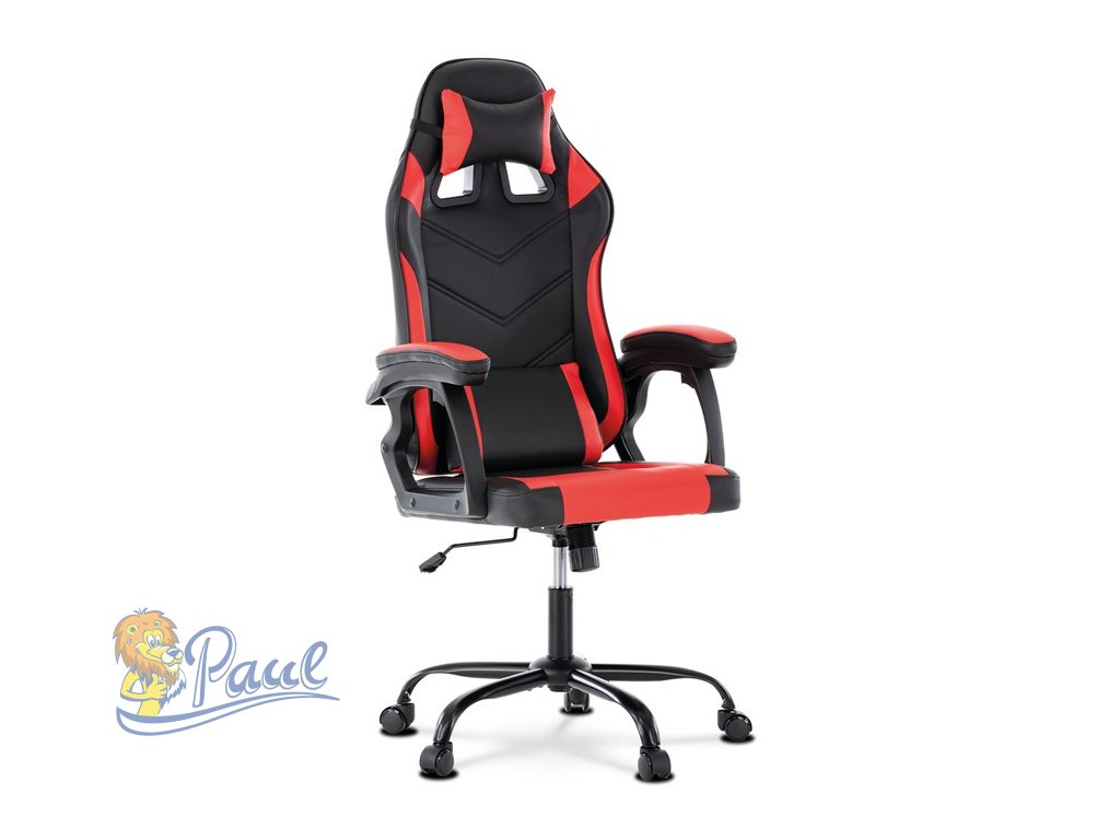 Herní křeslo, červená a černá ekokůže, houpací mechanika, opěrák 135°