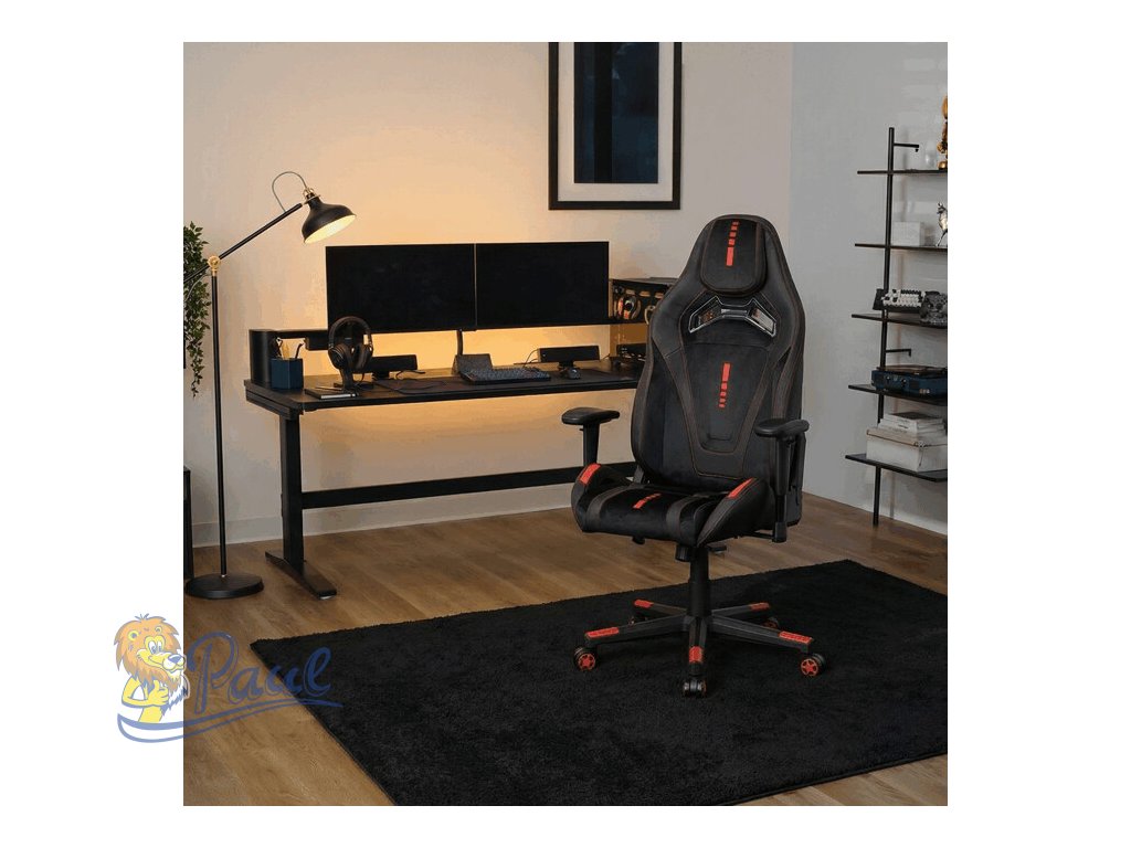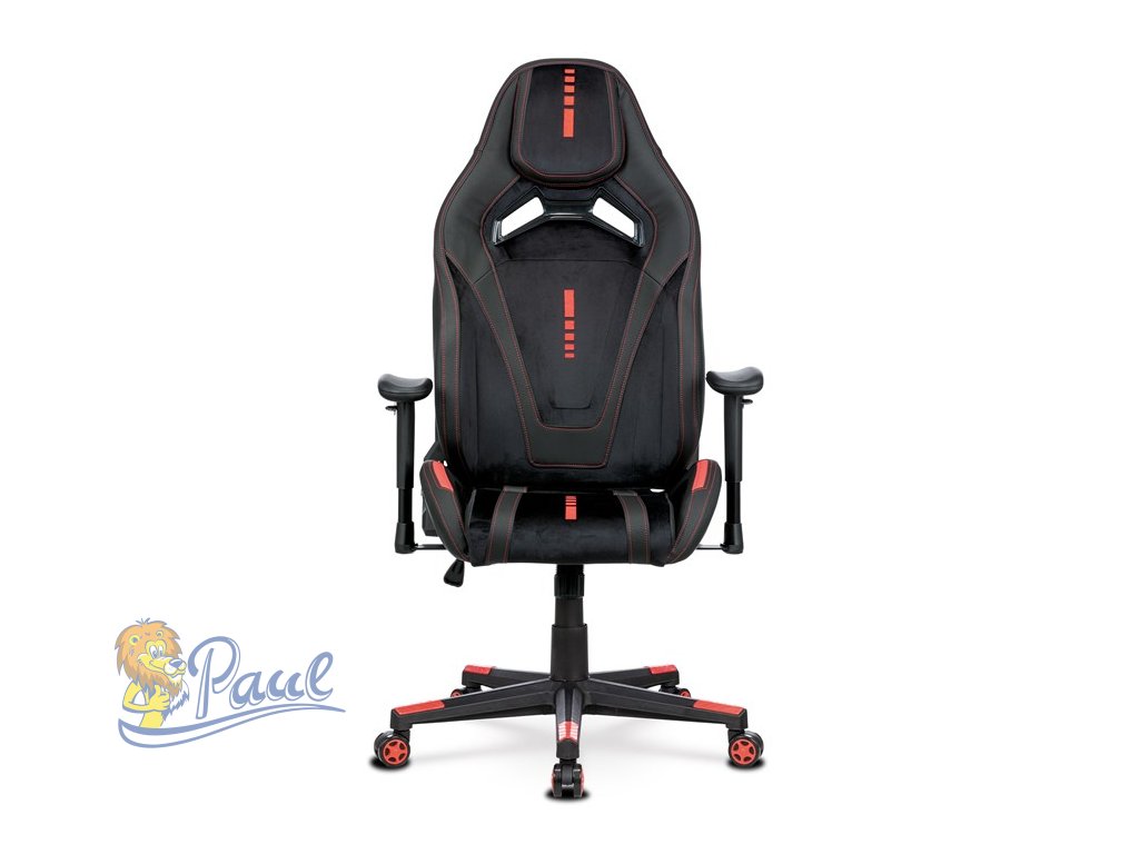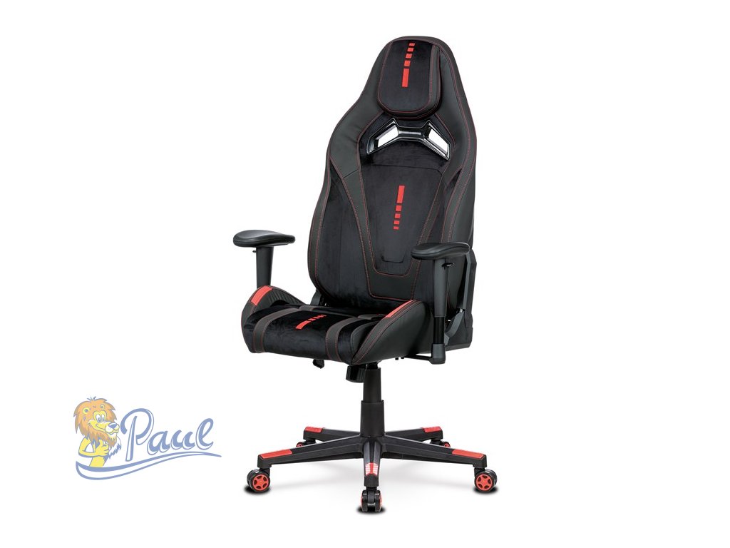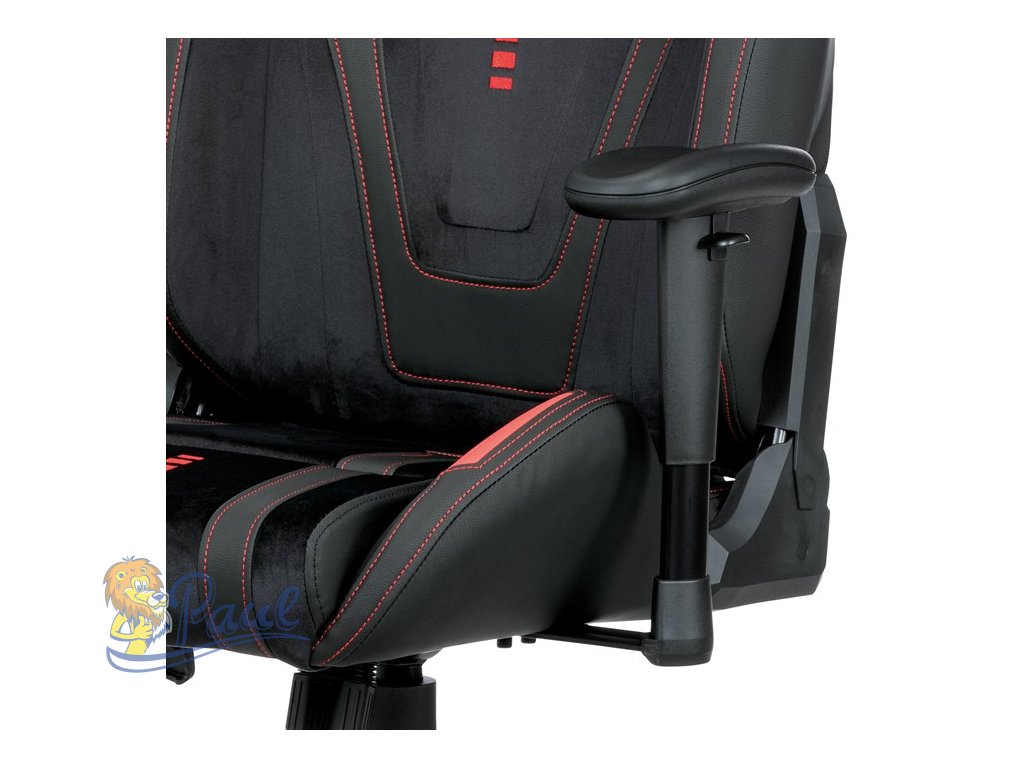 Herní křeslo E-racer, černá sametová látka a ekokůže, houpací mechanismus, opěrák