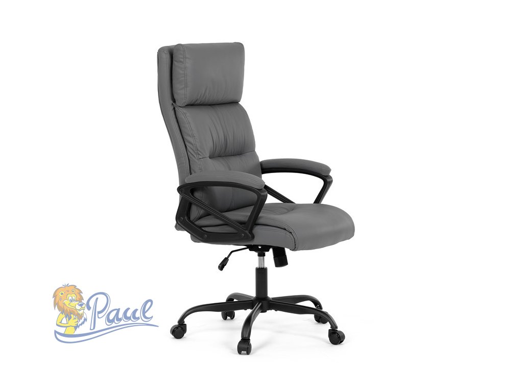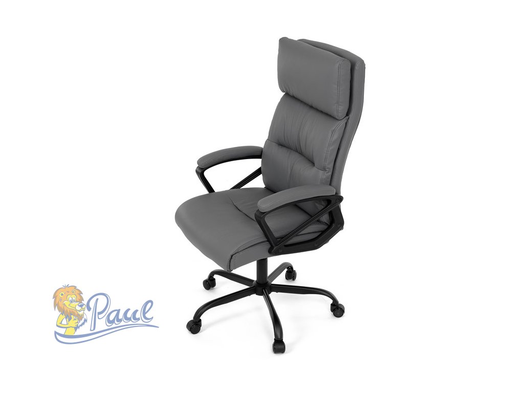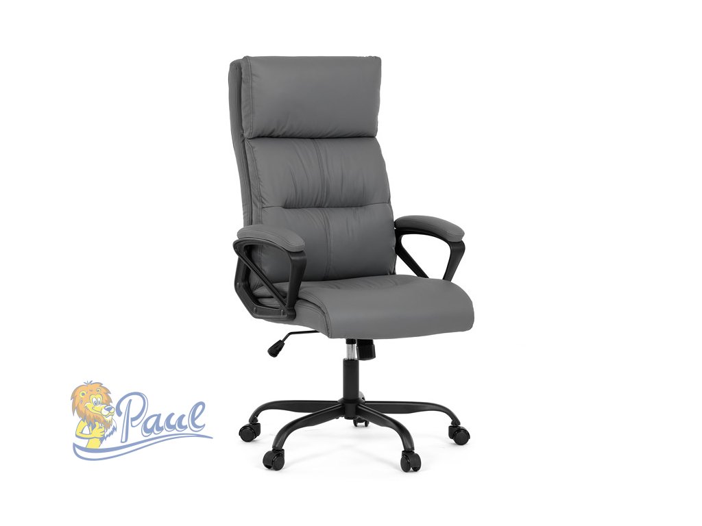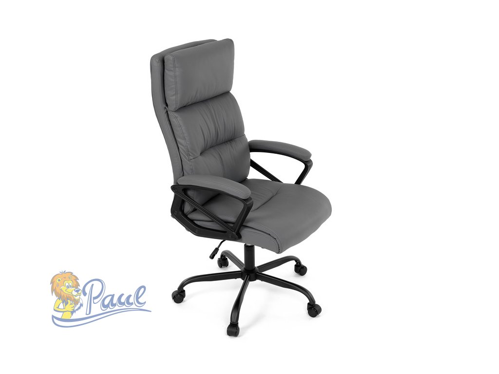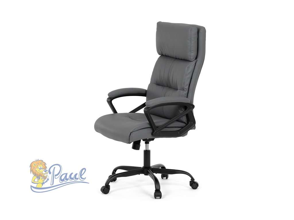 Kancelářské křeslo, šedá ekokůže, taštičkové pružiny, kovový kříž, kolečka na tvrdé podlahy