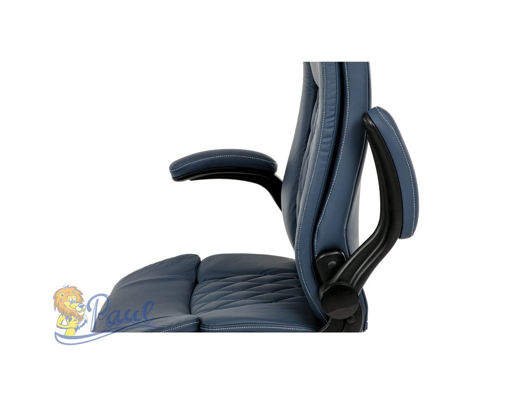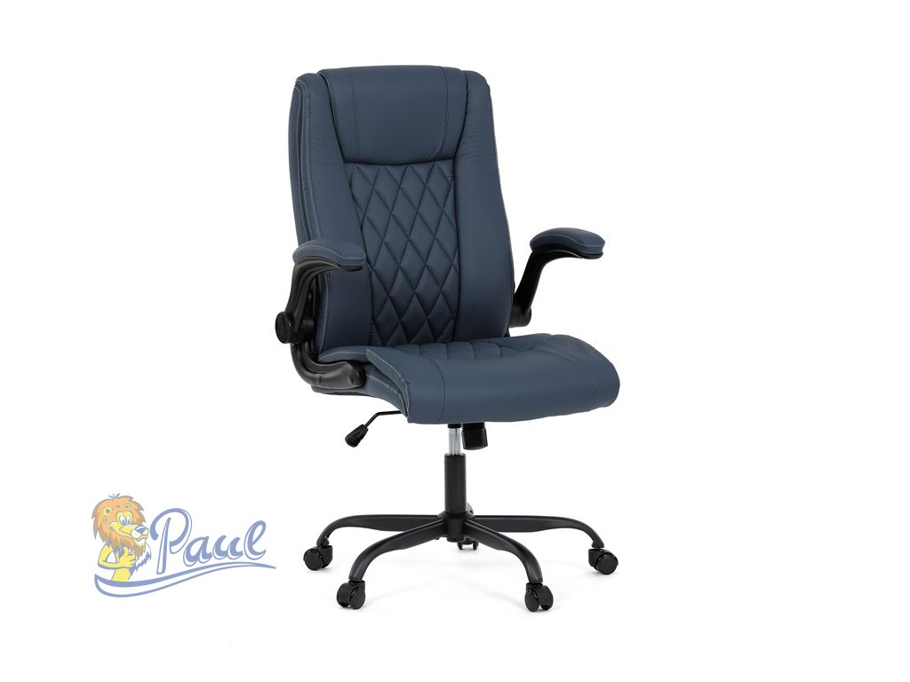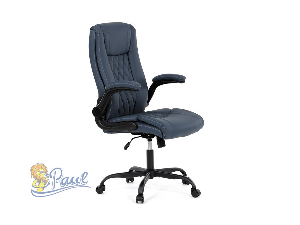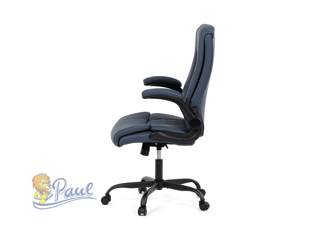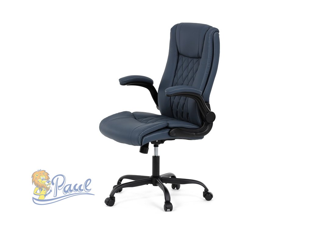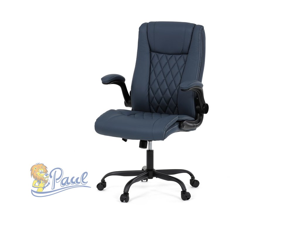 Křeslo kancelářské, tmavě modrá ekokůže, kovový kříž, kolečka na tvrdé podlahy