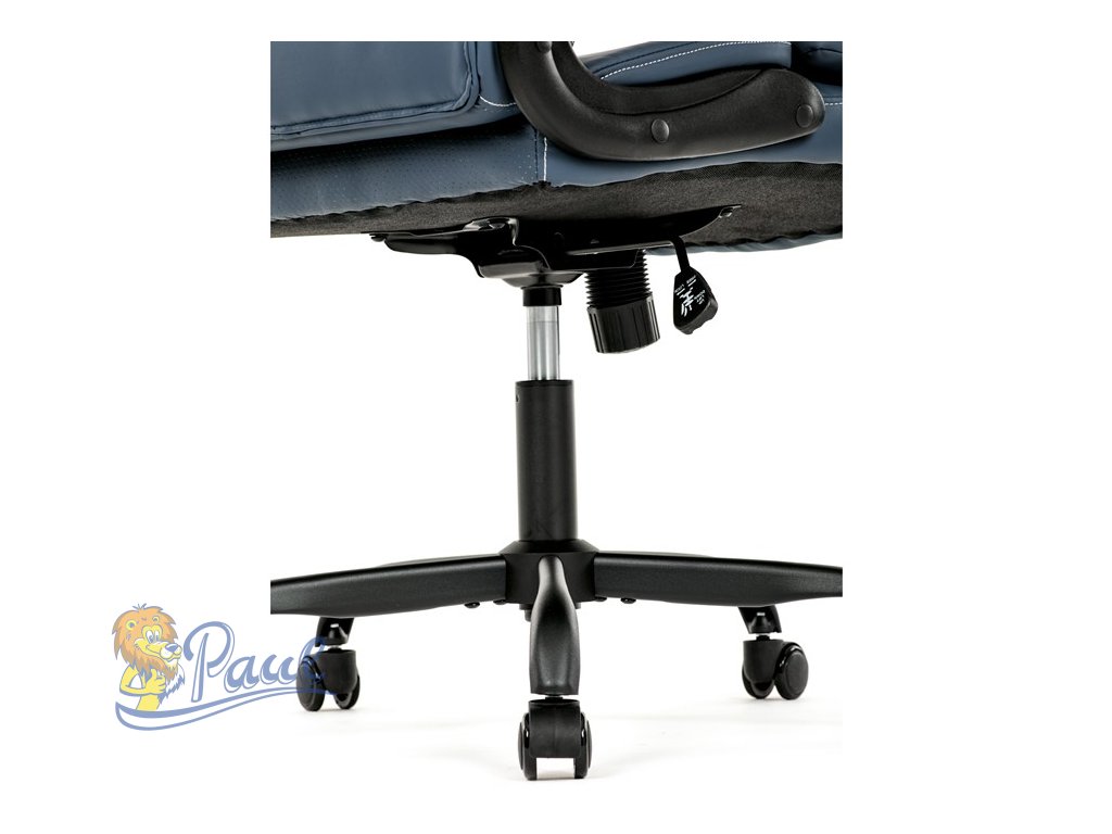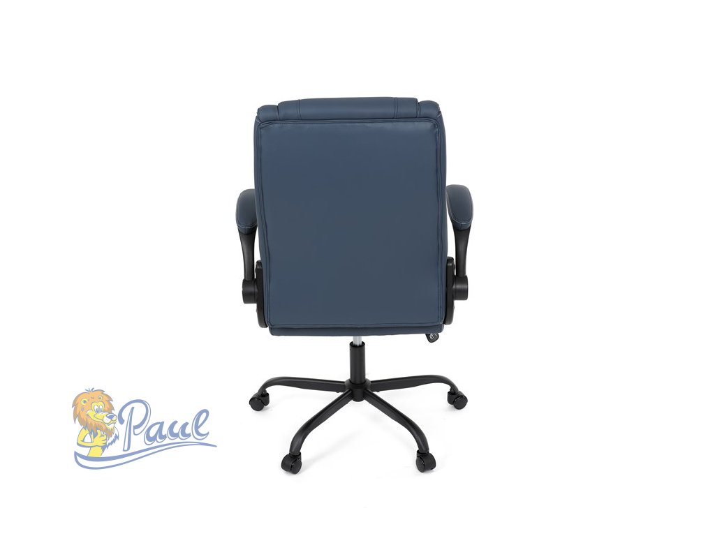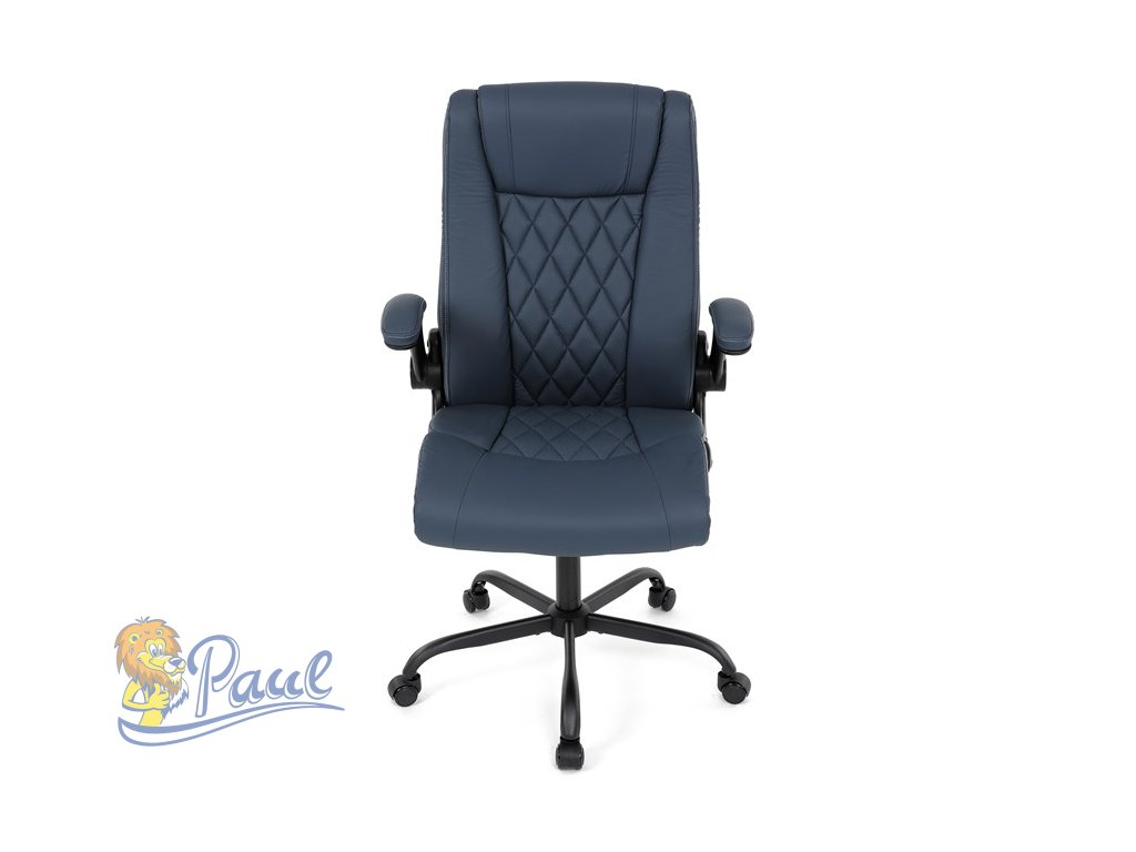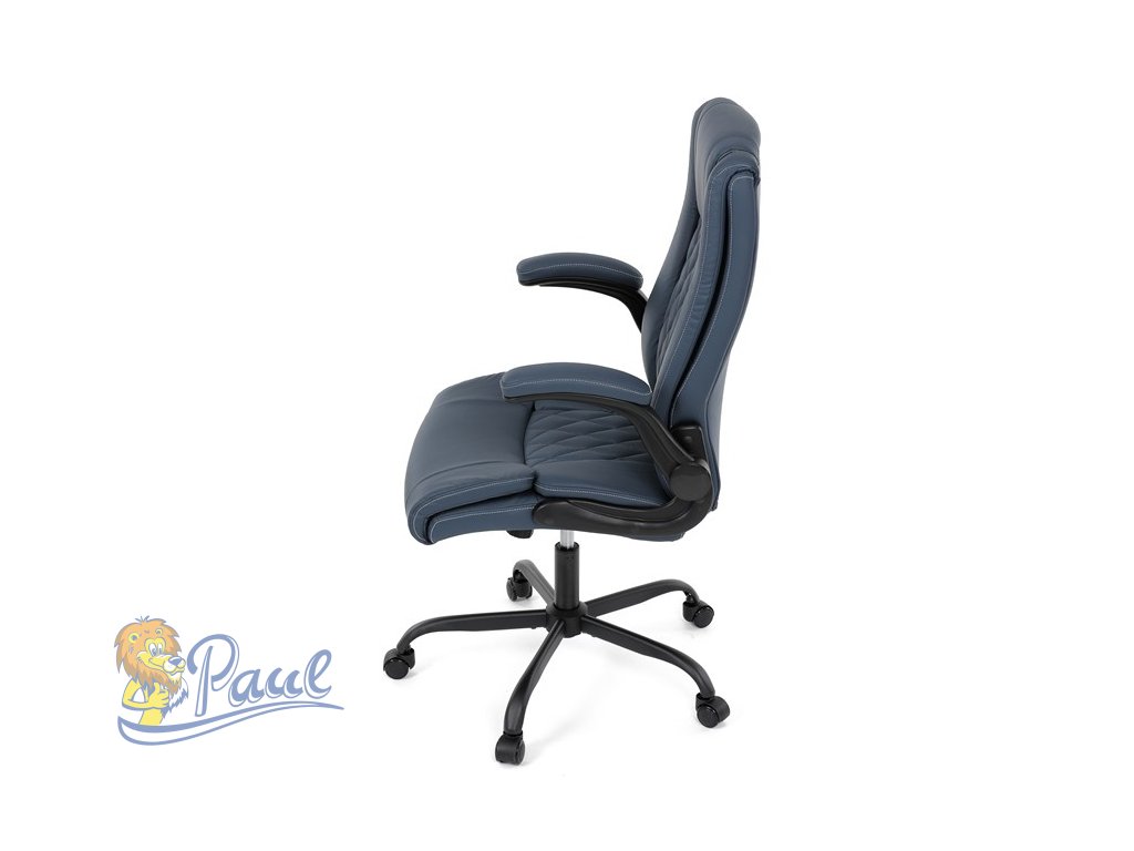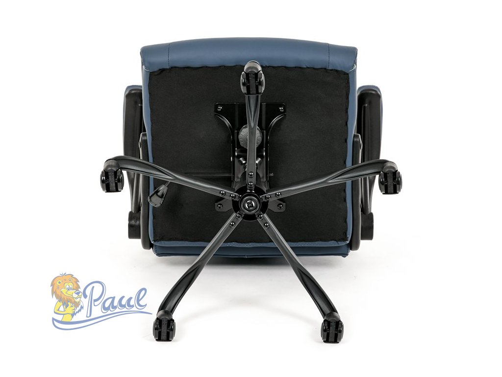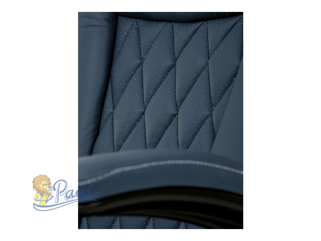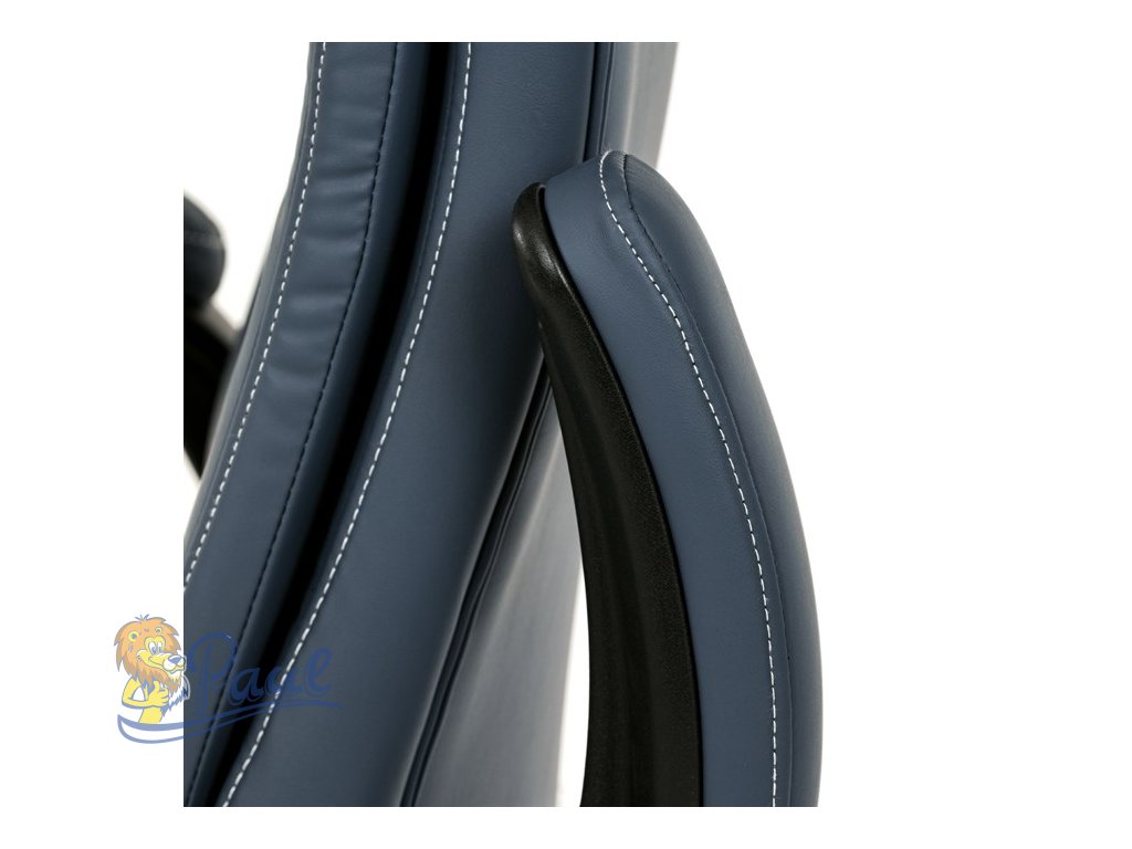Křeslo kancelářské, tmavě modrá ekokůže, kovový kříž, kolečka na tvrdé podlahy