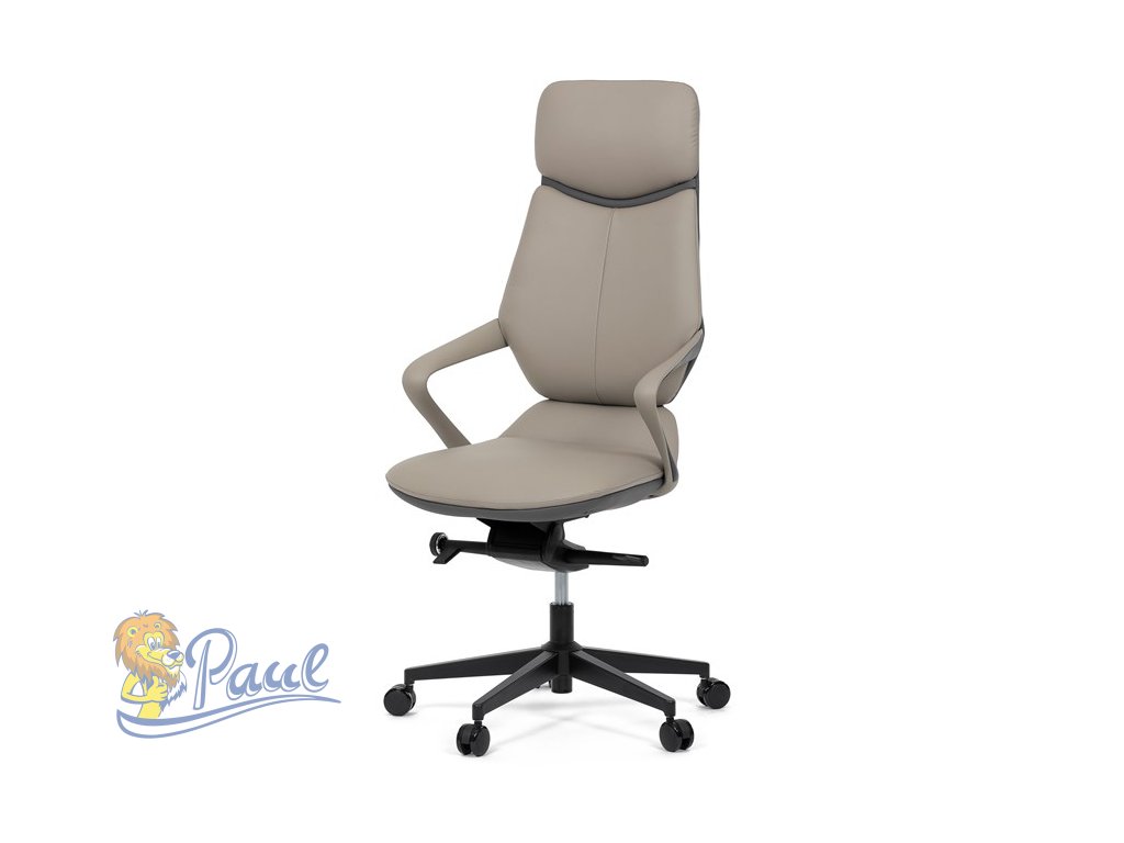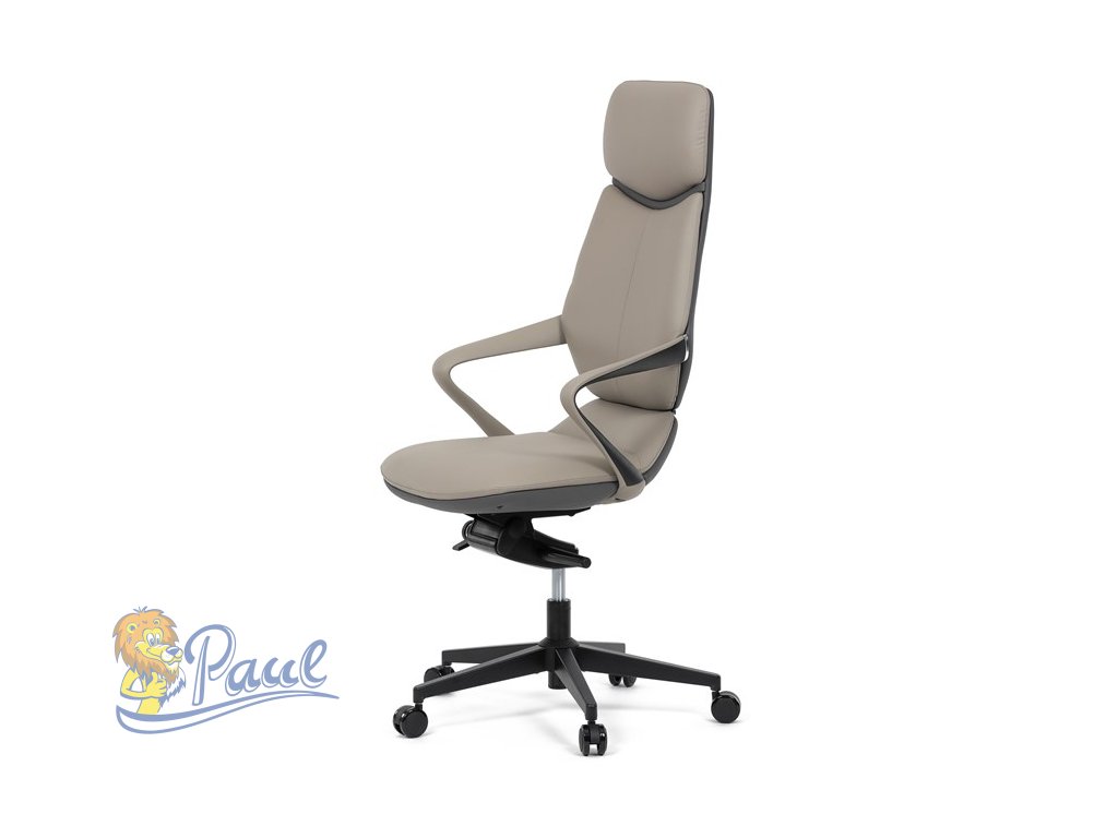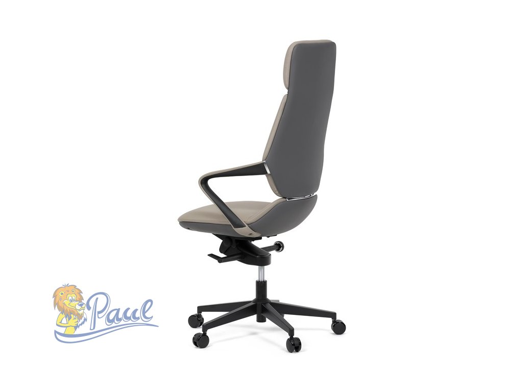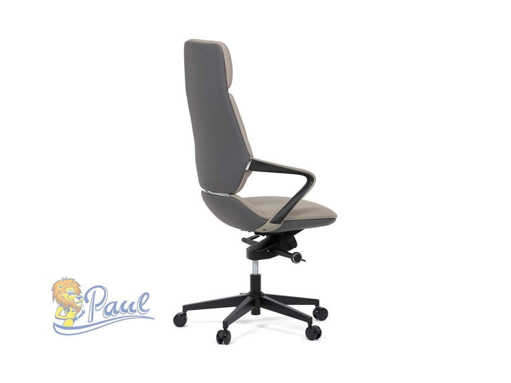 Kancelářské křeslo, šedá ekokůže, houpací mechanismus s aretací ve 4 polohách, kovový kříž, kolečka pro tvrdé povrchy