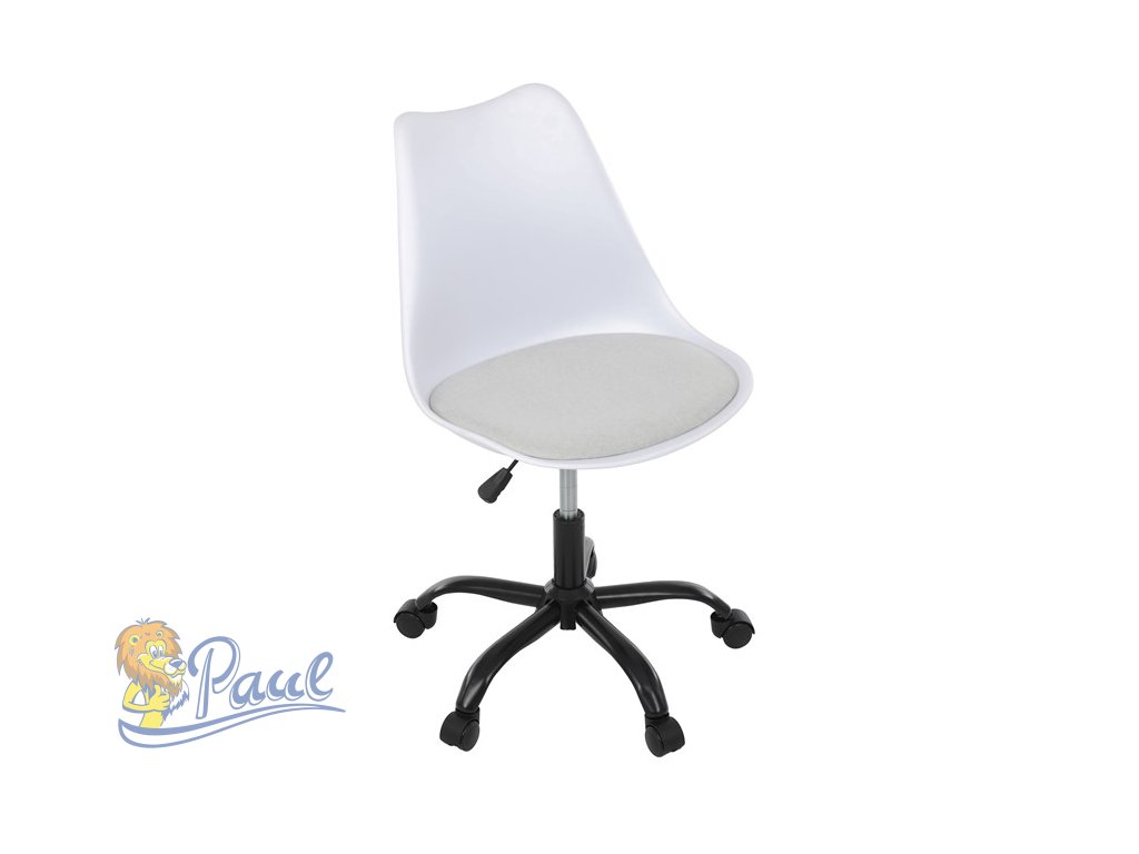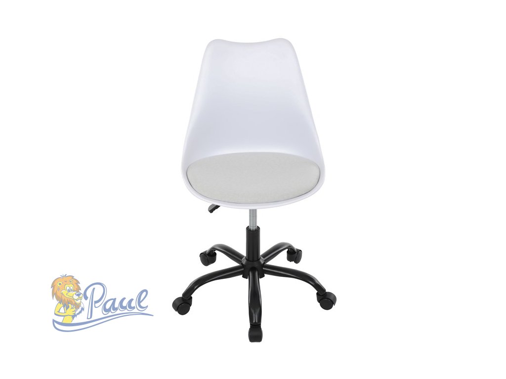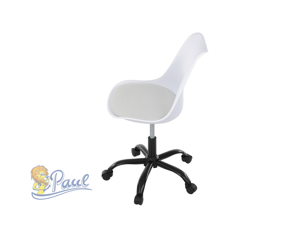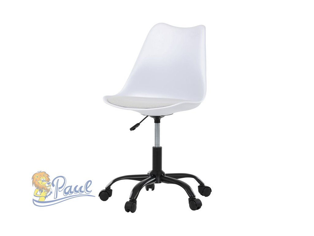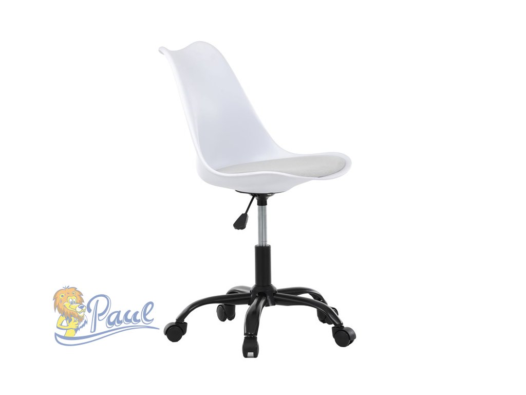 Židle kancelářská, bílá plastová skořepina, sedák bílá látka, kovový kříž