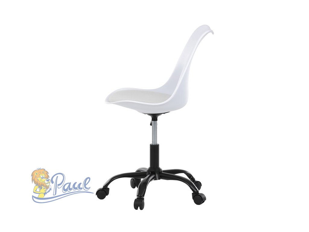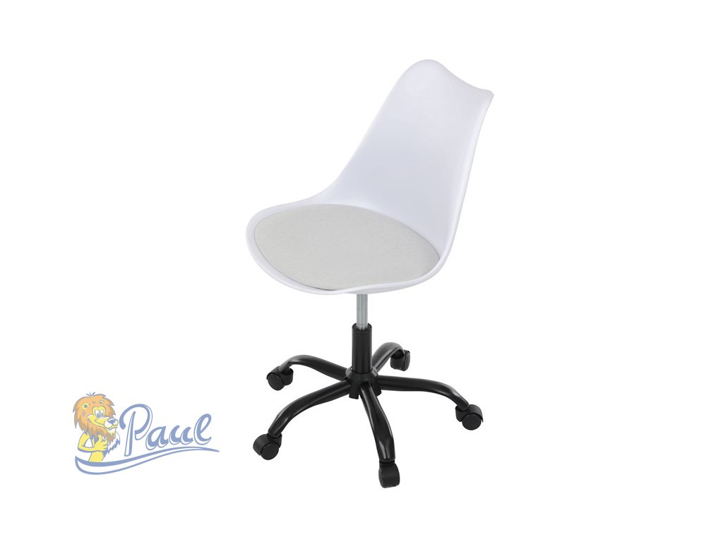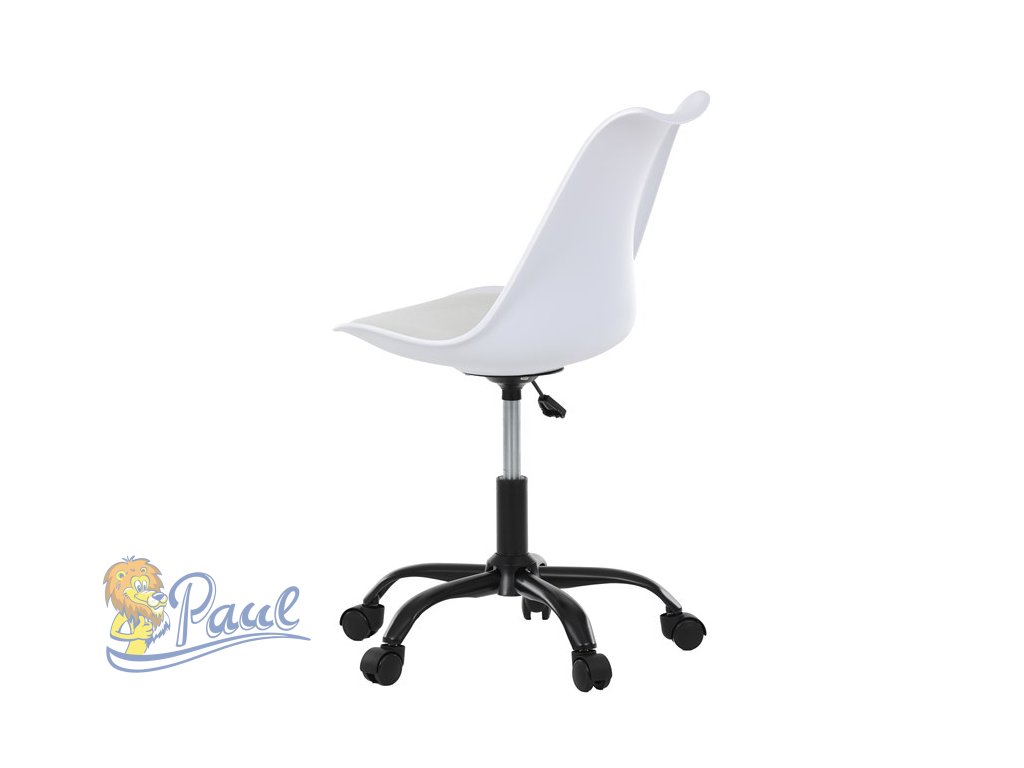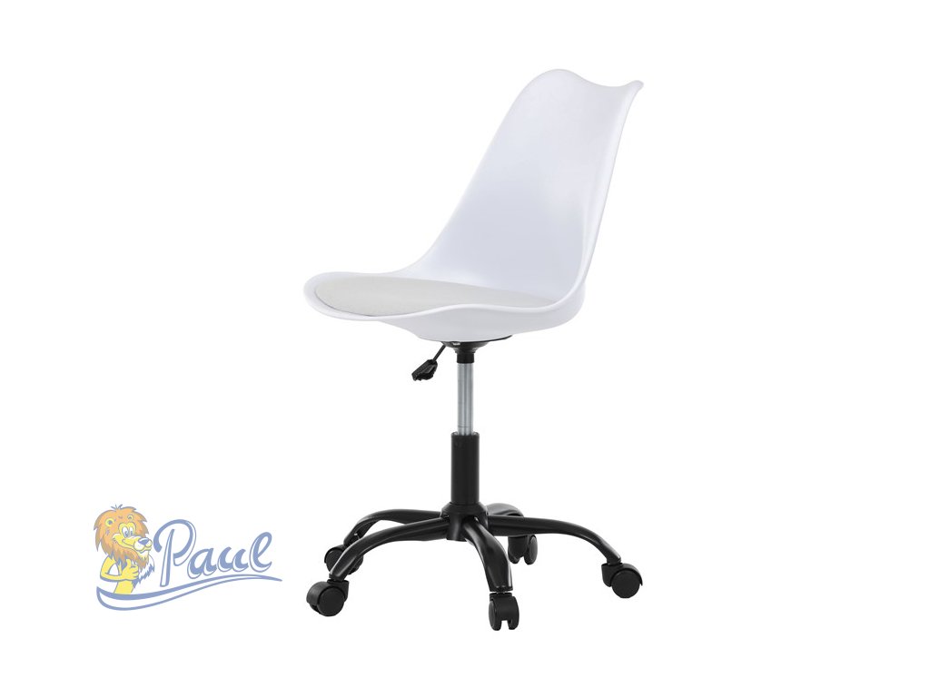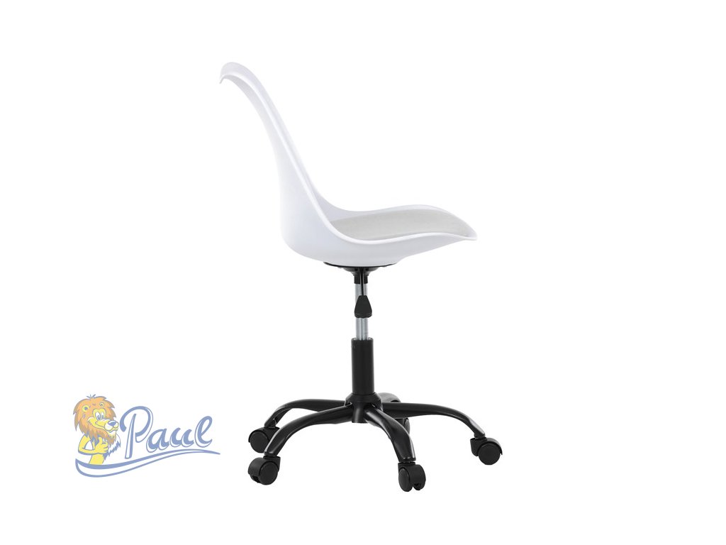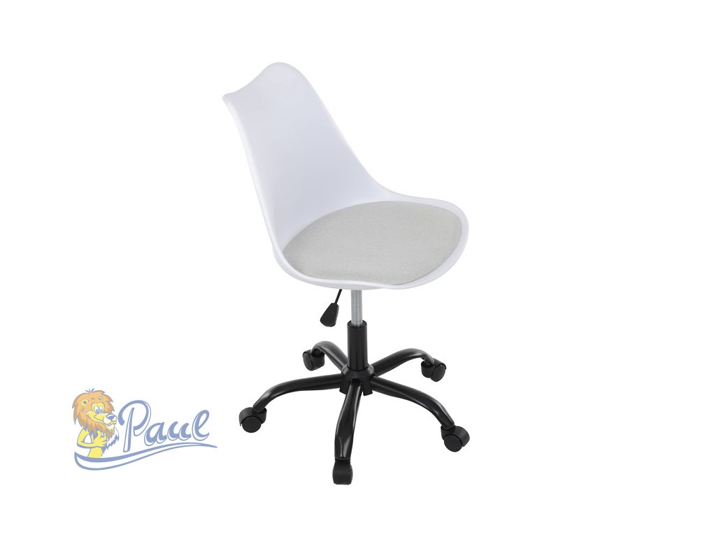Židle kancelářská, bílá plastová skořepina, sedák bílá látka, kovový kříž