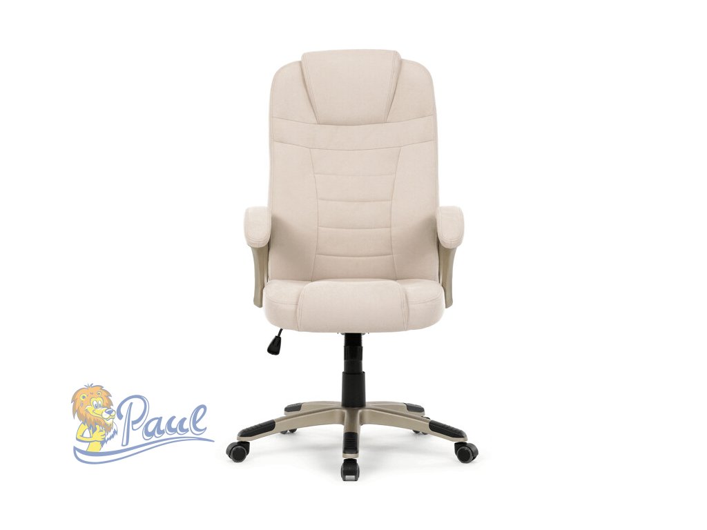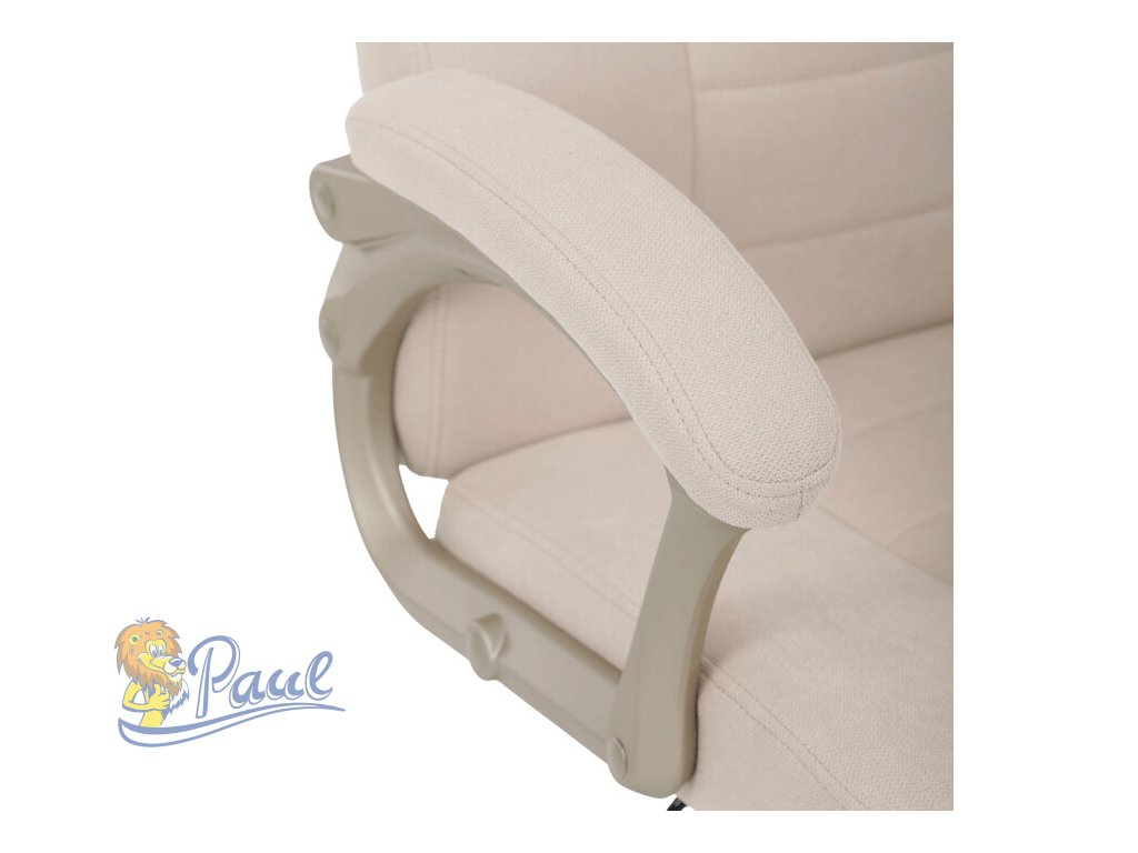 Kancelářské křeslo v béžovém provedení kombinuje komfort s praktickým designem vhodným pro dlouhodobé sezení. Čalounění z kvalitní látky zajišťuje příjemný povrch a snadnou údržbu, zatímco pevné područky s měkkým polstrováním podporují pohodlí paží. Vysoký opěrák je doplněn pevnou opěrkou hlavy s vyměkčenou vrchní částí, která přispívá k lepší podpoře krční páteře. Houpací mechanismus umožňuje nastavení polohy sedáku a výšková nastavitelnost zajišťuje ergonomické přizpůsobení uživateli. Stabilní základna z plastu v odstínu champagne je vybavena kolečky vhodnými pro tvrdé povrchy, což usnadňuje mobilitu a zároveň chrání podlahu.Doplňkové parametry