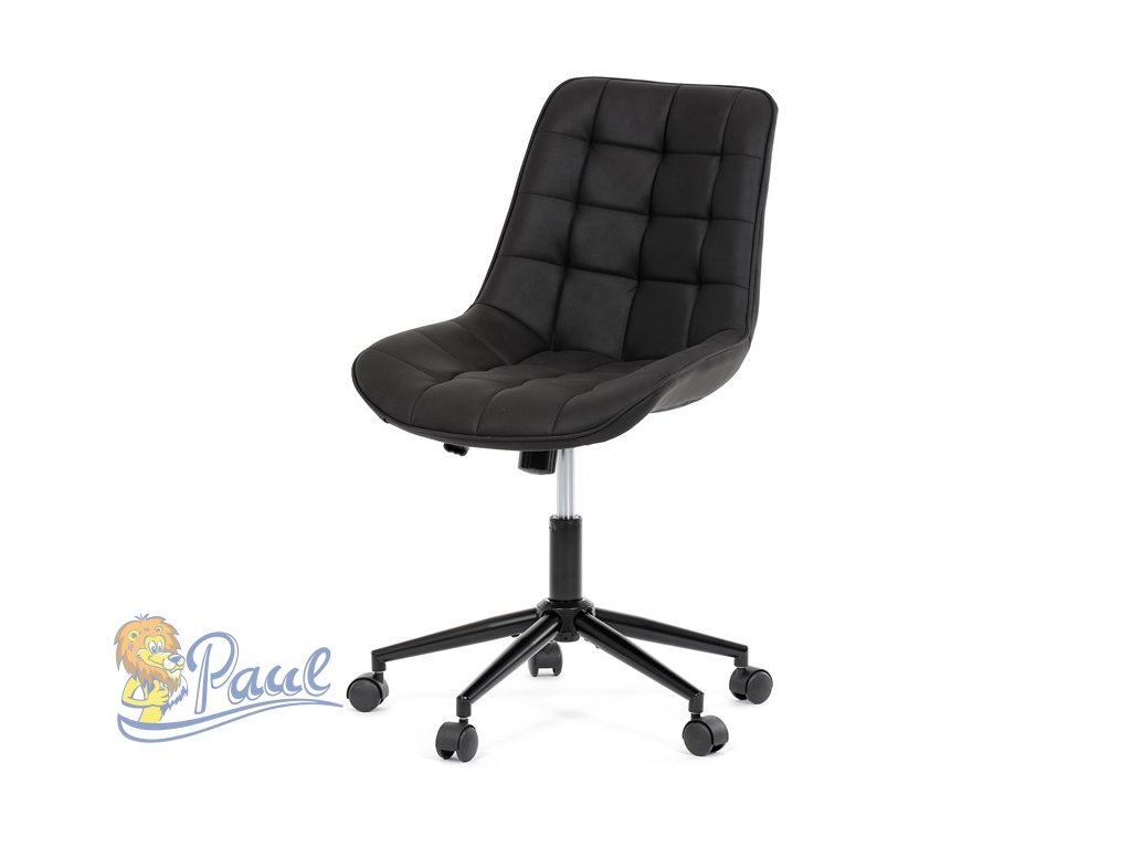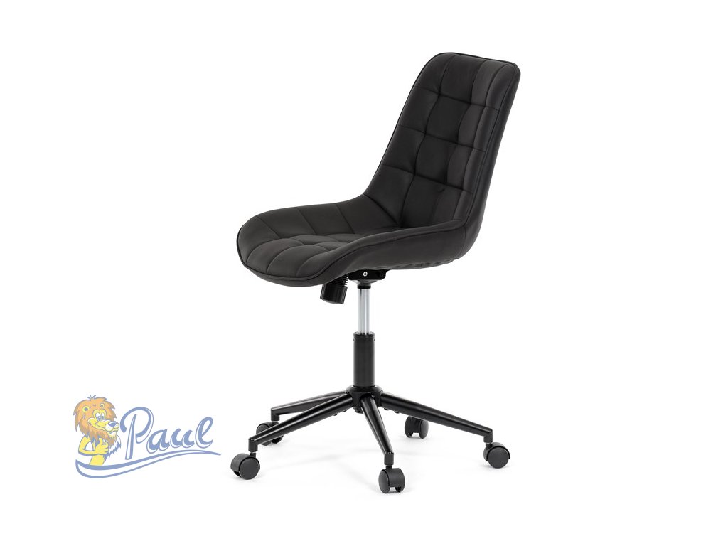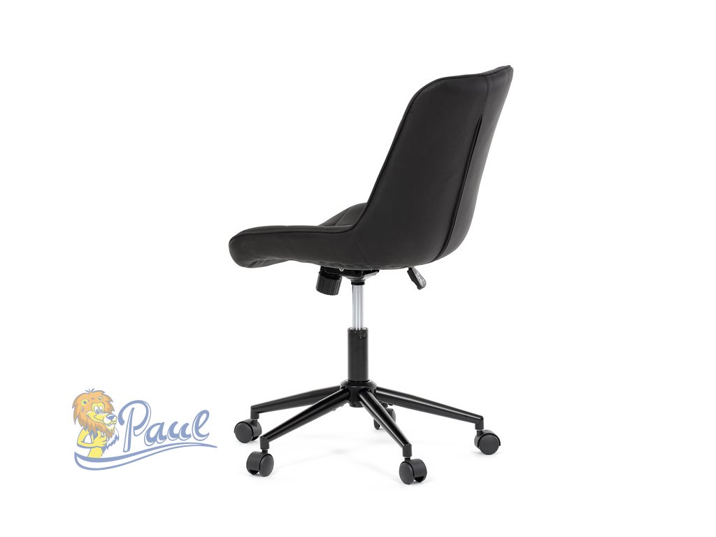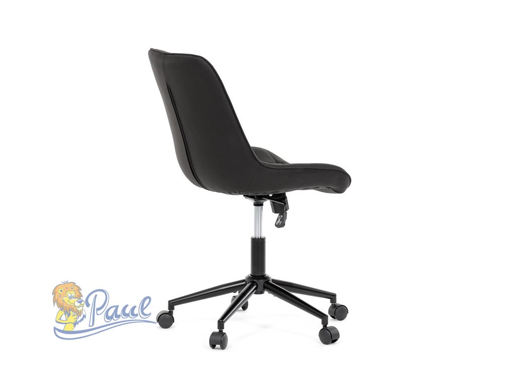 Kancelářská židle s černým potahem v dekoru broušené kůže nabízí moderní vzhled a komfortní sezení. Sedák i opěradlo jsou čalouněné kvalitní látkou, která je příjemná na dotek a snadno se udržuje. Pevný kovový kříž zajišťuje stabilitu a odolnost, zatímco houpací mechanika umožňuje plynulé naklápění pro uvolnění během práce. Výškově nastavitelná sedací plocha umožňuje přizpůsobení výšky podle individuálních potřeb uživatele. Absence područek a bederní opěrky podtrhuje minimalistický design vhodný do různých pracovních prostor.Doplňkové parametry