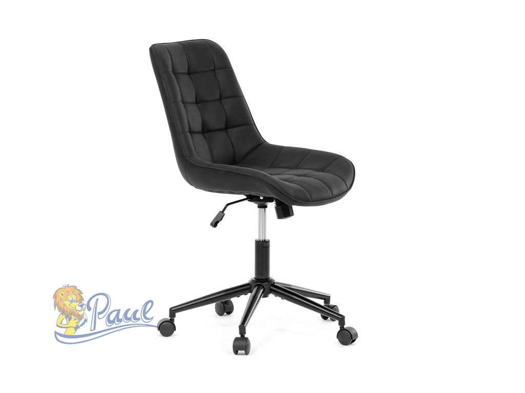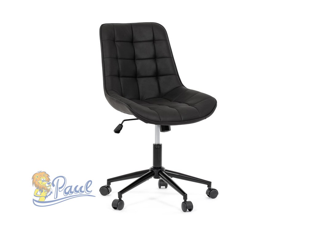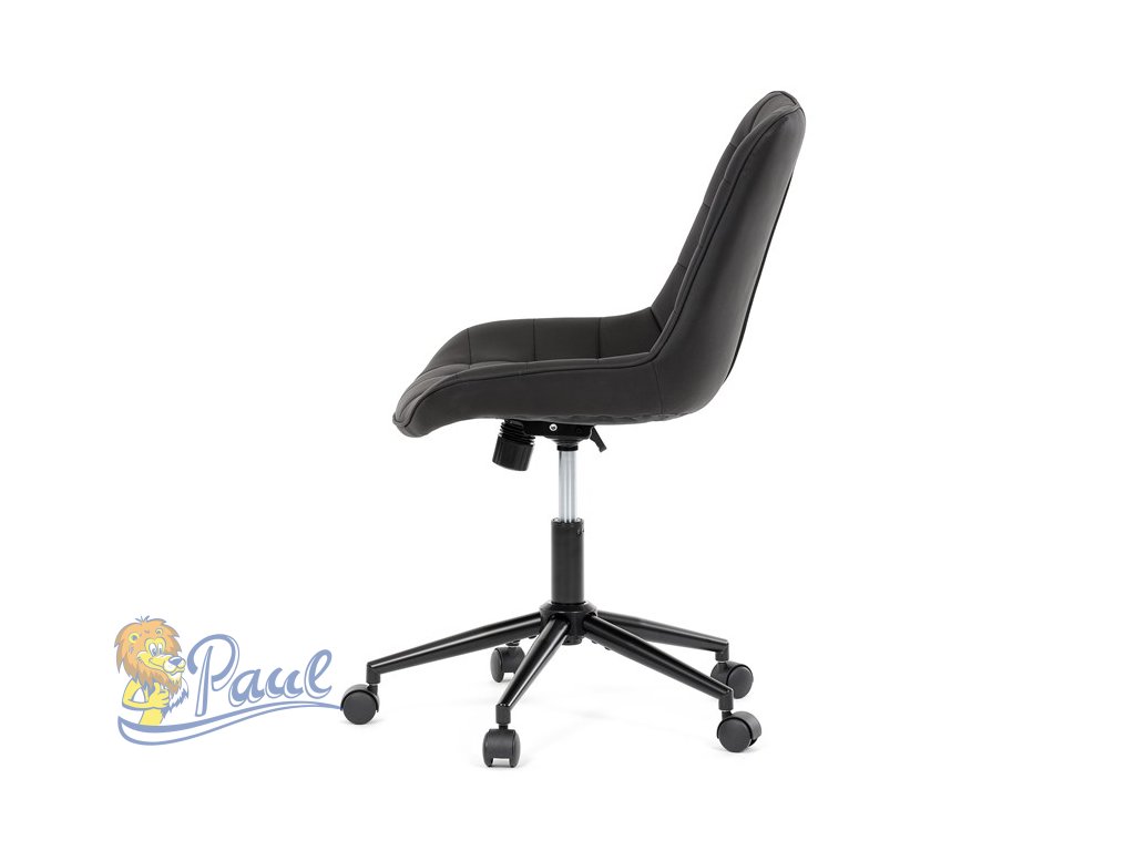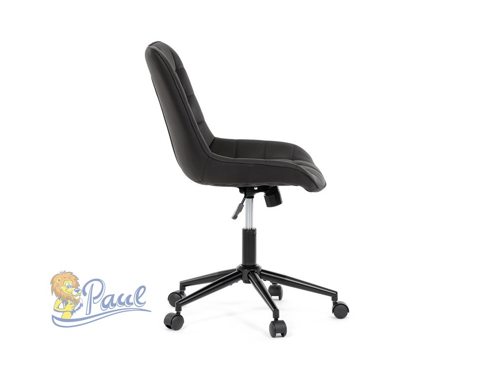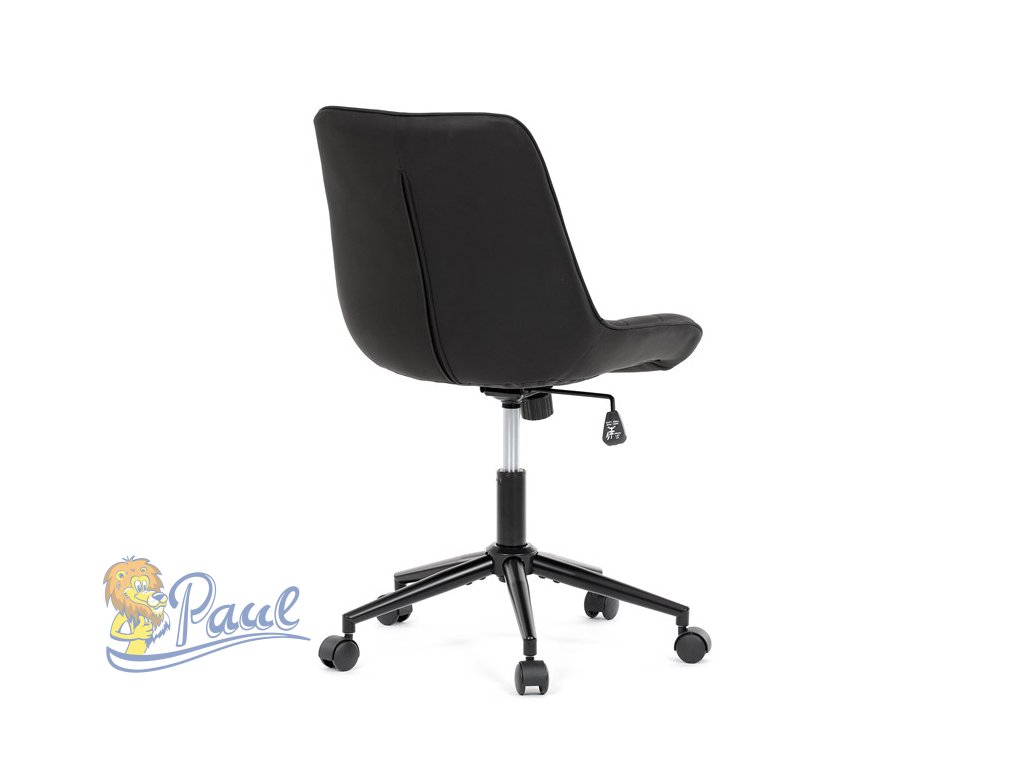 Kancelářská židle s černým potahem v dekoru broušené kůže nabízí moderní vzhled a komfortní sezení. Sedák i opěradlo jsou čalouněné kvalitní látkou, která je příjemná na dotek a snadno se udržuje. Pevný kovový kříž zajišťuje stabilitu a odolnost, zatímco houpací mechanika umožňuje plynulé naklápění pro uvolnění během práce. Výškově nastavitelná sedací plocha umožňuje přizpůsobení výšky podle individuálních potřeb uživatele. Absence područek a bederní opěrky podtrhuje minimalistický design vhodný do různých pracovních prostor.Doplňkové parametry