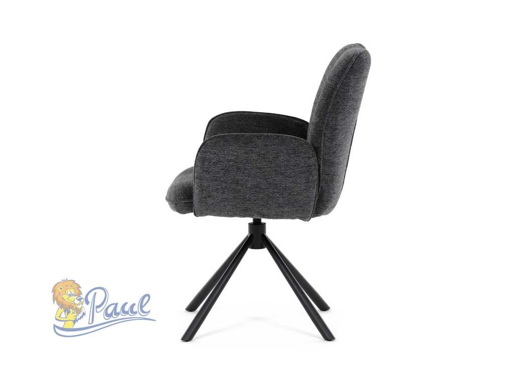 Elegantní jídelní židle značky Autronic v industriálním stylu přináší maximální pohodlí a moderní design. Čalounění z hladké látky v antracitovém odstínu je nejen stylové, ale i příjemné na dotek. Stabilní kovová podnož v černé barvě dodává židli pevnost a odolnost. Díky otočnému 360° mechanismu nabízí vysokou flexibilitu a komfort při sezení. Pohodlné područky a ergonomicky tvarovaný sedák z PU pěny zajišťují optimální oporu těla. Perfektní volba pro stylové a funkční jídelní prostory.Doplňkové parametry