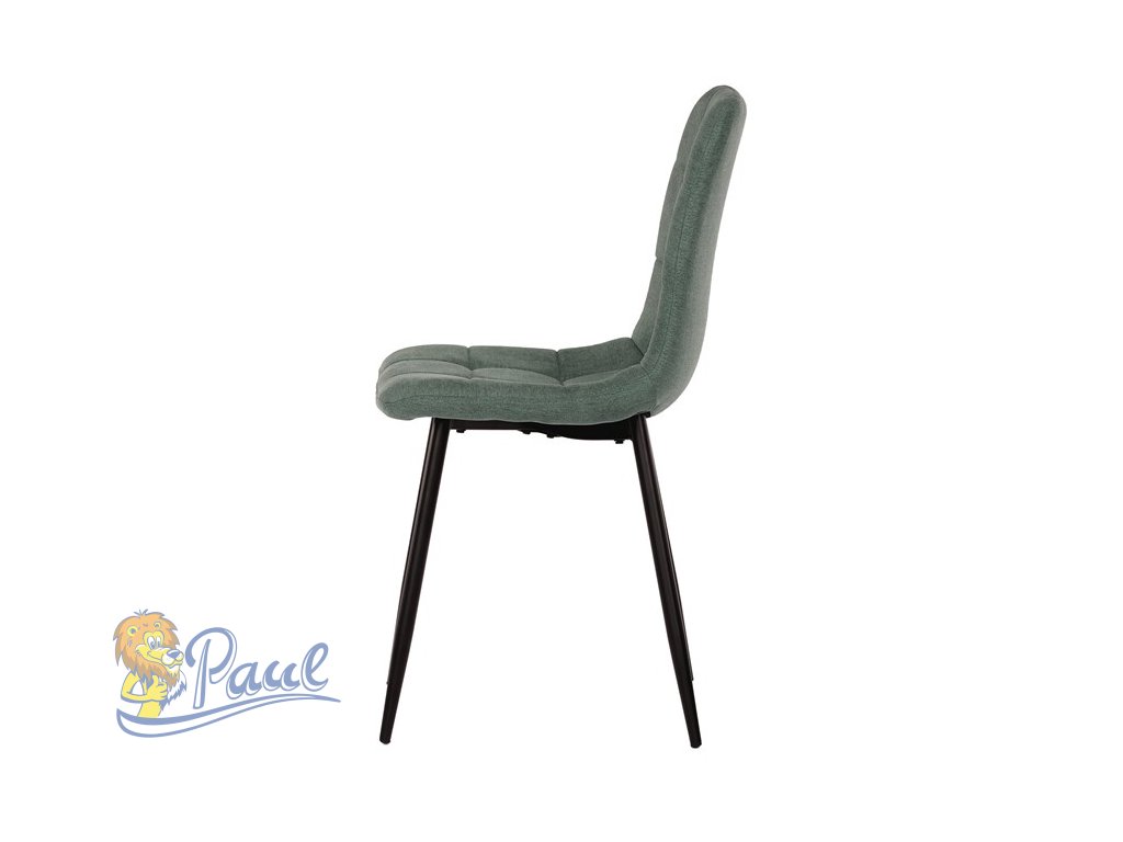 Jídelní židle v industriálním stylu. Potah je z hladké látky v zelené barvě. Výrazné je čtvercové prošití čelních ploch sedáku i opěradla. Polstrování je z kvalitní PU pěny. Stabilitu židle zajišťují čtyři kónické kovové nohy s kvalitním práškovým nástřikem v černé matné barvě. Ukončené jsou černými plastovými kluzáky, zabraňujícími poškození tvrdých povrchů podlah. Nohy jsou kruhového průřezu o nejvyšším průměru 3 cm. Tento minimalistický design jídelních židlí je velmi oblíben pro svoji nadčasovost i pohodlí, které poskytuje. Můžete ji bez obav použít k široké škále stolů v různých materiálech i provedeních.Doplňkové parametry