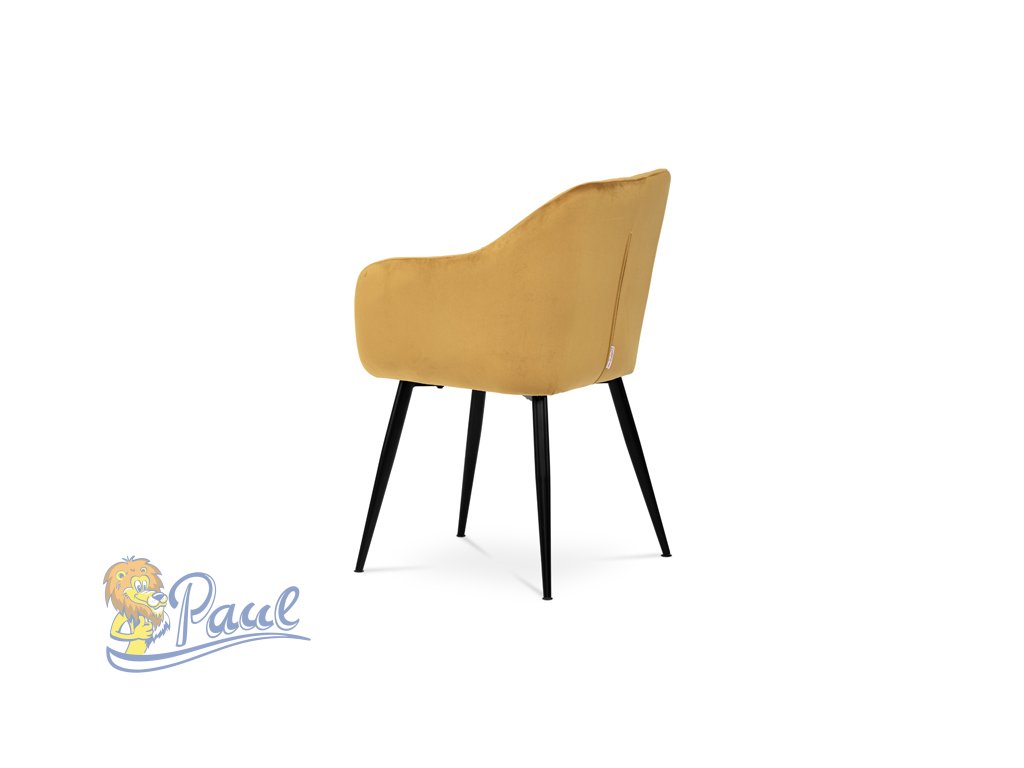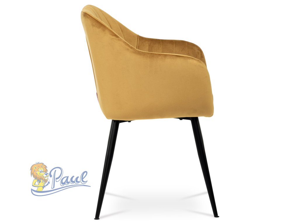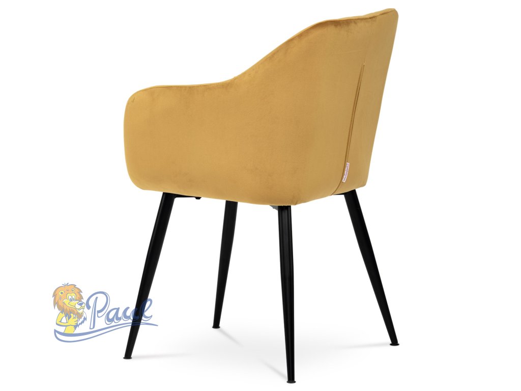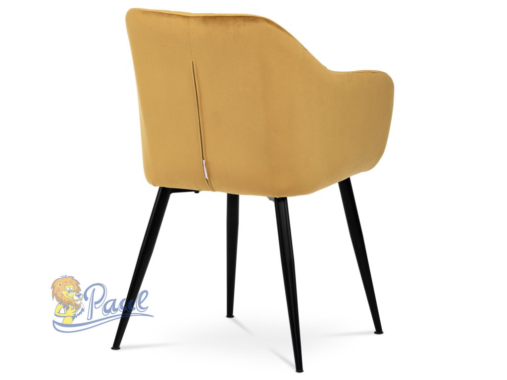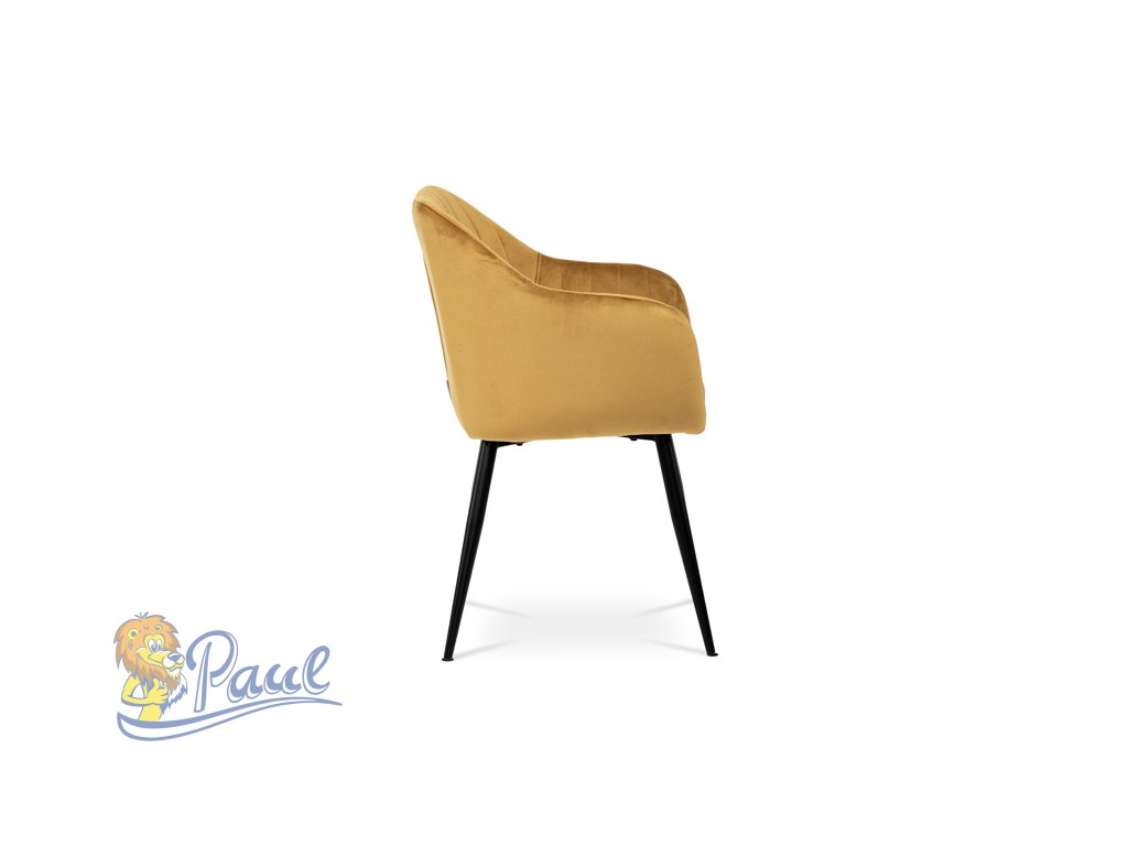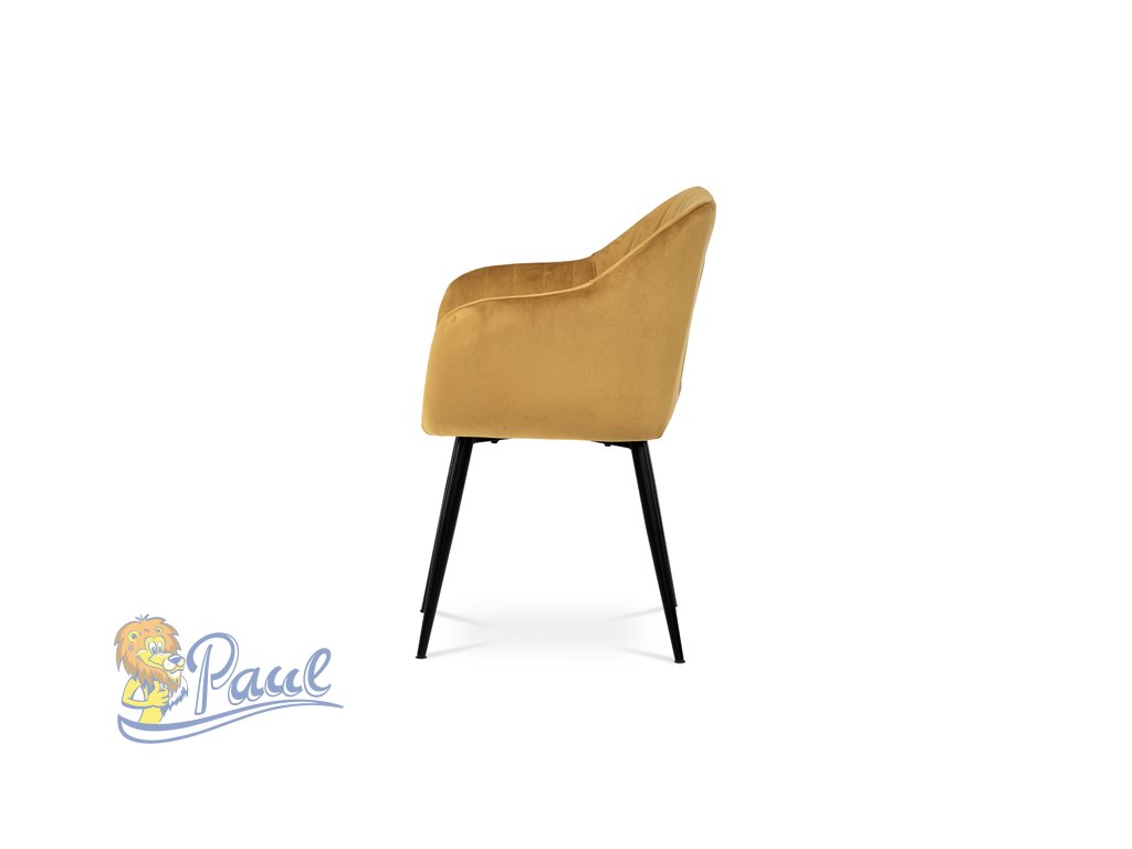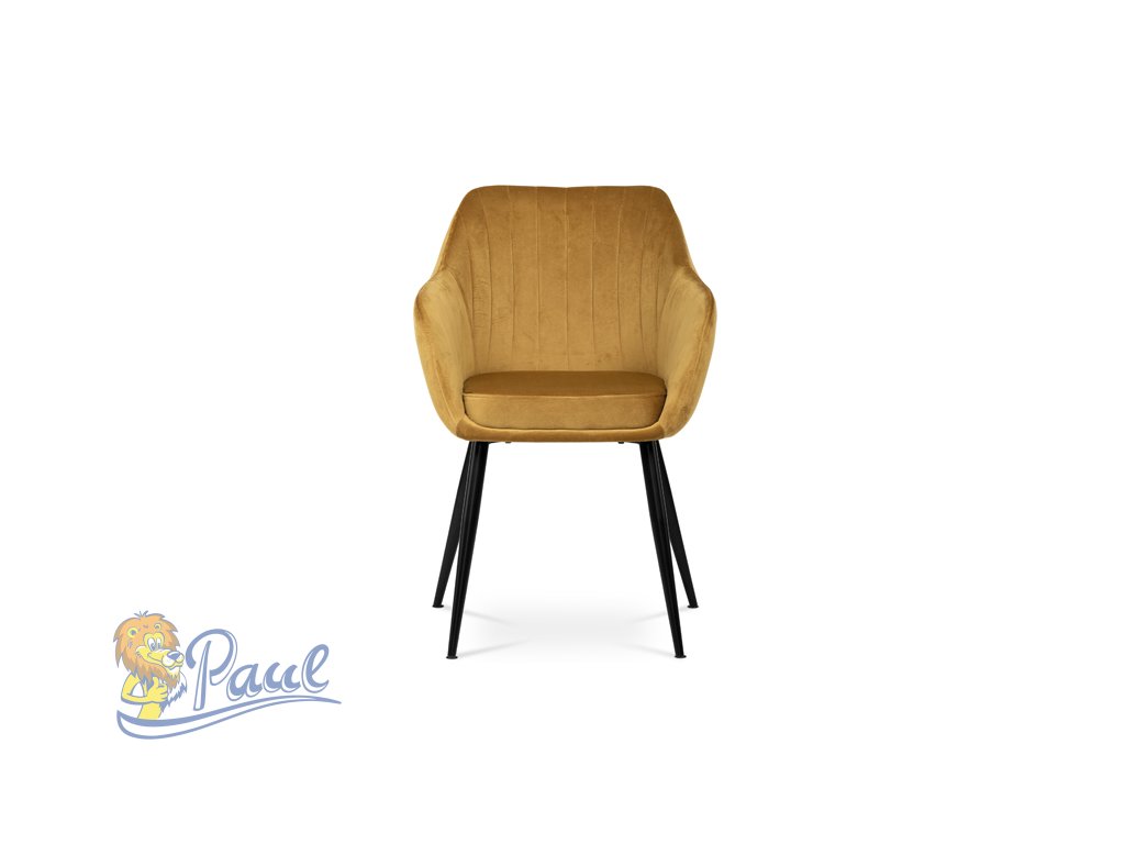 Dokonalý design, industriální styl a perfektní pohodlí je pro tuto židli samozřejmostí. Skořepina sedáku i opěradla má pevnou kovovou kostru, potah z velmi kvalitní sametové látky v matném provedení a ve velmi žádaném odstínu hořčicově žluté. Polstrování je z PU pěny. Bonusem ke zvýšení pohodlí posedu je 8 cm zvýšený a extra polstrovaný sedák a praktické pohodlné opěrky s opěrnou plochou ve výšce 69 cm od podlahy. Příjemný dekorativní prvek vytvářejí svislá prošití vnitřních částí opěradla i boků. Použitá látka je velmi odolná a perfektně se čistí. Stabilitu židle zajišťují čtyři kónické kovové nohy s kvalitním práškovým nástřikem v černé matné barvě. Ukončené jsou černými plastovými kluzáky, zabraňující poškození tvrdých povrchů podlah. Nohy mají kruhový průřez o průměru od 2 do 3,5 cm v horní části. Všechna tato plus produkují z tohoto modelu skvělou volbu pro Váš výběr zařízení jídelních a nebo obývacích prostor, ale skvěle se hodí i jako konferenční židle do zasedacích místností. Nosnost židle je až 120 kg. Základní rozměry jsou – celková šíře 58 cm, celková hloubka 57 cm, celková výška 84 cm, výška sedu 52 cm a hloubka sedu 43 cm.Doplňkové parametry