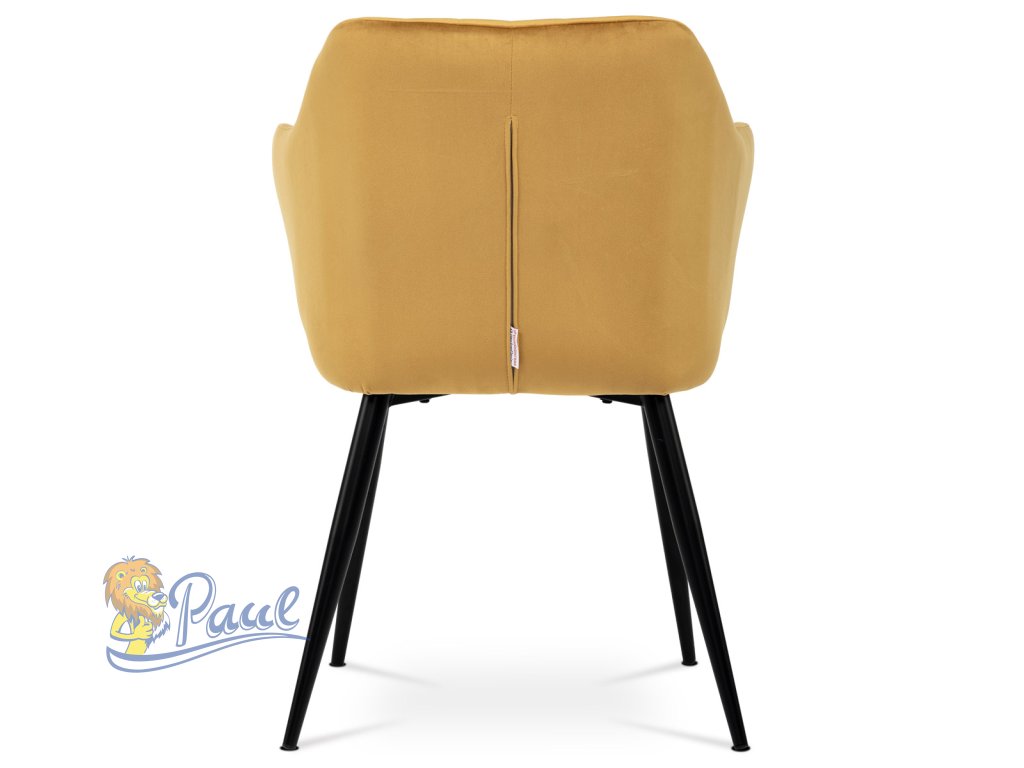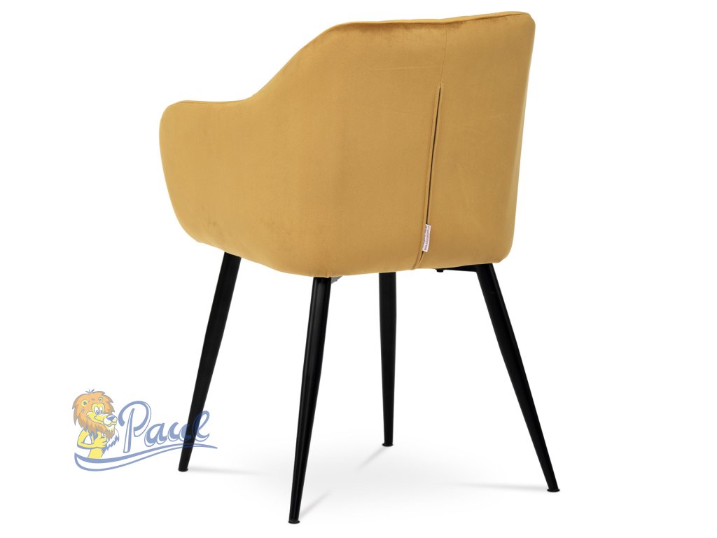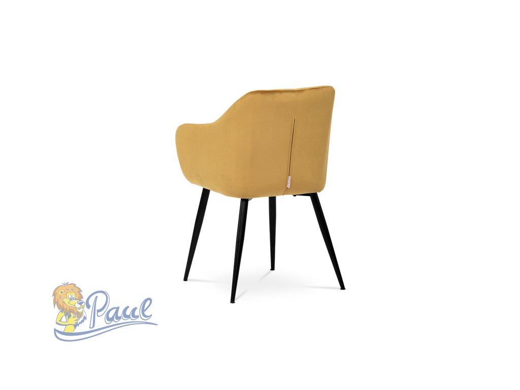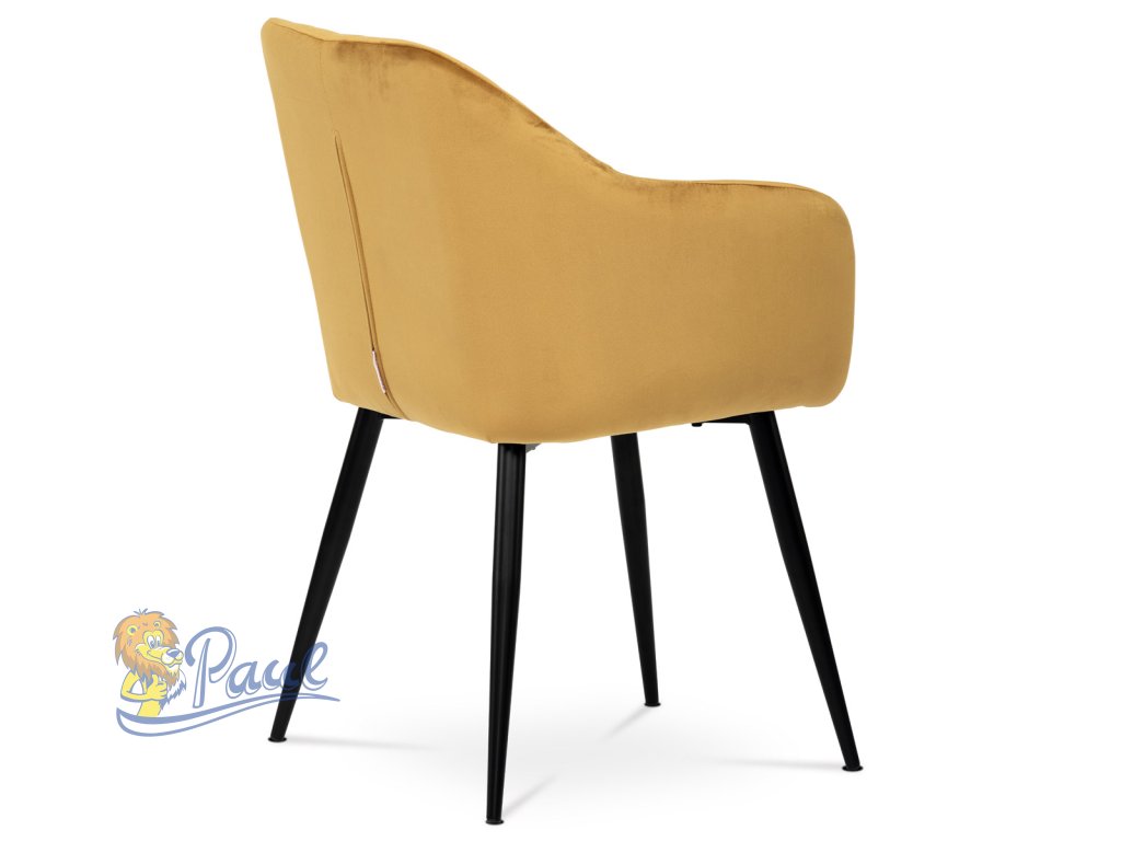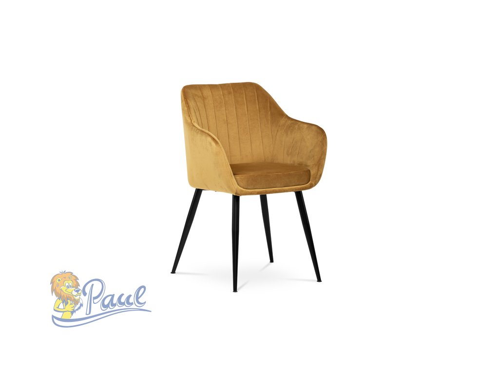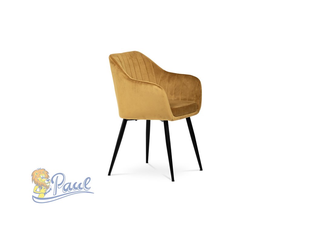 Dokonalý design, industriální styl a perfektní pohodlí je pro tuto židli samozřejmostí. Skořepina sedáku i opěradla má pevnou kovovou kostru, potah z velmi kvalitní sametové látky v matném provedení a ve velmi žádaném odstínu hořčicově žluté. Polstrování je z PU pěny. Bonusem ke zvýšení pohodlí posedu je 8 cm zvýšený a extra polstrovaný sedák a praktické pohodlné opěrky s opěrnou plochou ve výšce 69 cm od podlahy. Příjemný dekorativní prvek vytvářejí svislá prošití vnitřních částí opěradla i boků. Použitá látka je velmi odolná a perfektně se čistí. Stabilitu židle zajišťují čtyři kónické kovové nohy s kvalitním práškovým nástřikem v černé matné barvě. Ukončené jsou černými plastovými kluzáky, zabraňující poškození tvrdých povrchů podlah. Nohy mají kruhový průřez o průměru od 2 do 3,5 cm v horní části. Všechna tato plus produkují z tohoto modelu skvělou volbu pro Váš výběr zařízení jídelních a nebo obývacích prostor, ale skvěle se hodí i jako konferenční židle do zasedacích místností. Nosnost židle je až 120 kg. Základní rozměry jsou – celková šíře 58 cm, celková hloubka 57 cm, celková výška 84 cm, výška sedu 52 cm a hloubka sedu 43 cm.Doplňkové parametry