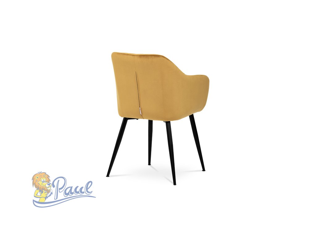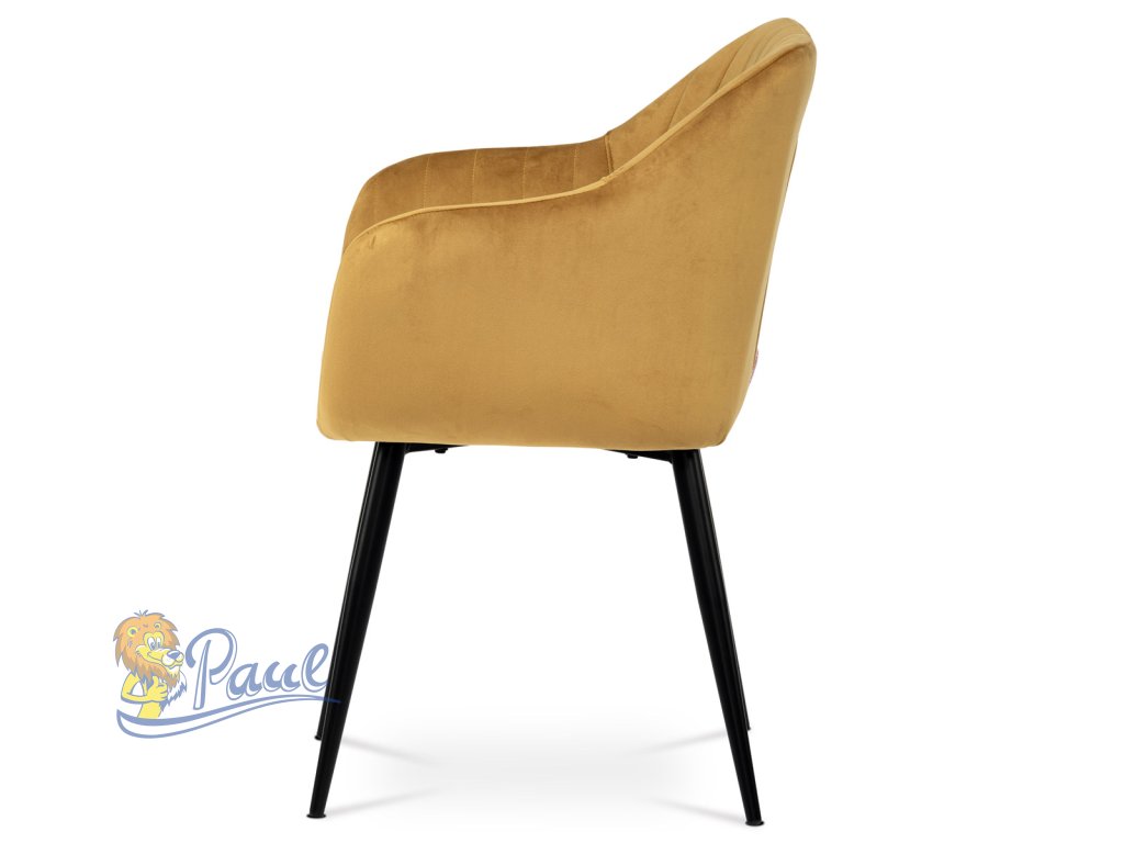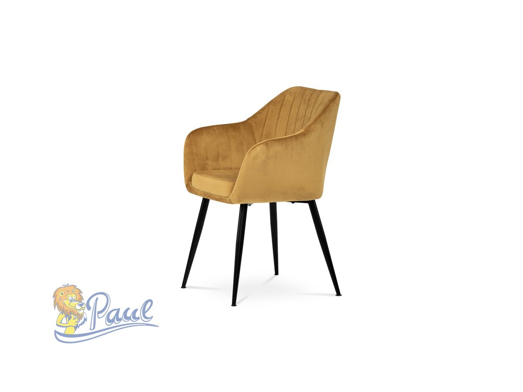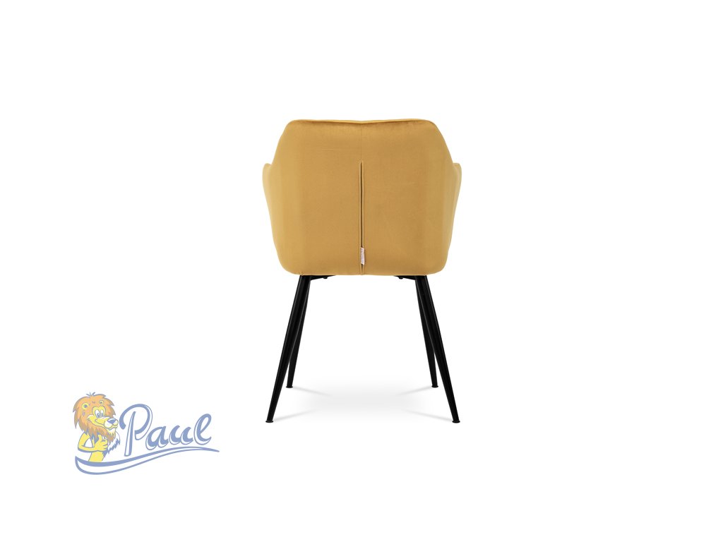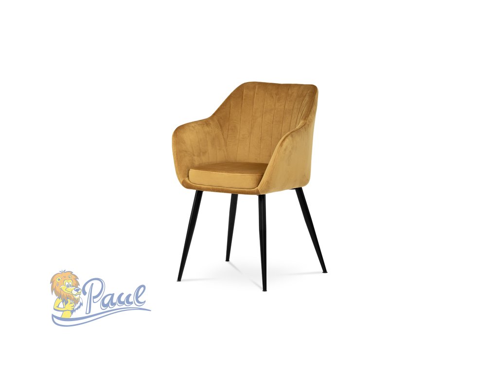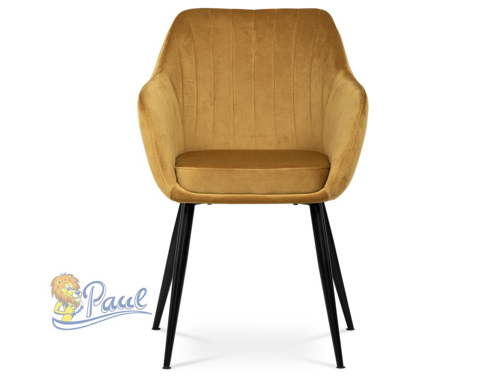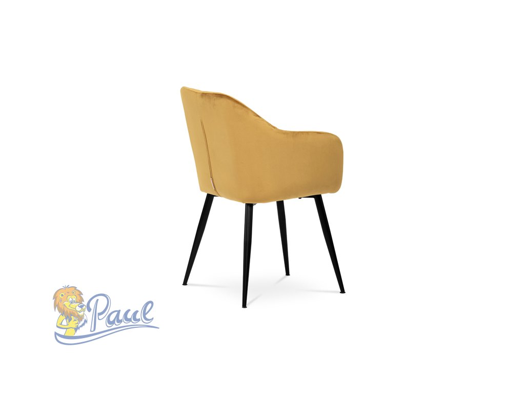 Dokonalý design, industriální styl a perfektní pohodlí je pro tuto židli samozřejmostí. Skořepina sedáku i opěradla má pevnou kovovou kostru, potah z velmi kvalitní sametové látky v matném provedení a ve velmi žádaném odstínu hořčicově žluté. Polstrování je z PU pěny. Bonusem ke zvýšení pohodlí posedu je 8 cm zvýšený a extra polstrovaný sedák a praktické pohodlné opěrky s opěrnou plochou ve výšce 69 cm od podlahy. Příjemný dekorativní prvek vytvářejí svislá prošití vnitřních částí opěradla i boků. Použitá látka je velmi odolná a perfektně se čistí. Stabilitu židle zajišťují čtyři kónické kovové nohy s kvalitním práškovým nástřikem v černé matné barvě. Ukončené jsou černými plastovými kluzáky, zabraňující poškození tvrdých povrchů podlah. Nohy mají kruhový průřez o průměru od 2 do 3,5 cm v horní části. Všechna tato plus produkují z tohoto modelu skvělou volbu pro Váš výběr zařízení jídelních a nebo obývacích prostor, ale skvěle se hodí i jako konferenční židle do zasedacích místností. Nosnost židle je až 120 kg. Základní rozměry jsou – celková šíře 58 cm, celková hloubka 57 cm, celková výška 84 cm, výška sedu 52 cm a hloubka sedu 43 cm.Doplňkové parametry