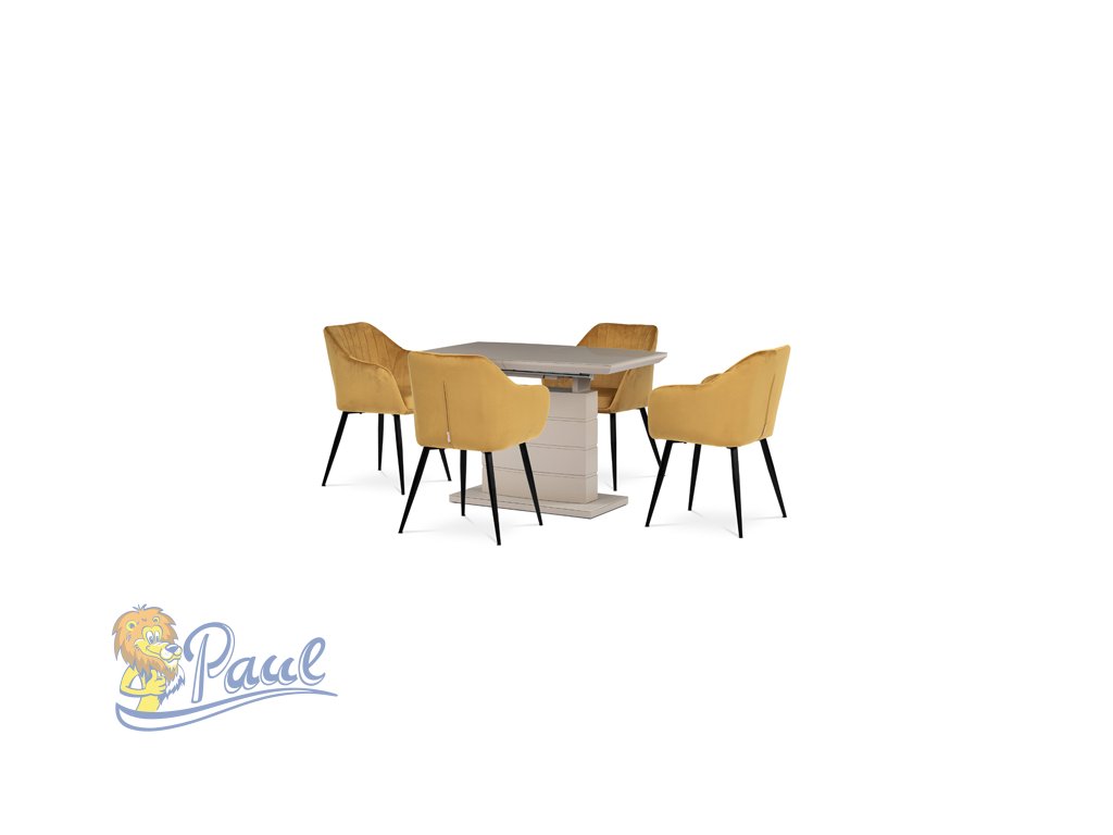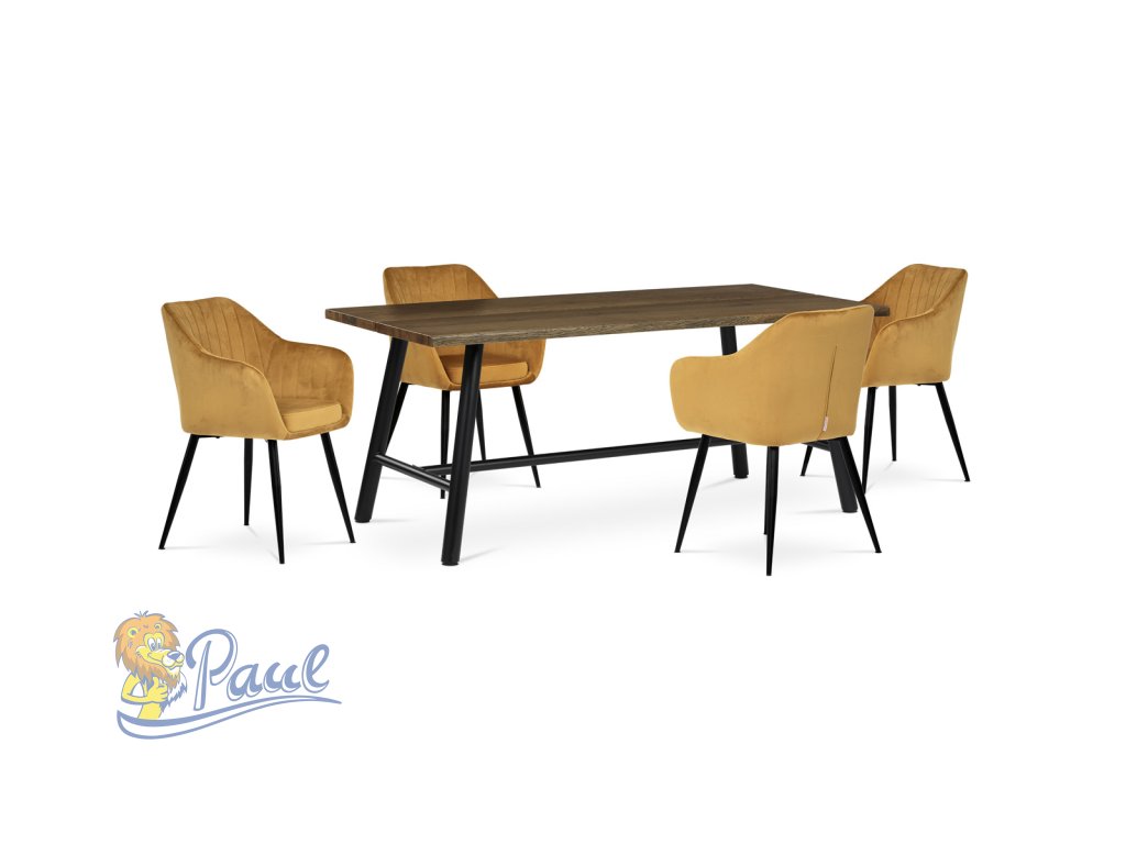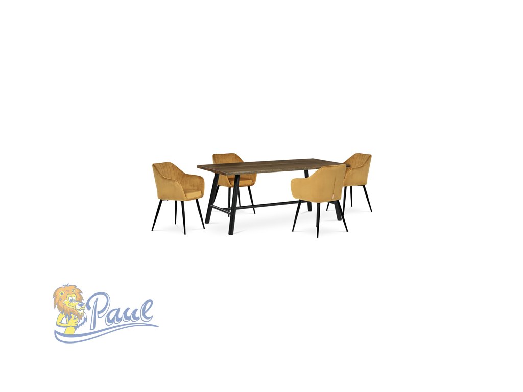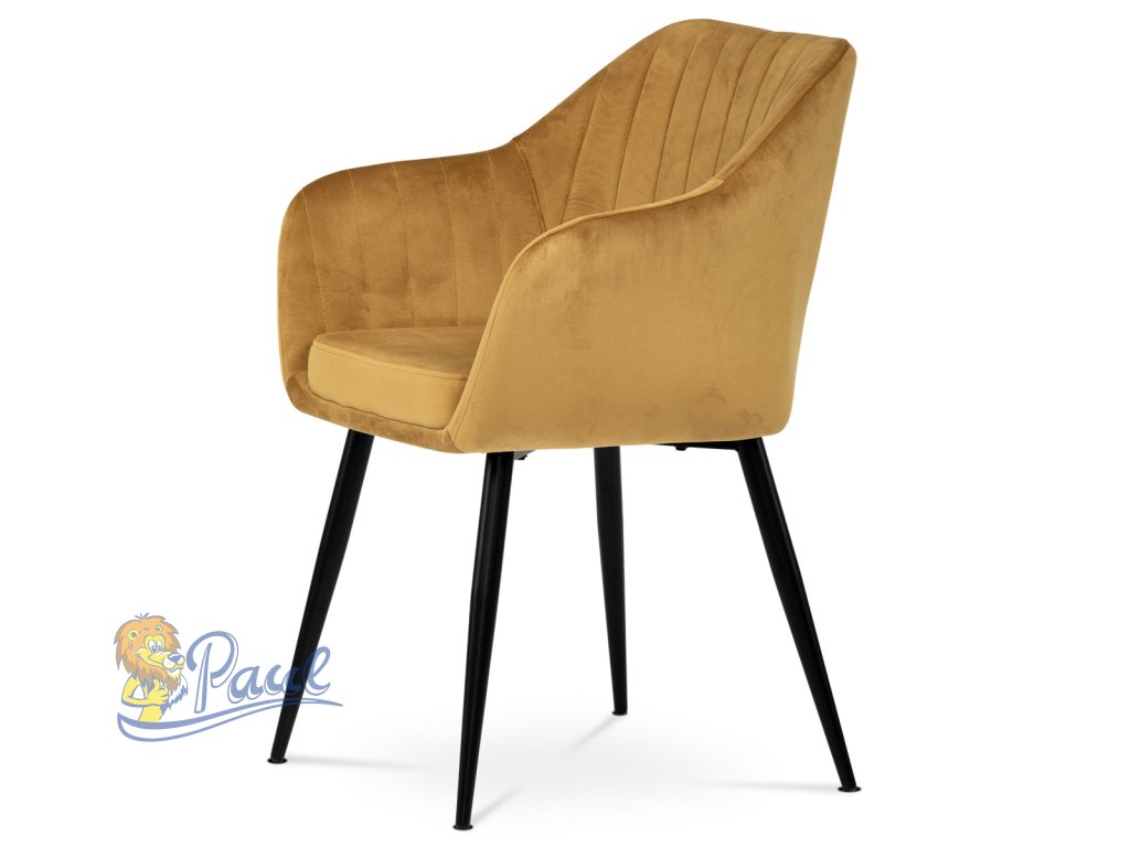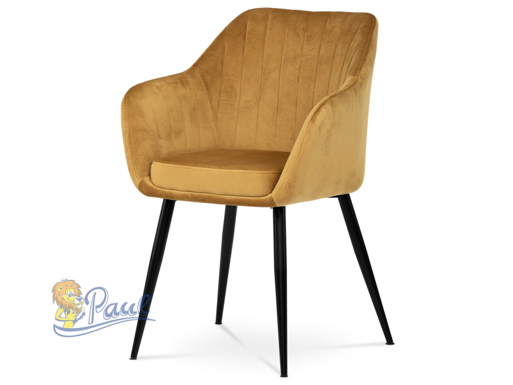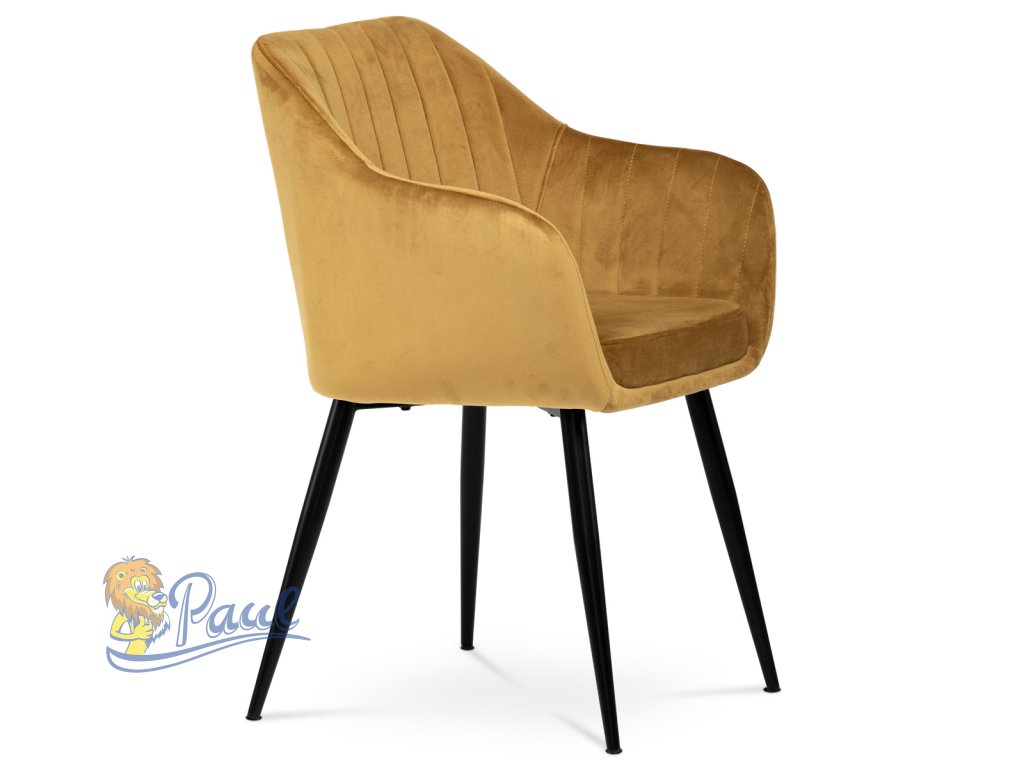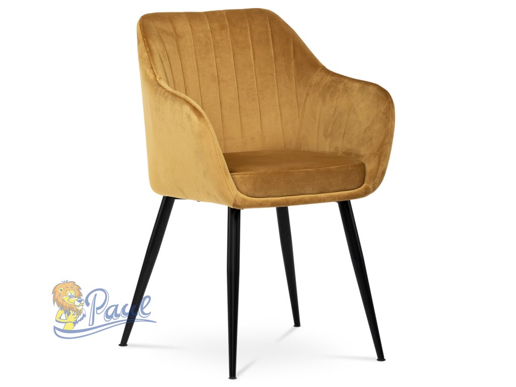 Dokonalý design, industriální styl a perfektní pohodlí je pro tuto židli samozřejmostí. Skořepina sedáku i opěradla má pevnou kovovou kostru, potah z velmi kvalitní sametové látky v matném provedení a ve velmi žádaném odstínu hořčicově žluté. Polstrování je z PU pěny. Bonusem ke zvýšení pohodlí posedu je 8 cm zvýšený a extra polstrovaný sedák a praktické pohodlné opěrky s opěrnou plochou ve výšce 69 cm od podlahy. Příjemný dekorativní prvek vytvářejí svislá prošití vnitřních částí opěradla i boků. Použitá látka je velmi odolná a perfektně se čistí. Stabilitu židle zajišťují čtyři kónické kovové nohy s kvalitním práškovým nástřikem v černé matné barvě. Ukončené jsou černými plastovými kluzáky, zabraňující poškození tvrdých povrchů podlah. Nohy mají kruhový průřez o průměru od 2 do 3,5 cm v horní části. Všechna tato plus produkují z tohoto modelu skvělou volbu pro Váš výběr zařízení jídelních a nebo obývacích prostor, ale skvěle se hodí i jako konferenční židle do zasedacích místností. Nosnost židle je až 120 kg. Základní rozměry jsou – celková šíře 58 cm, celková hloubka 57 cm, celková výška 84 cm, výška sedu 52 cm a hloubka sedu 43 cm.Doplňkové parametry