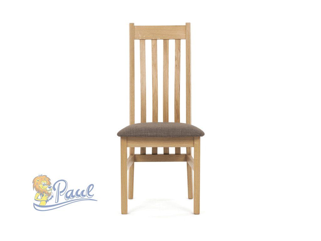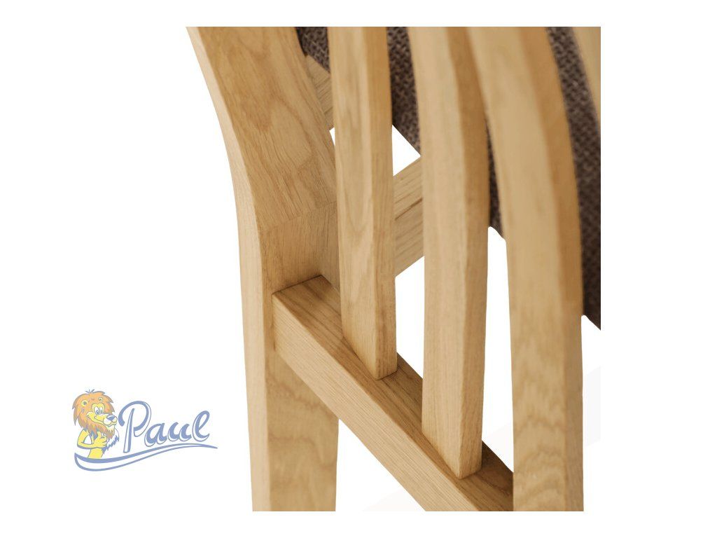 Jídelní židle z masivního dubu nabízí pevnou a stabilní konstrukci, která je navržena pro dlouhodobé používání. Vysoce ergonomicky tvarovaný opěrák svislých lamel poskytuje pohodlnou oporu zad a přispívá k lepšímu držení těla při sezení. Sedák je čalouněný hnědou látkou, která zajišťuje příjemný komfort a snadnou údržbu. Židle nemá područky ani otočný mechanismus, což ji činí vhodnou pro různé typy jídelních prostor. Přírodní odstíny dubového dřeva podtrhují tradiční i moderní styl interiéru.Doplňkové parametry