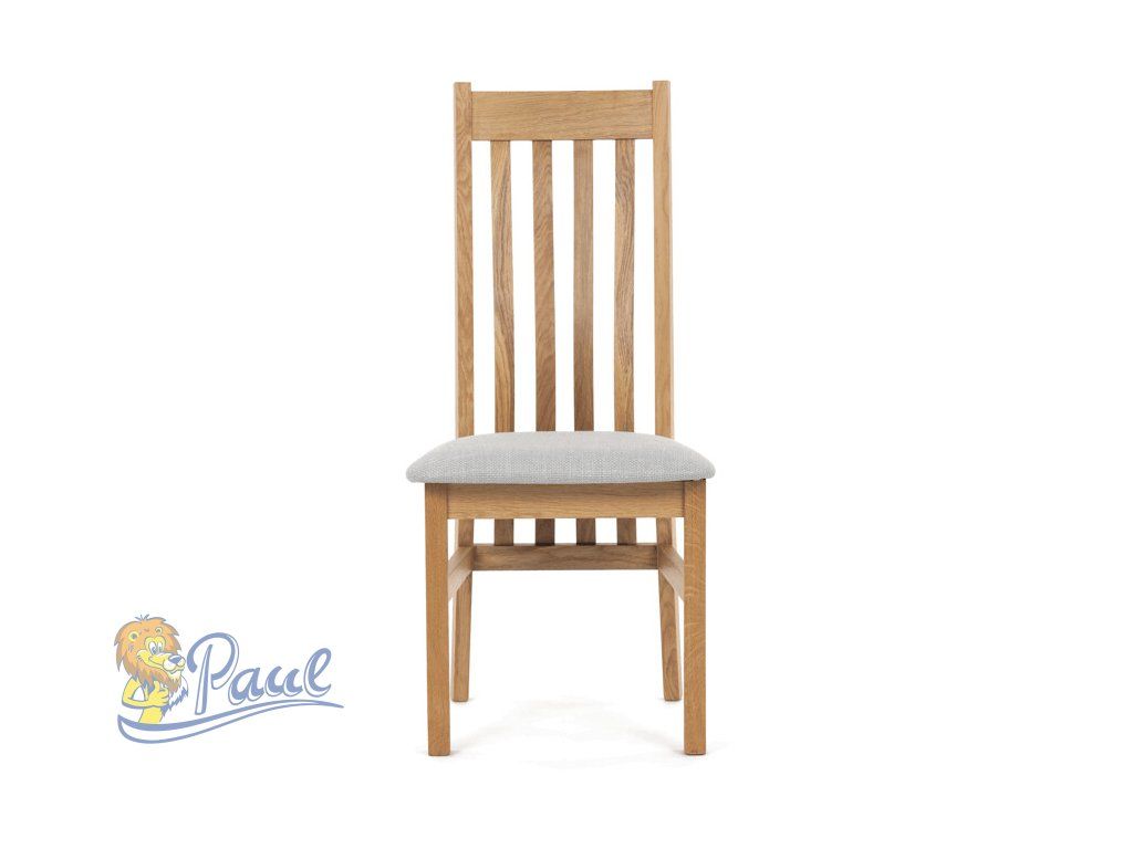 Jídelní židle s označením C-2100 SIL2 je vyrobena z masivního dubového dřeva, které zajišťuje pevnost a stabilitu. Světlé přírodní odstíny dřeva doplňuje sedák potažený světle šedou látkou, která nabízí příjemný komfort při sezení. Židle disponuje ergonomicky tvarovaným vysokým opěrákem s vertikálními dřevěnými lamelami, které podporují správné držení těla během stolování. Masivní nohy jsou pevně spojeny vodorovnými výztuhami, což zvyšuje celkovou odolnost a nosnost židle. Díky jednoduchému a nadčasovému designu je vhodná do různých typů interiérů, kde kladou důraz na kvalitu a přírodní materiály.Doplňkové parametry