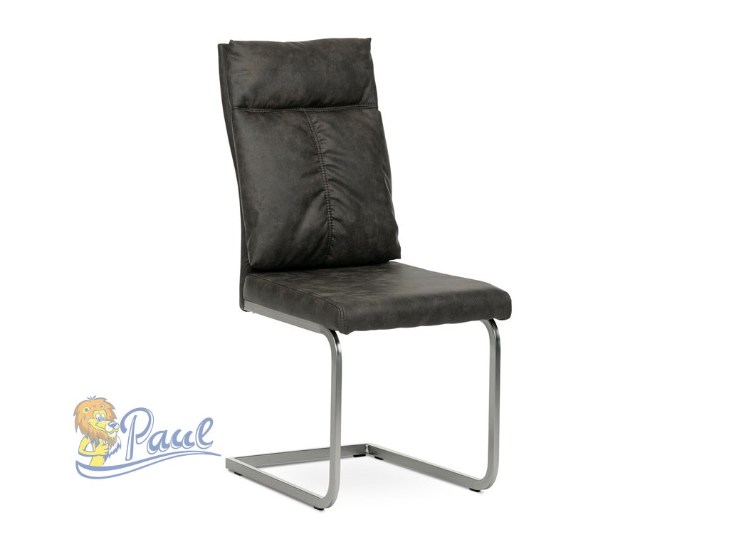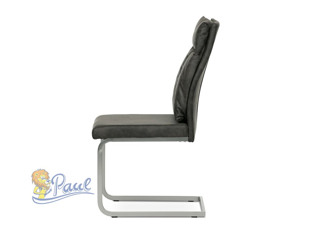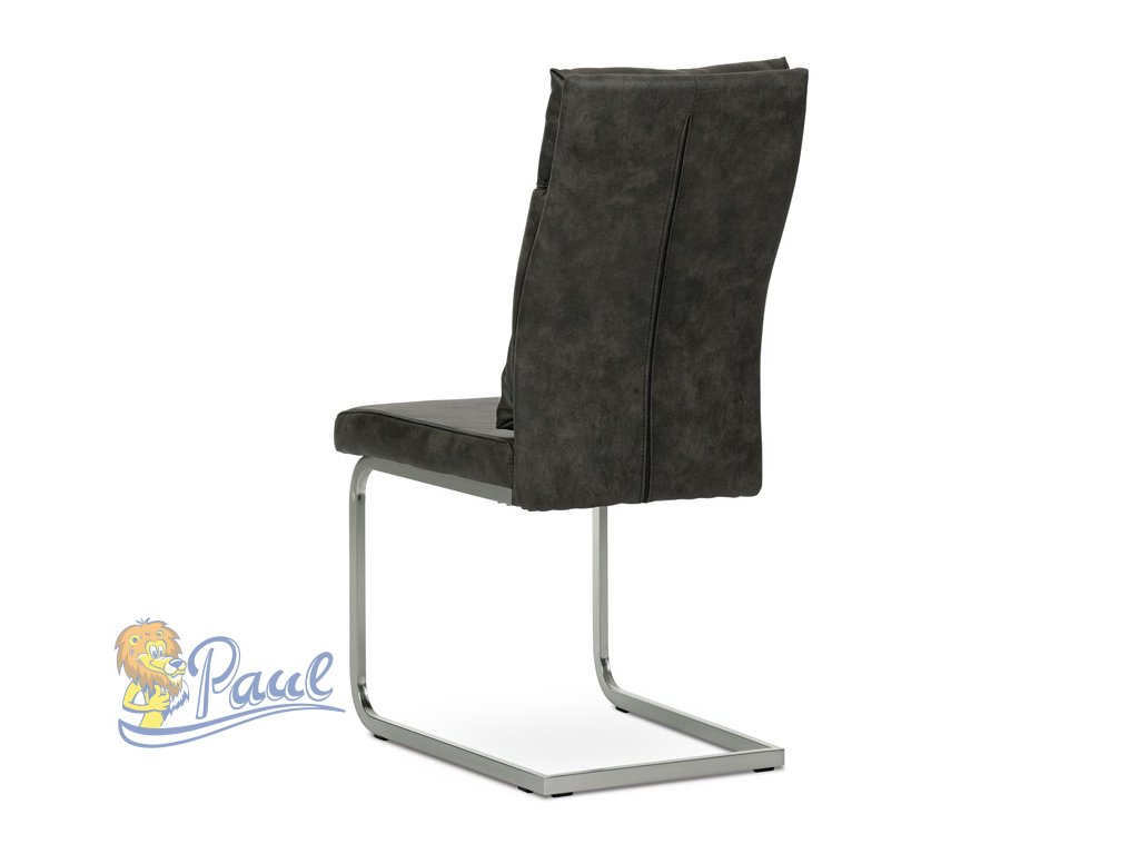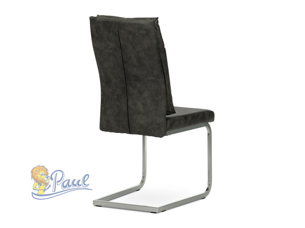Jídelní židle, šedá látka v dekoru vintage kůže, kovová podnož, broušený nikl