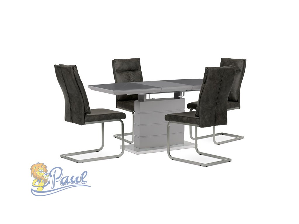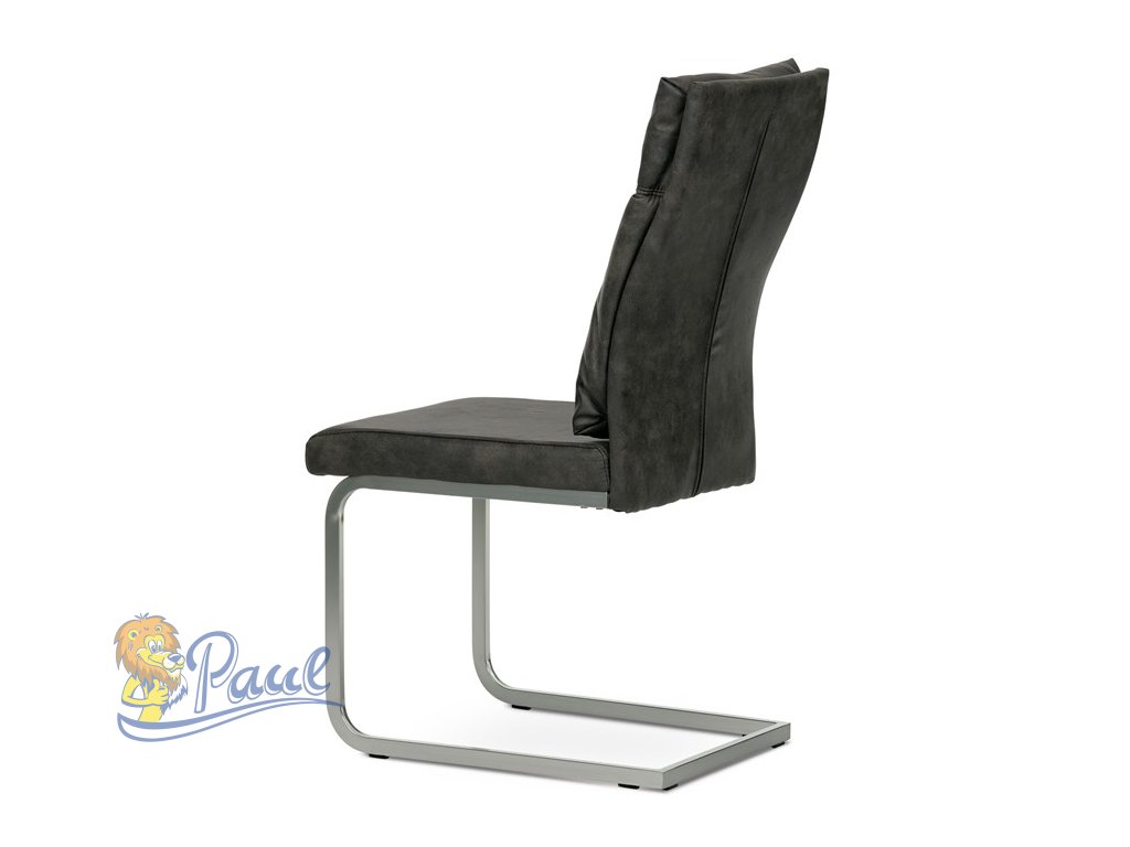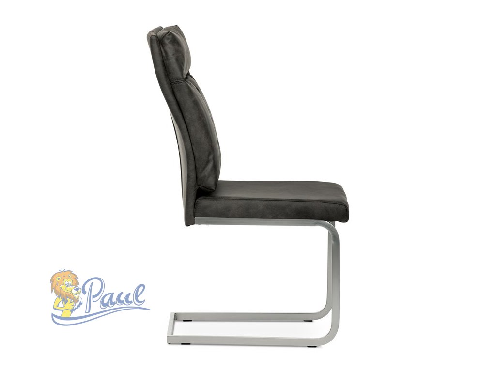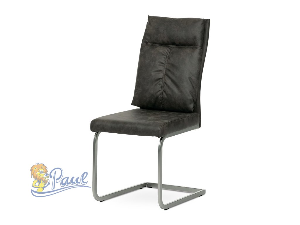 Jídelní židle, šedá látka v dekoru vintage kůže, kovová podnož, broušený nikl